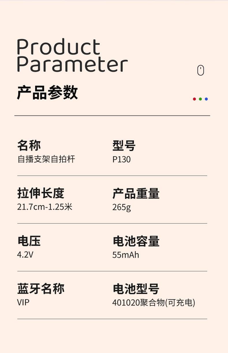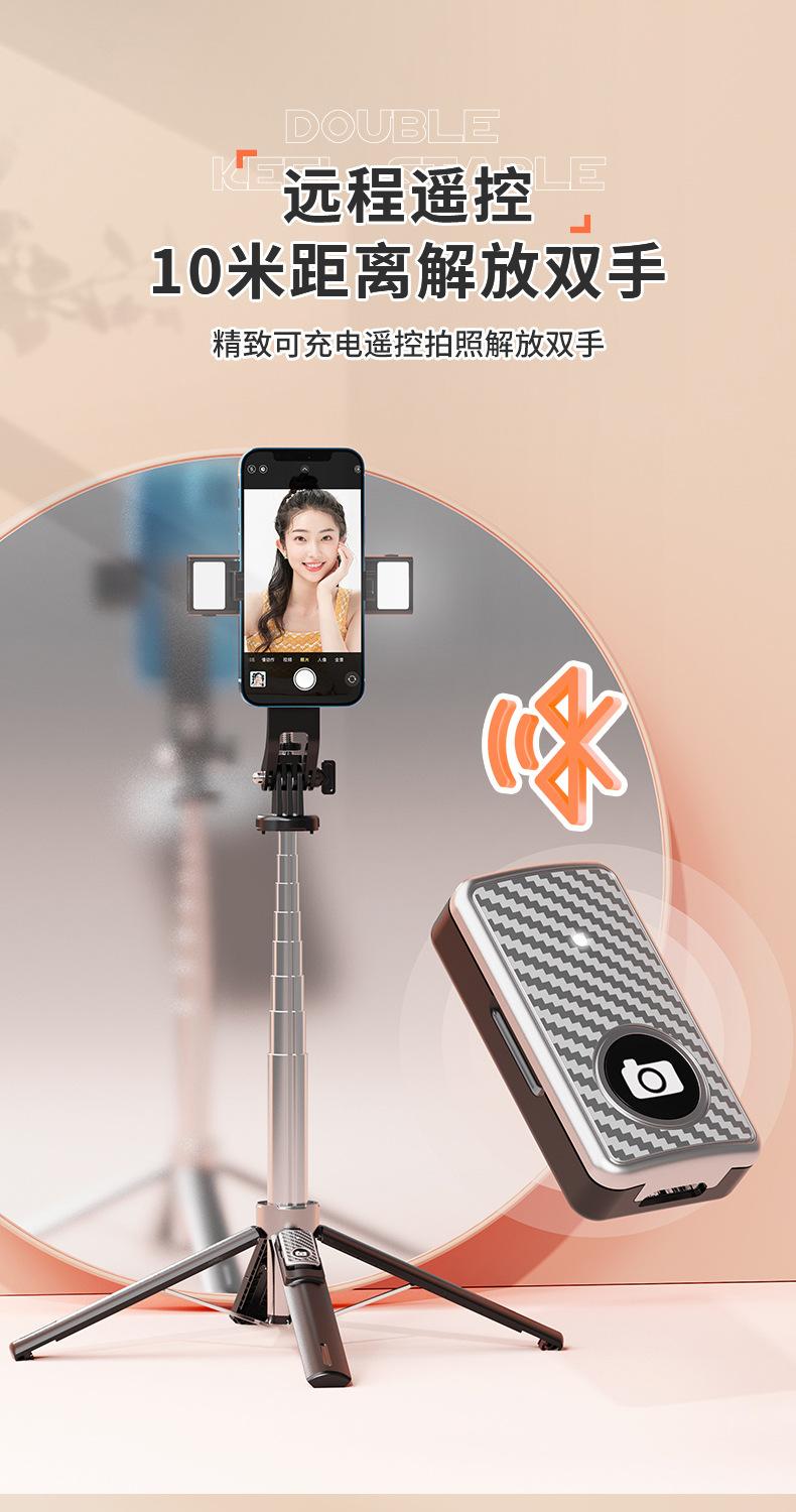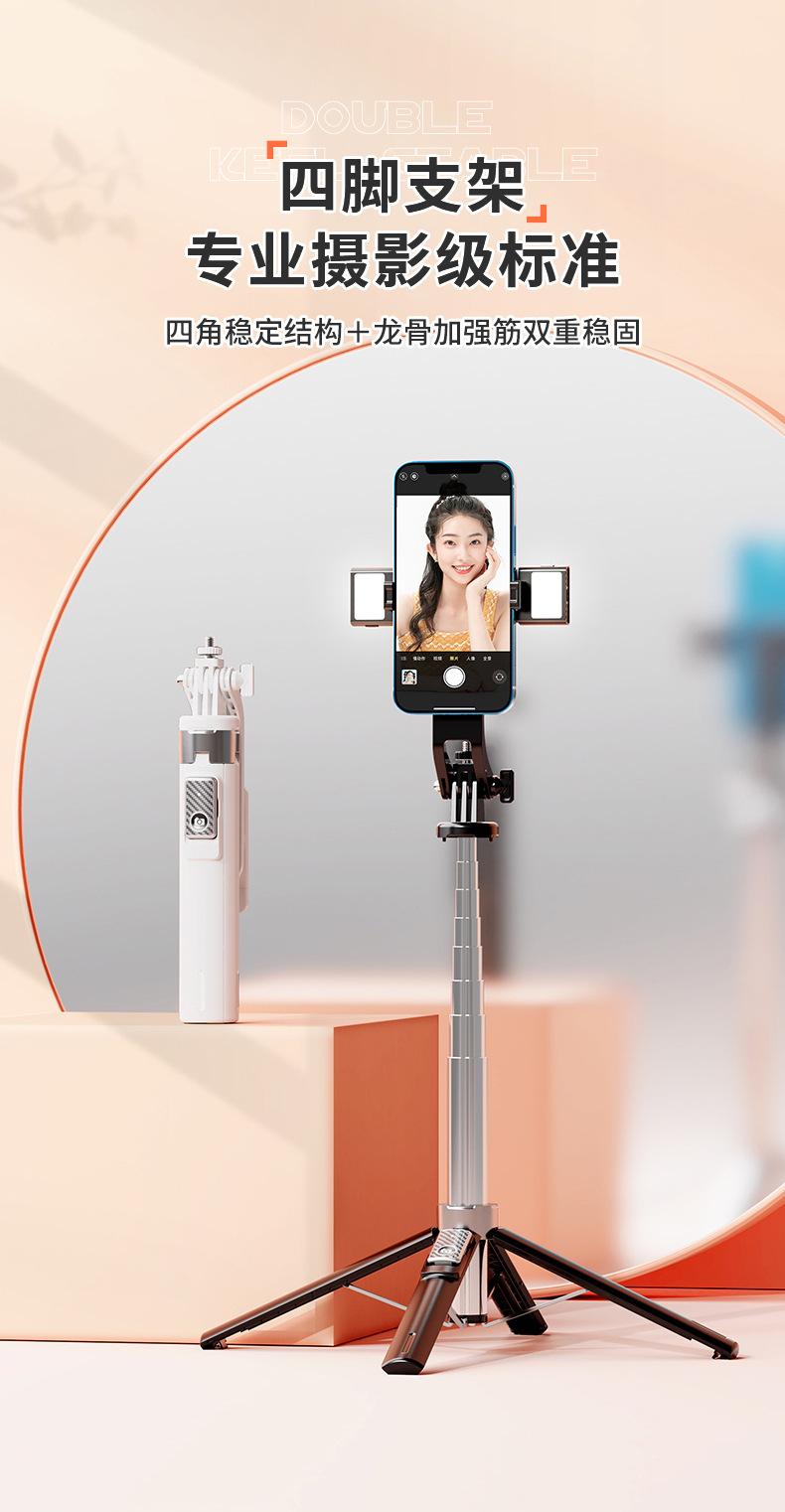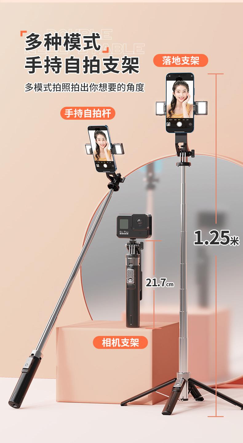 P130 soporte de cuatro patas palo selfie de viaje portátil con carga control remoto bluetooth antivibración retráctil palo selfie para teléfono móvil
