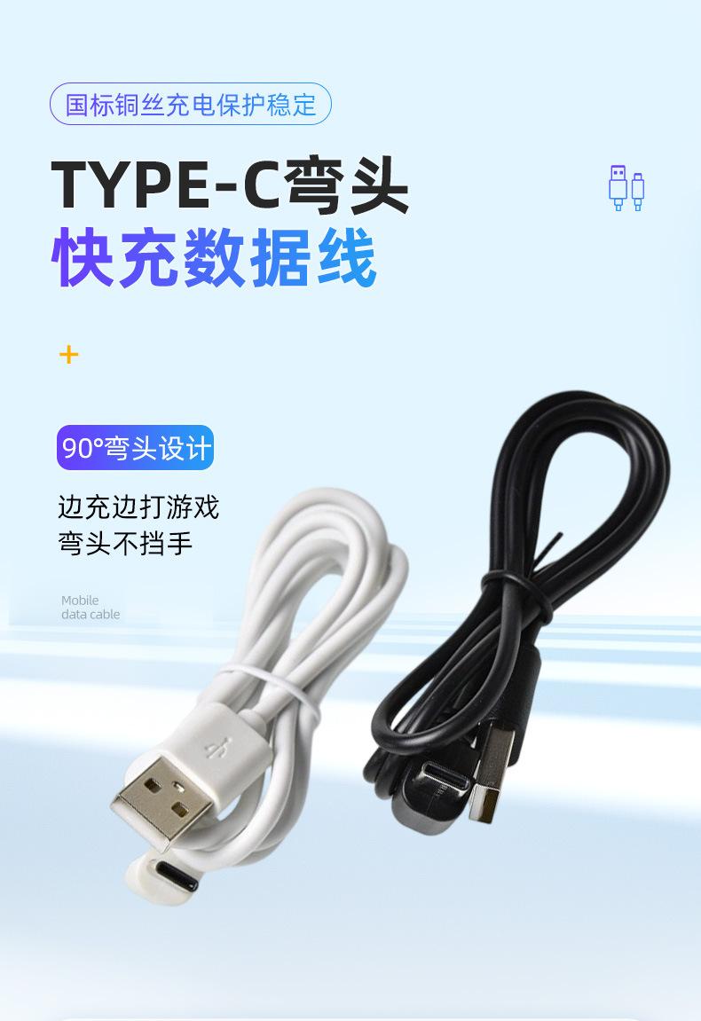 Cable de datos tipo C de codo para Huawei, cable de carga tipo C de 90 grados y 2 A, cable de carga rápida, venta al por mayor.