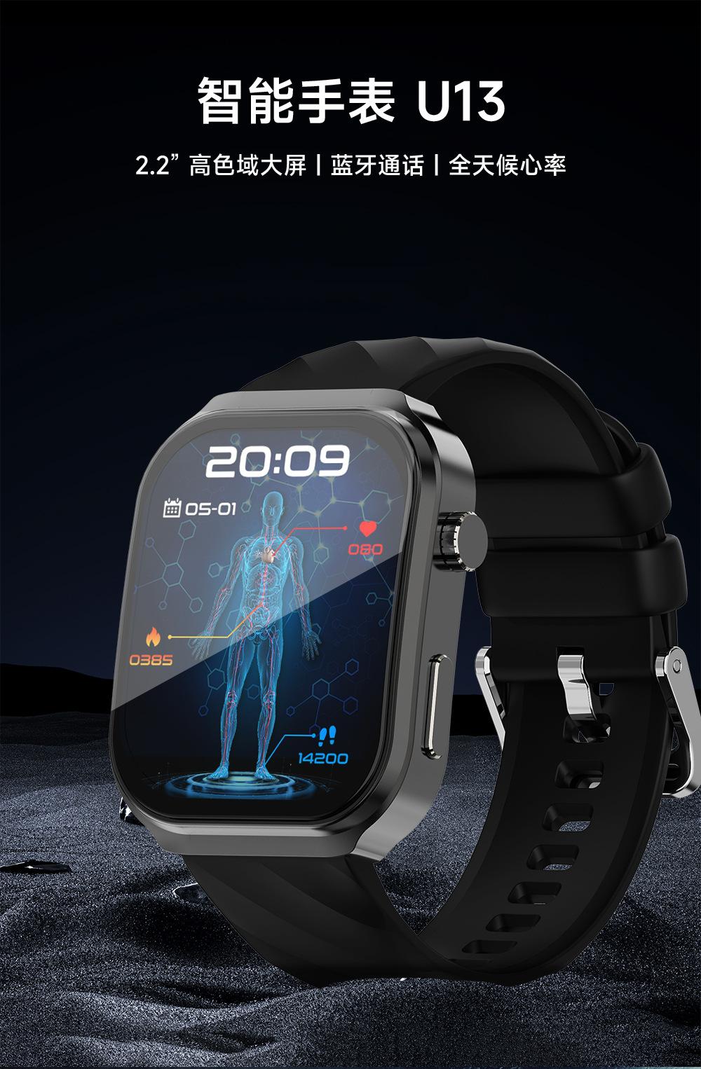 Nuevo reloj deportivo Huaqiang North U13 con pantalla curva 3D de 2,2 pulgadas, Bluetooth, llamadas y monitoreo de salud.