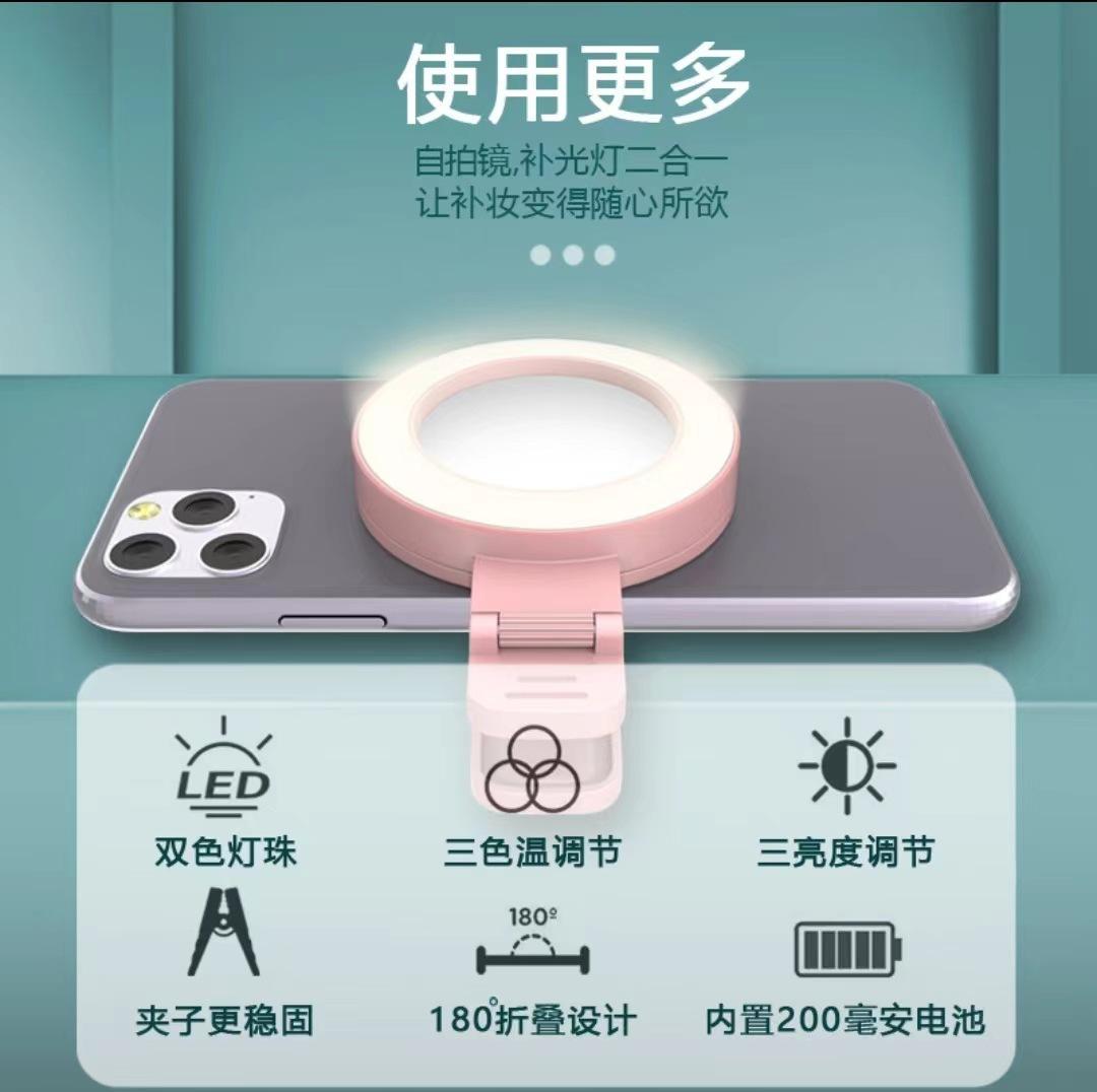Nueva Luz de Relleno para Teléfono Móvil Espejo para Selfies Doble Propósito Cámara Trasera Mini Plegable Portátil