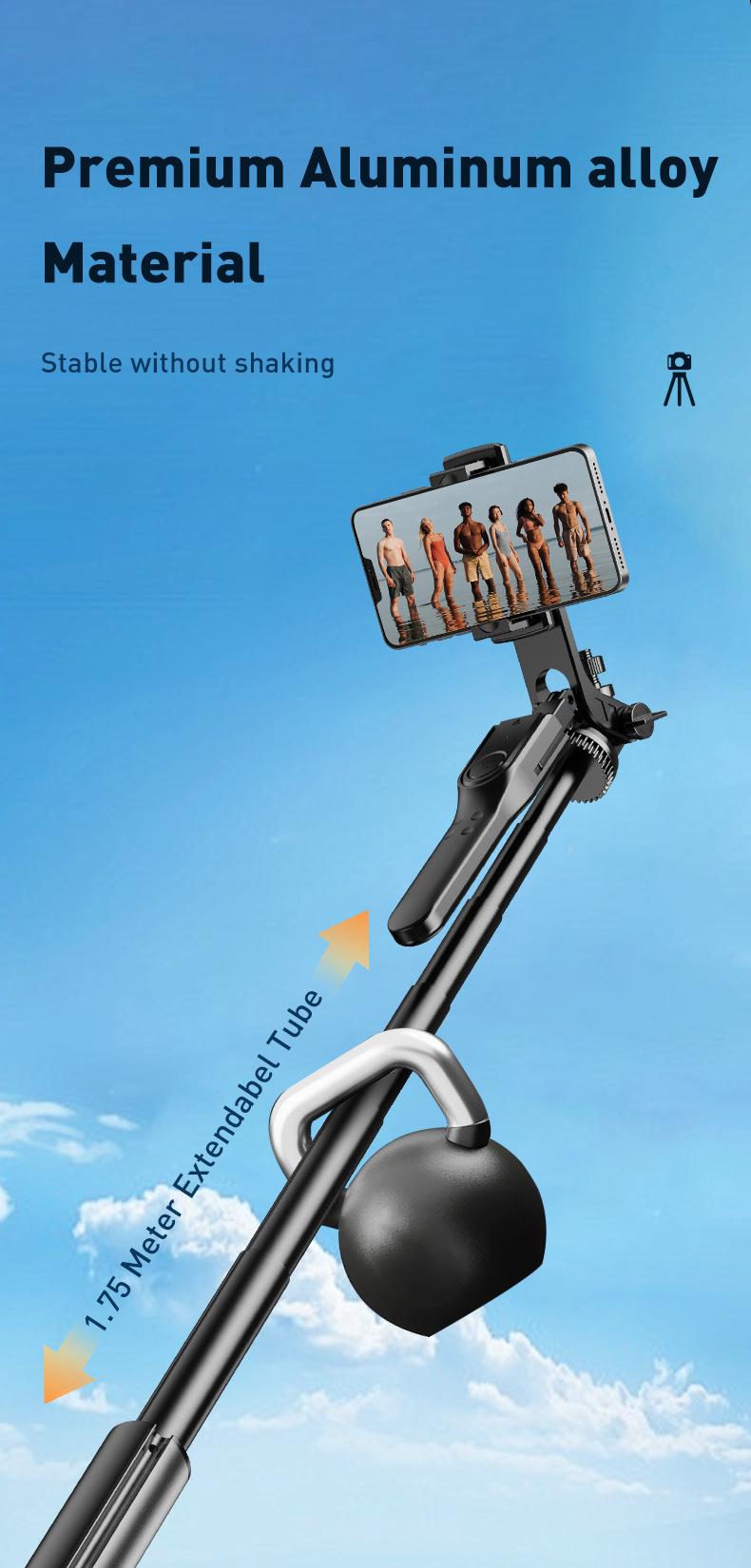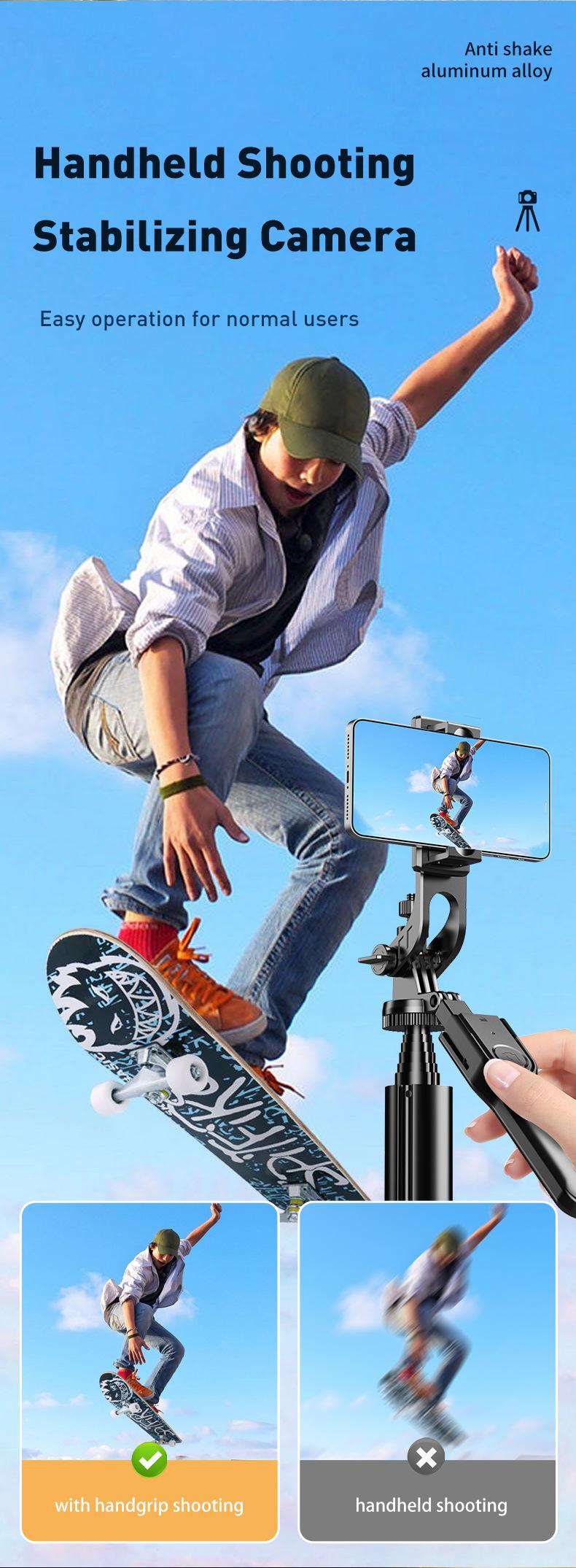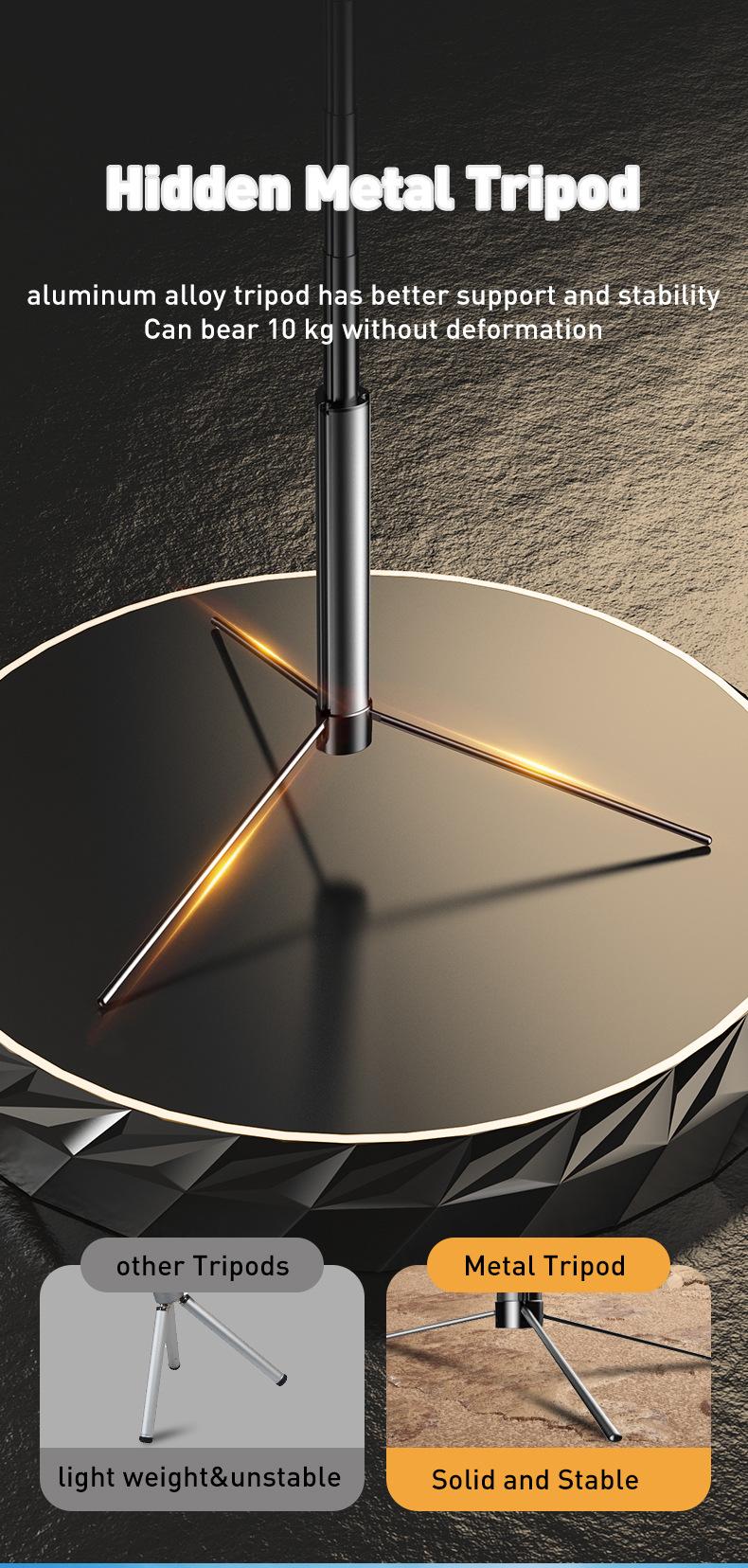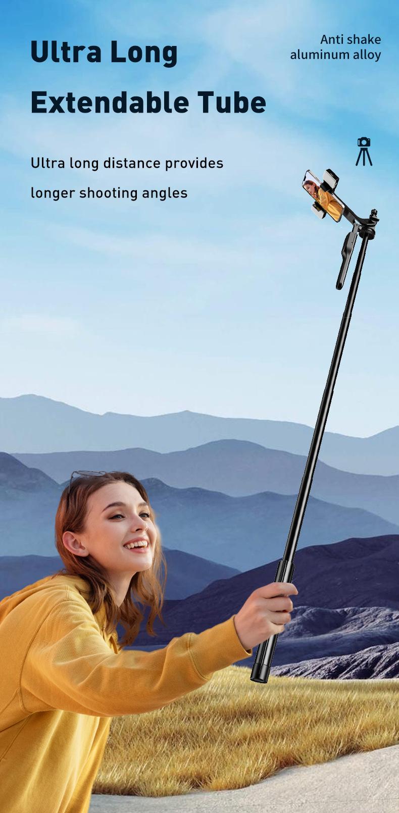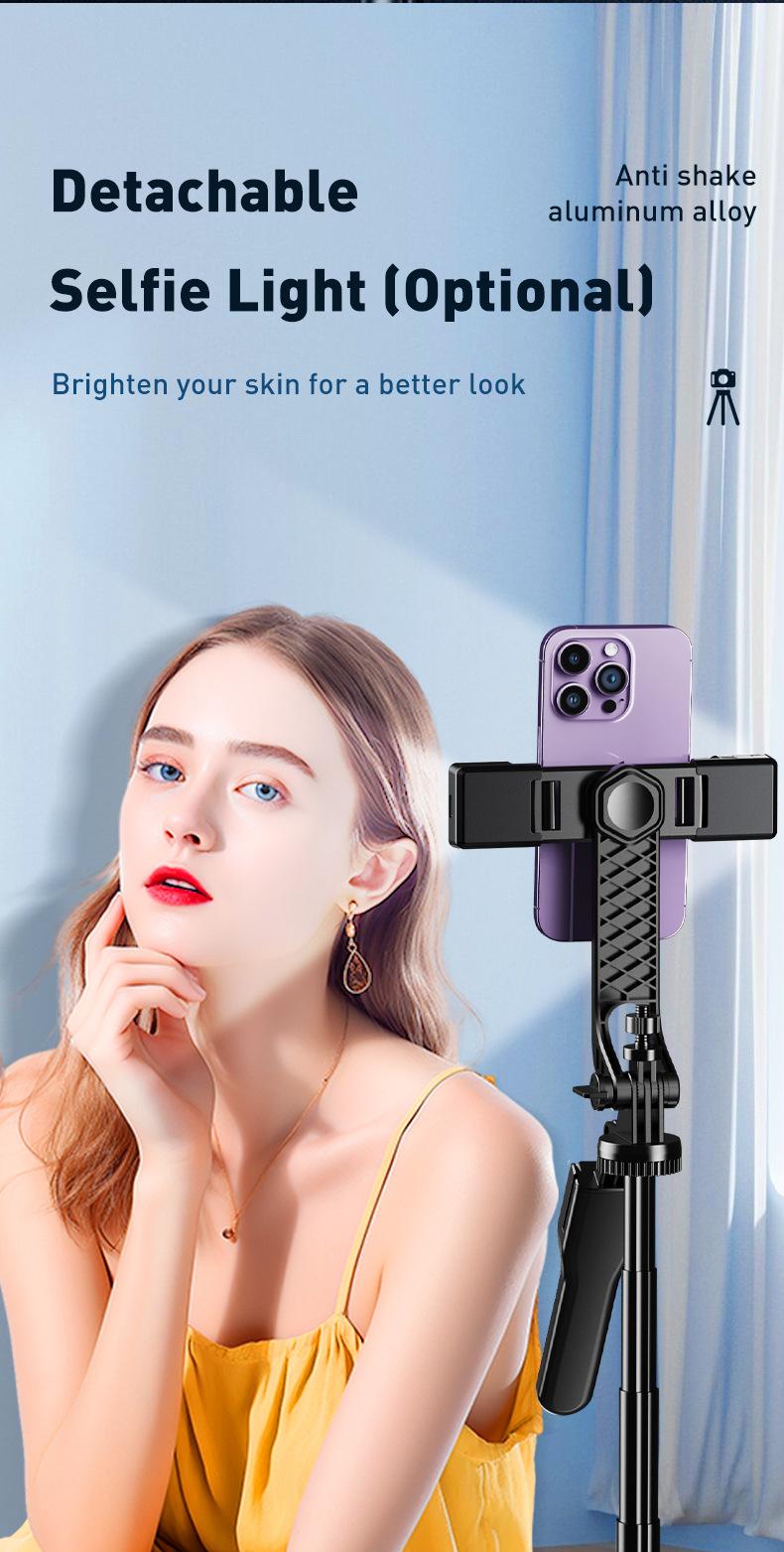 Palo de selfie portátil con Bluetooth para teléfono móvil, nuevo, transfronterizo, de 1,7 millones de dólares, con soporte de metal para el suelo y trípode