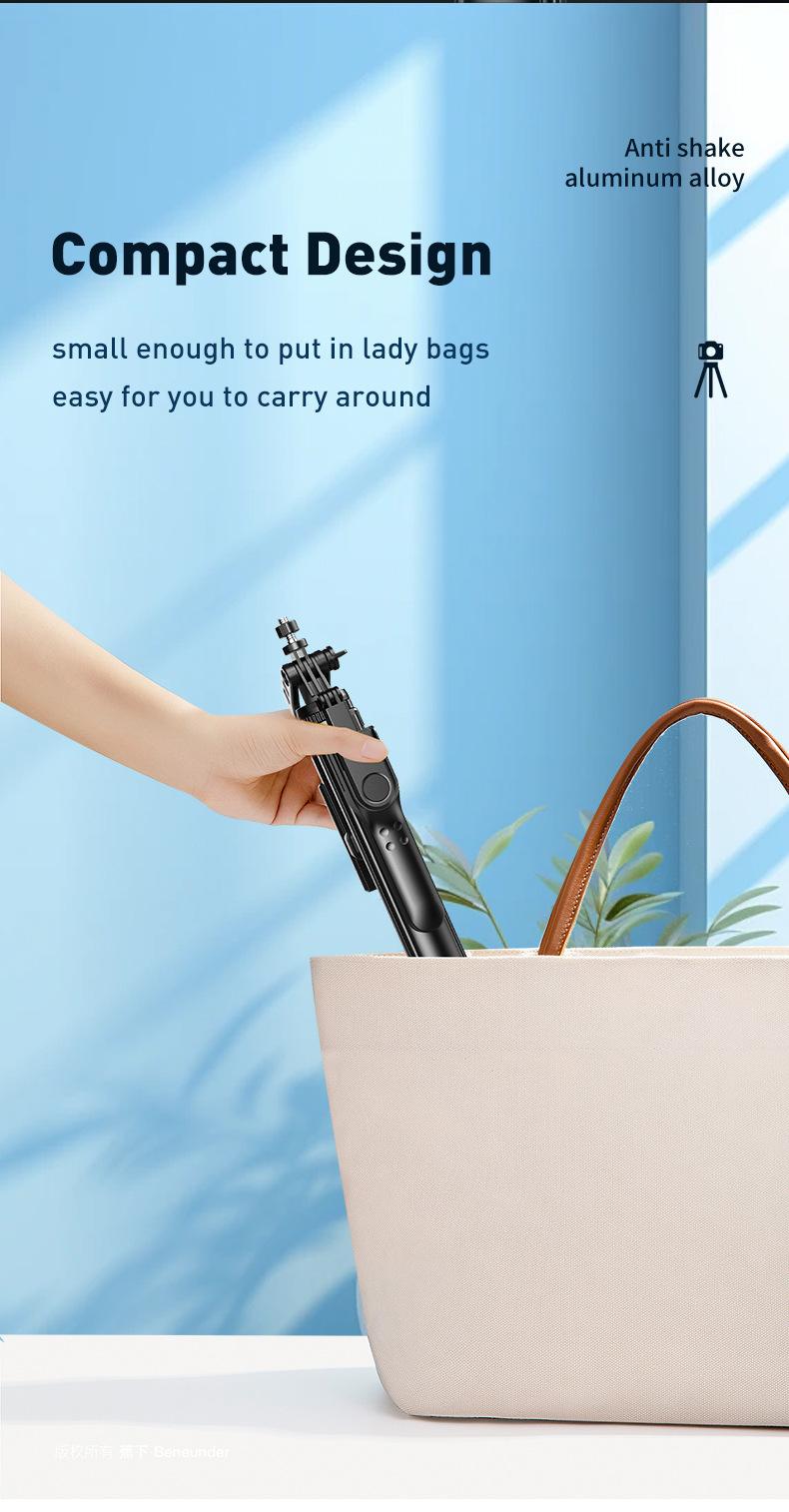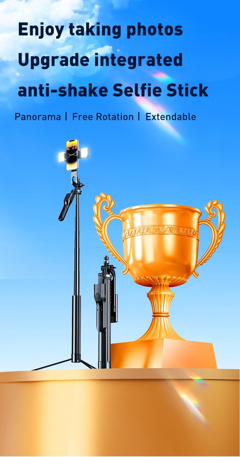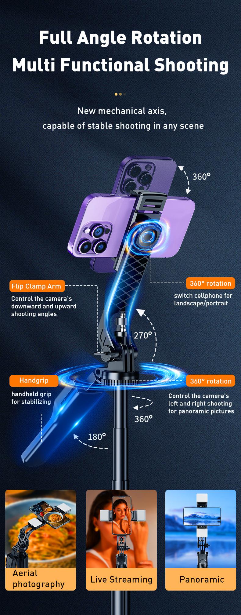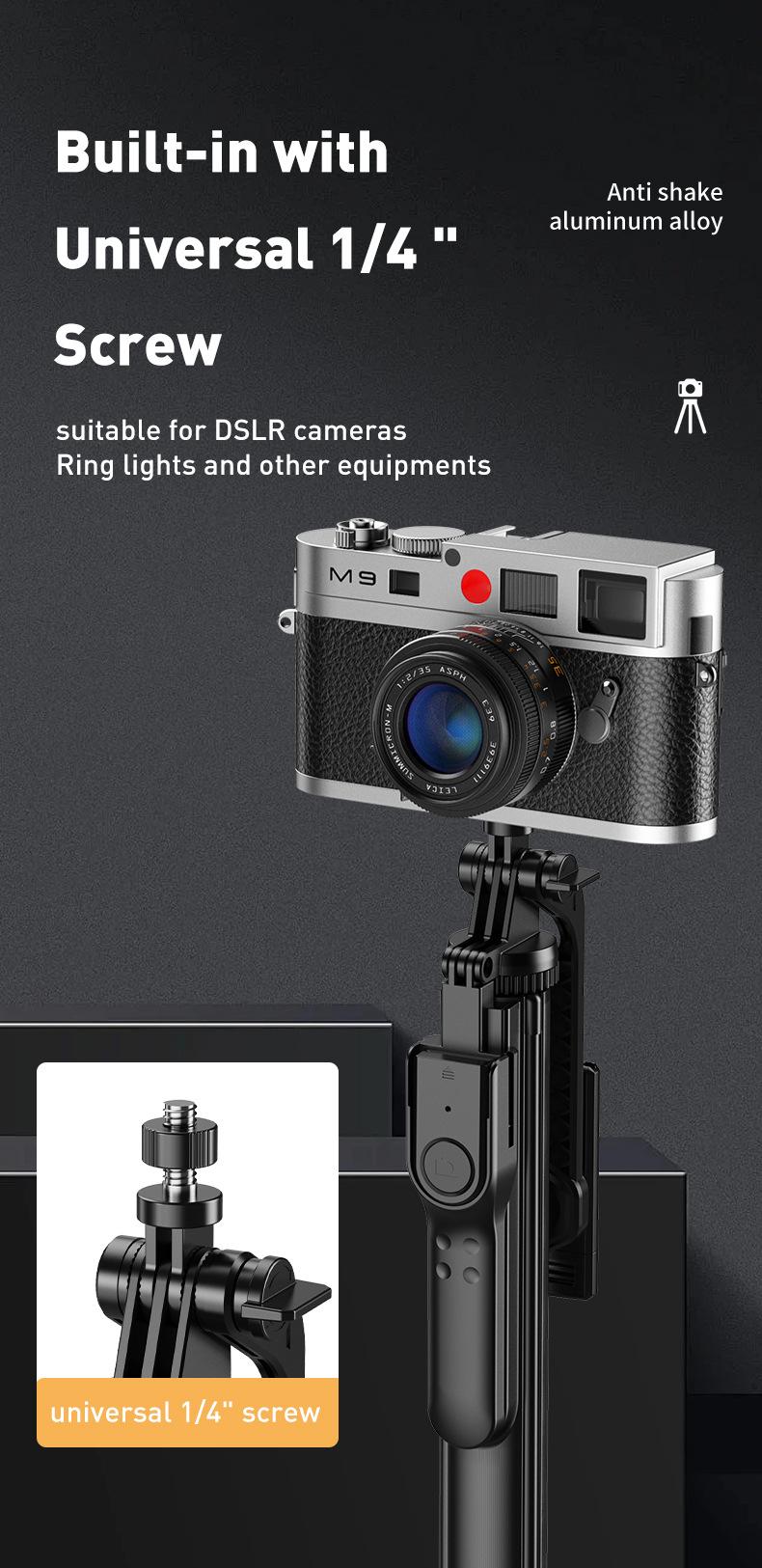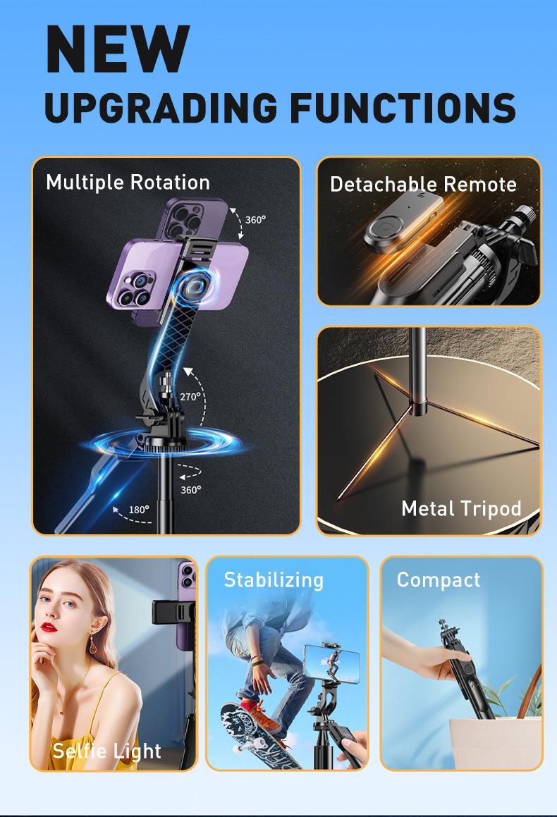 Palo de selfie portátil con Bluetooth para teléfono móvil, nuevo, transfronterizo, de 1,7 millones de dólares, con soporte de metal para el suelo y trípode