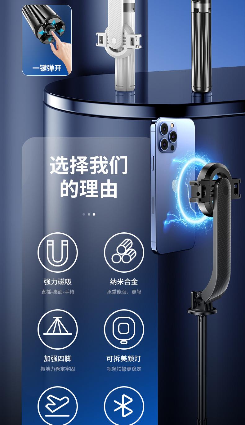 Selfie stick, mobile phone selfie stick, magnetic selfie stick, magsafe selfie stick, live broadcast mobile ph...