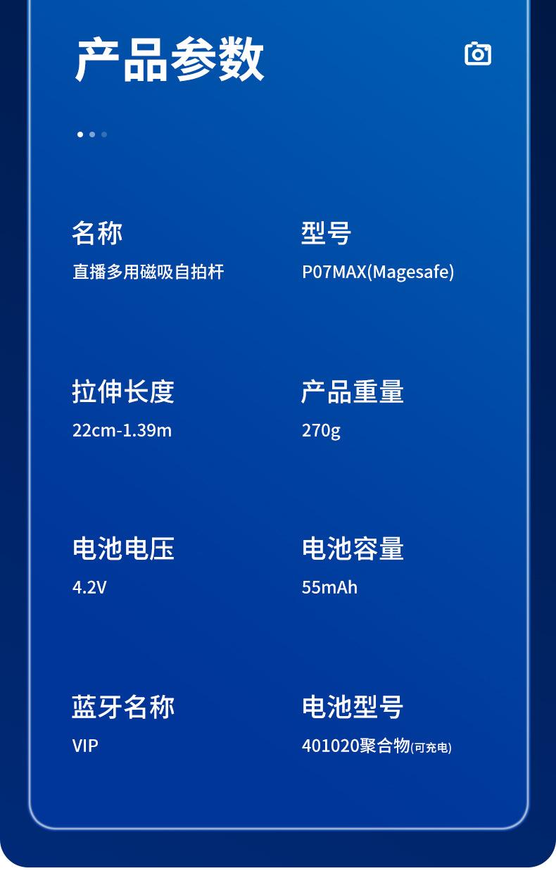 P07MAX Magsafe magnetic selfie stick/black/without light, P07MAX Magsafe magnetic selfie stick/white/without l...