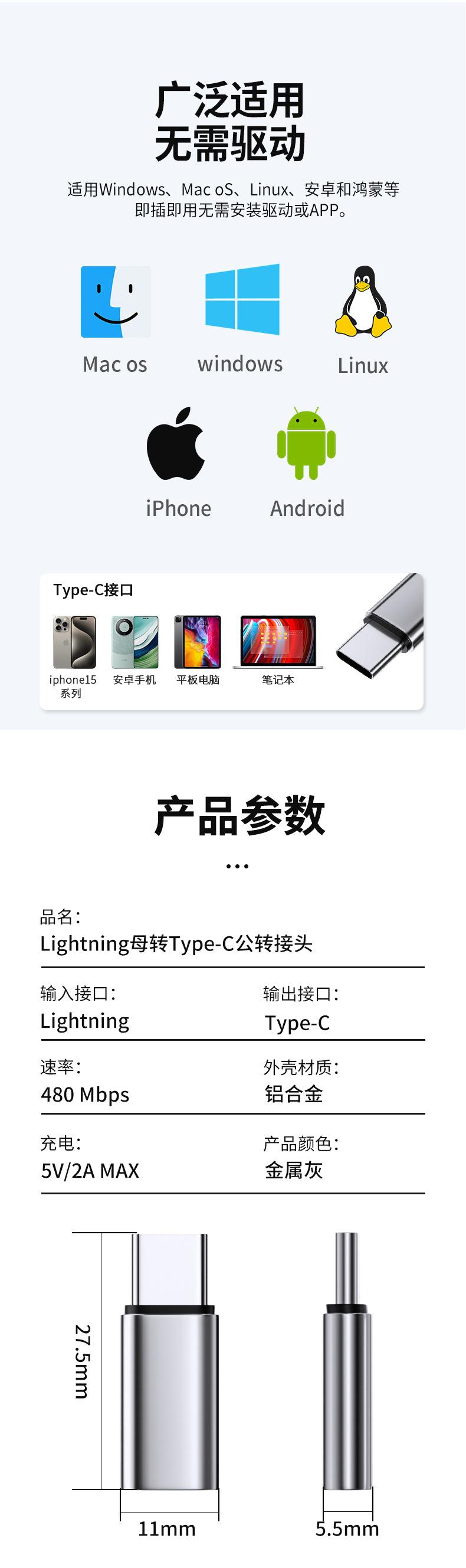 Venta al por mayor transfronteriza Adecuado para Adaptador Apple 15 Adaptador de Cable de Datos Convertidor de Lightning a Tpyec
