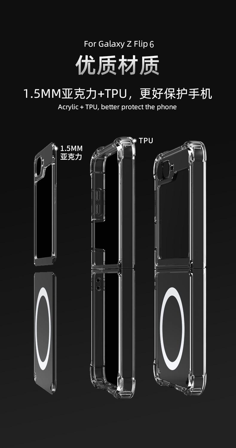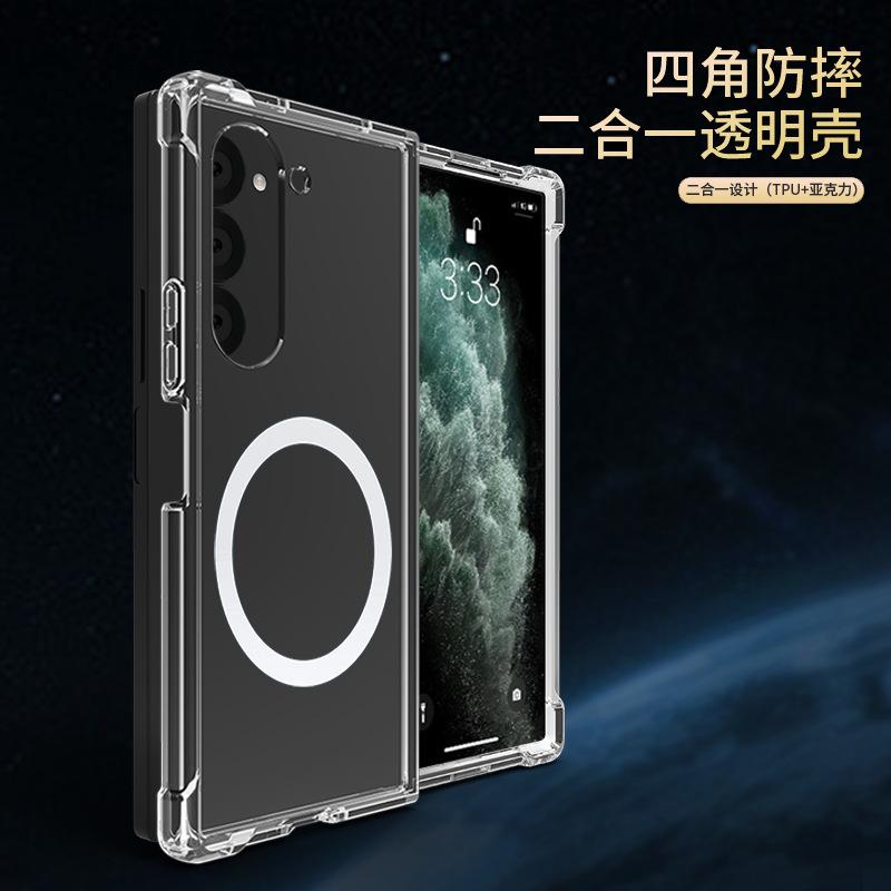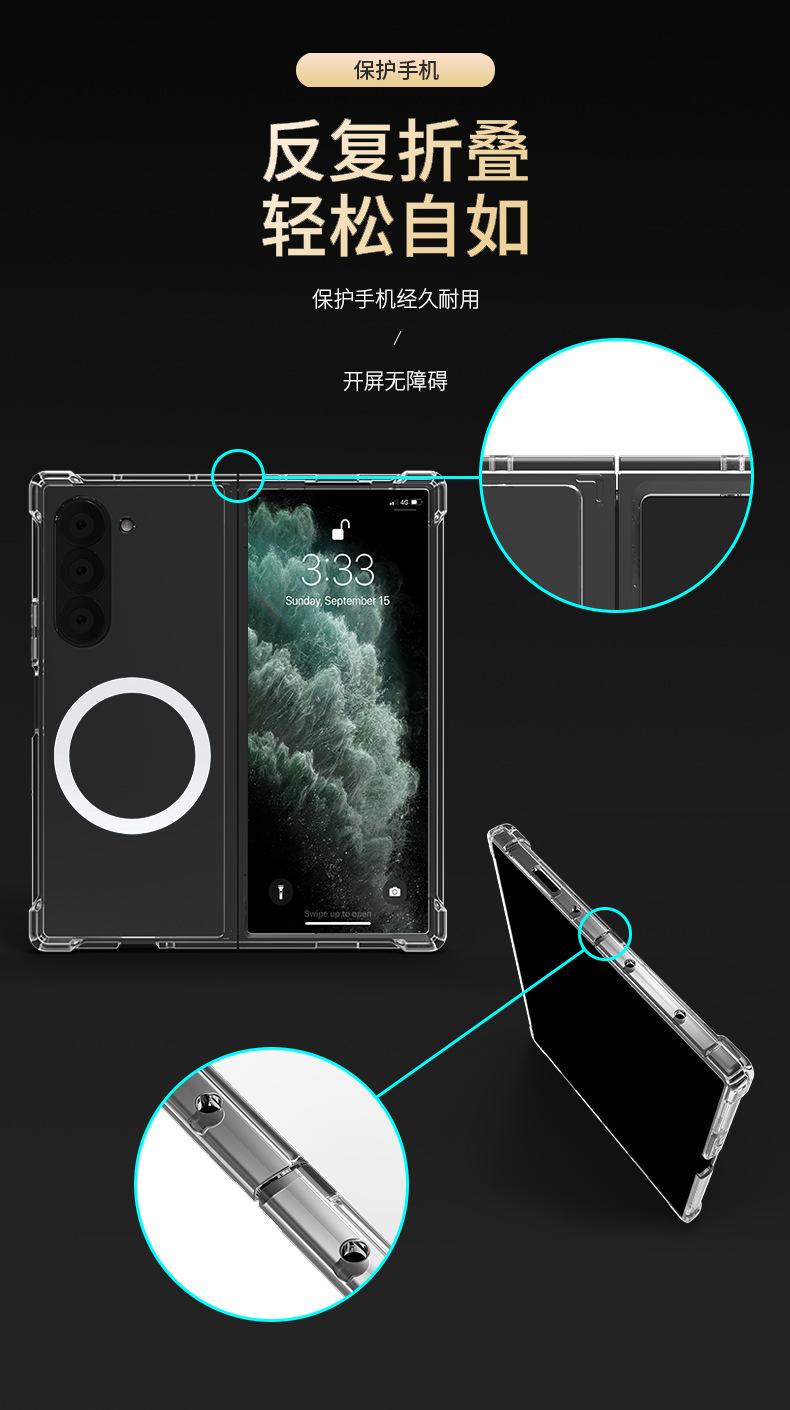 Adecuado para Funda Protectora Samsung Z-Flip6, Funda Transparente Plegable Magsafe Zfold5, Funda Magnética para Teléfono Zflip7