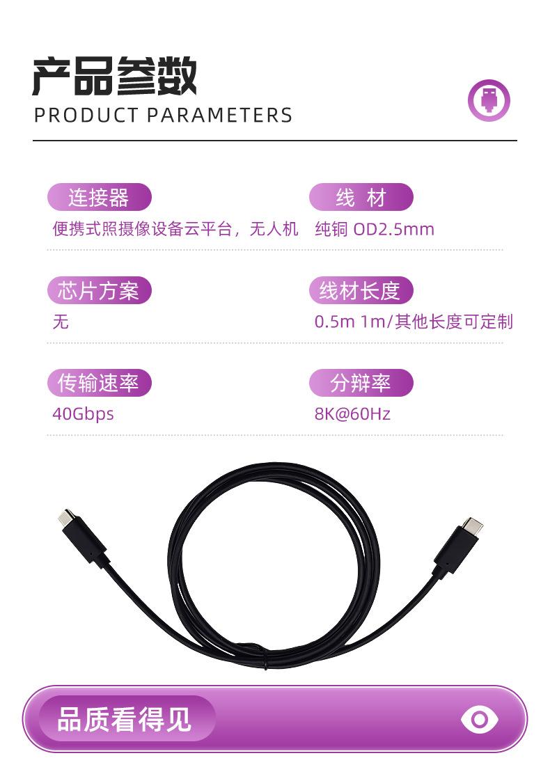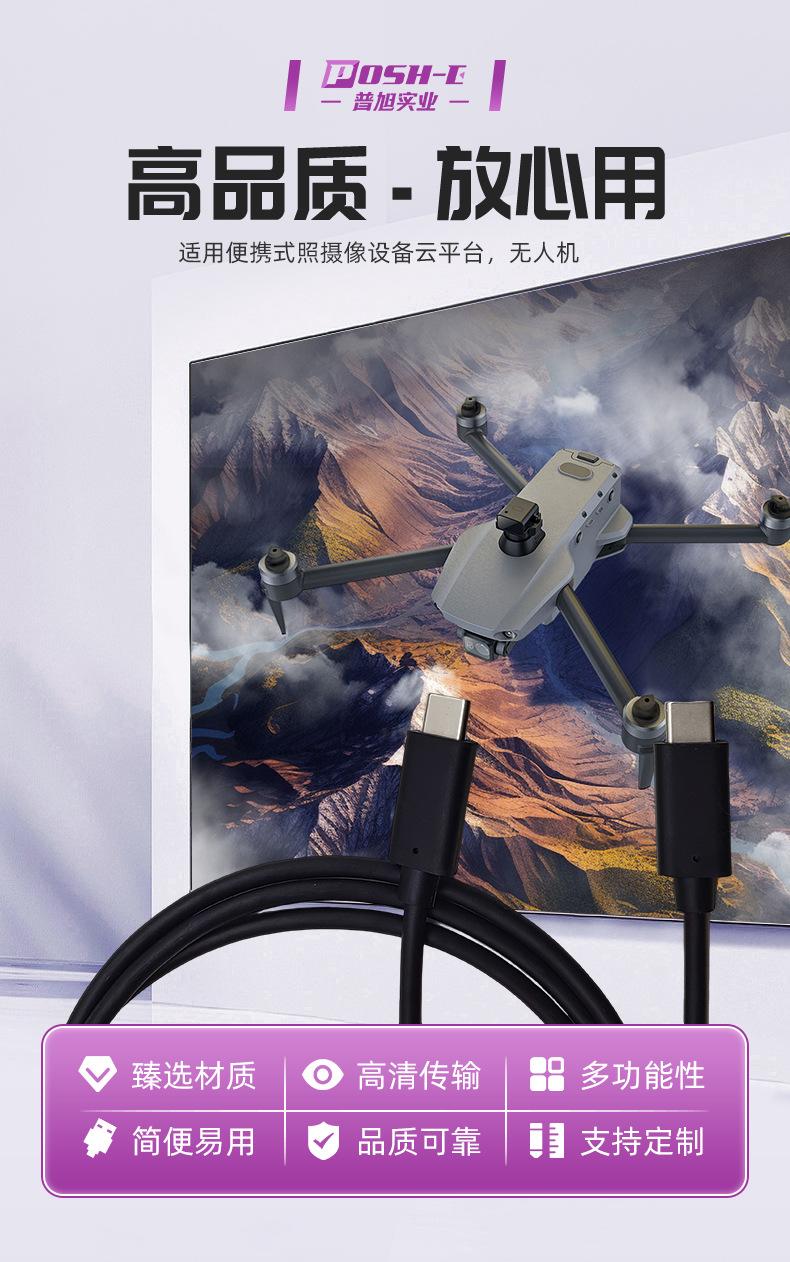Cable de datos de carga rápida tipo C de doble cabezal de 0,5 a 1 m para cámara de vehículo aéreo no tripulado. Cable de datos tipo C.