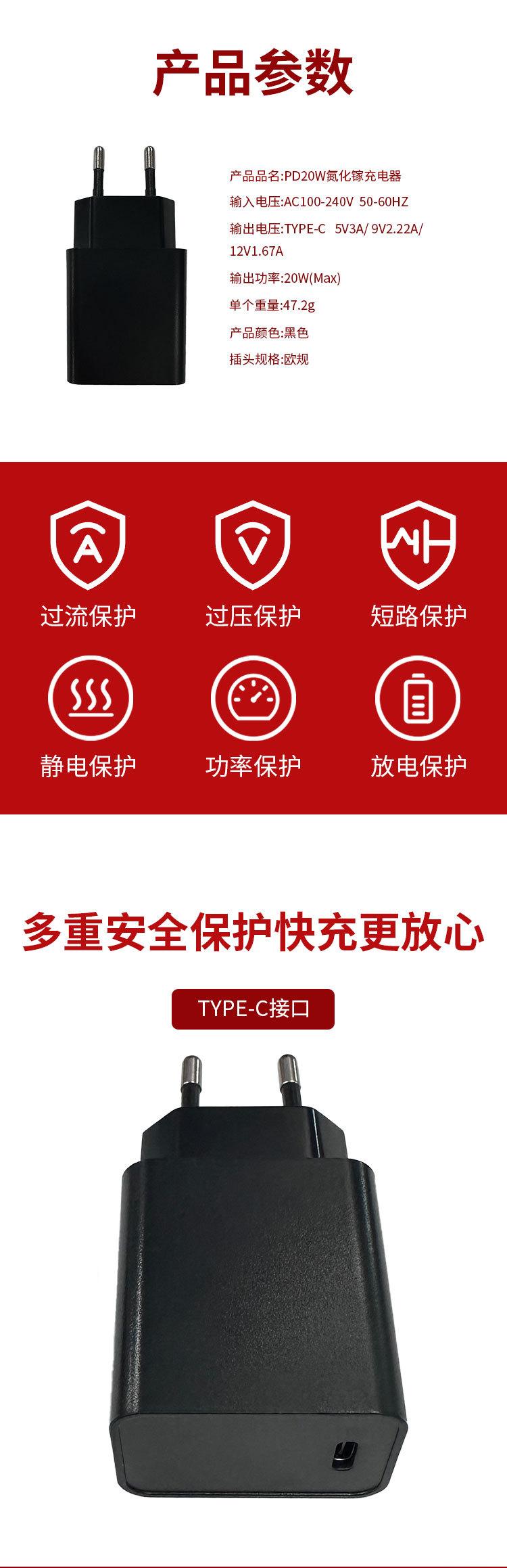 Cargador rápido PD20W estándar europeo para teléfono móvil, cabezal de carga flash, cabezal de fuente de alimentación de cargador superrápido Tpye-c