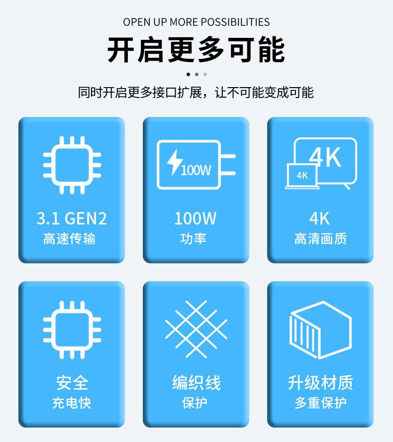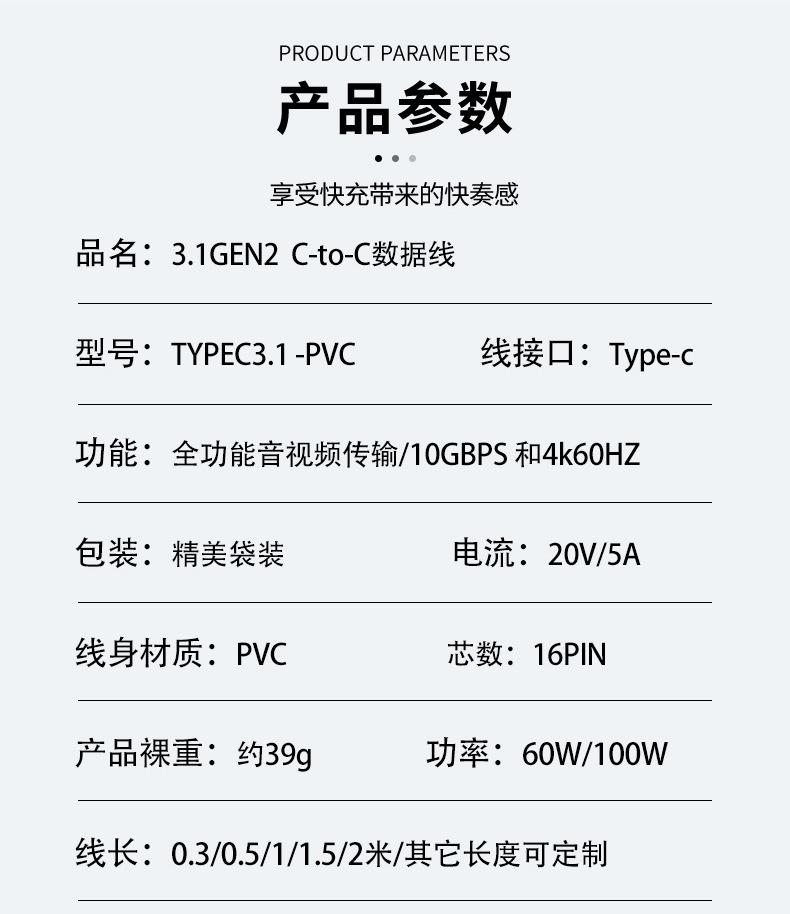 TYPEC3.1 doble macho 16 núcleos C A C línea de datos de función completa macho a macho transmisión de pantalla de audio y video 100W