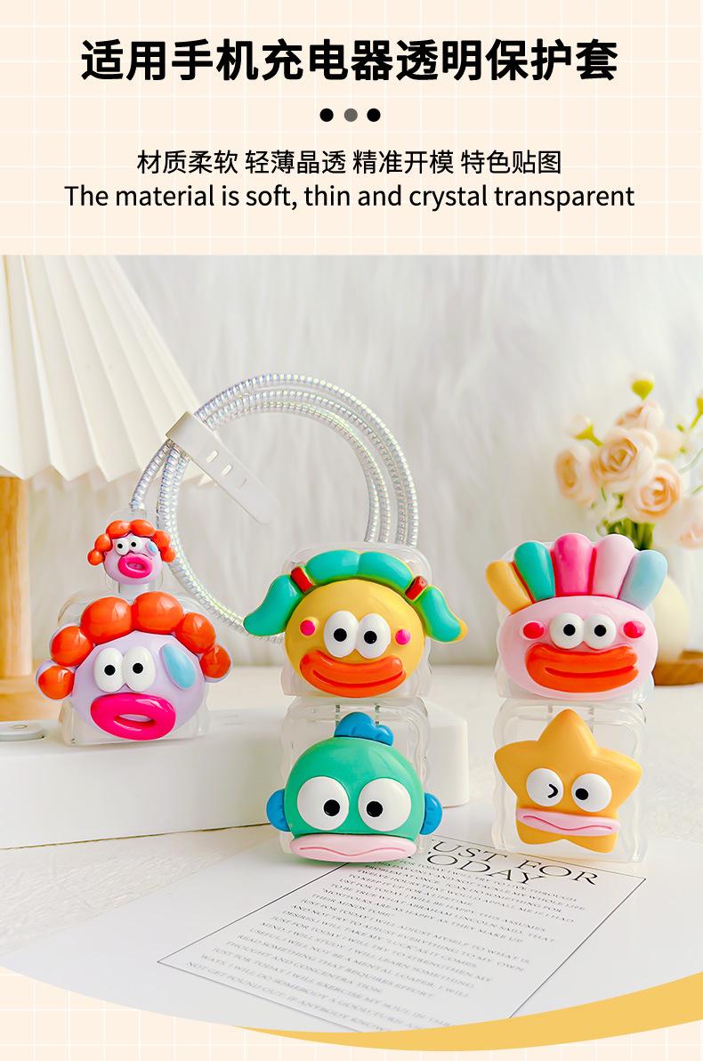 Adecuado para Cubierta Protectora de Cargador Apple 20W 16/15/14 Cubierta para Cabezal de Carga Protector de Cable de Datos Dispositivo Antirotura de Cable Pez Feo Hanton