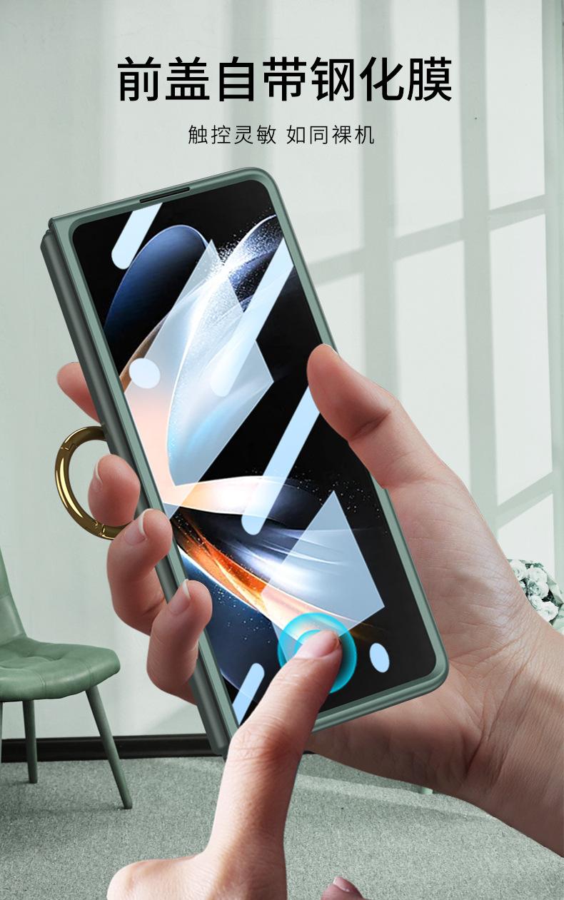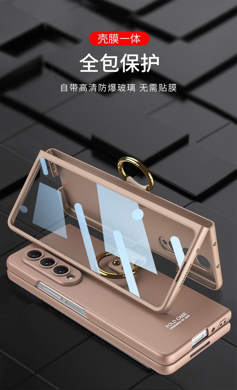 Funda para teléfono móvil Samsung zFold4 con soporte de anillo anticaída y película protectora integrada para Galaxy z fold5