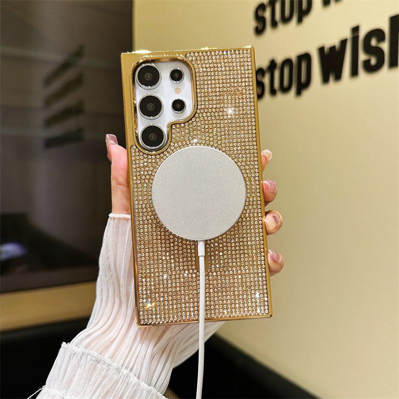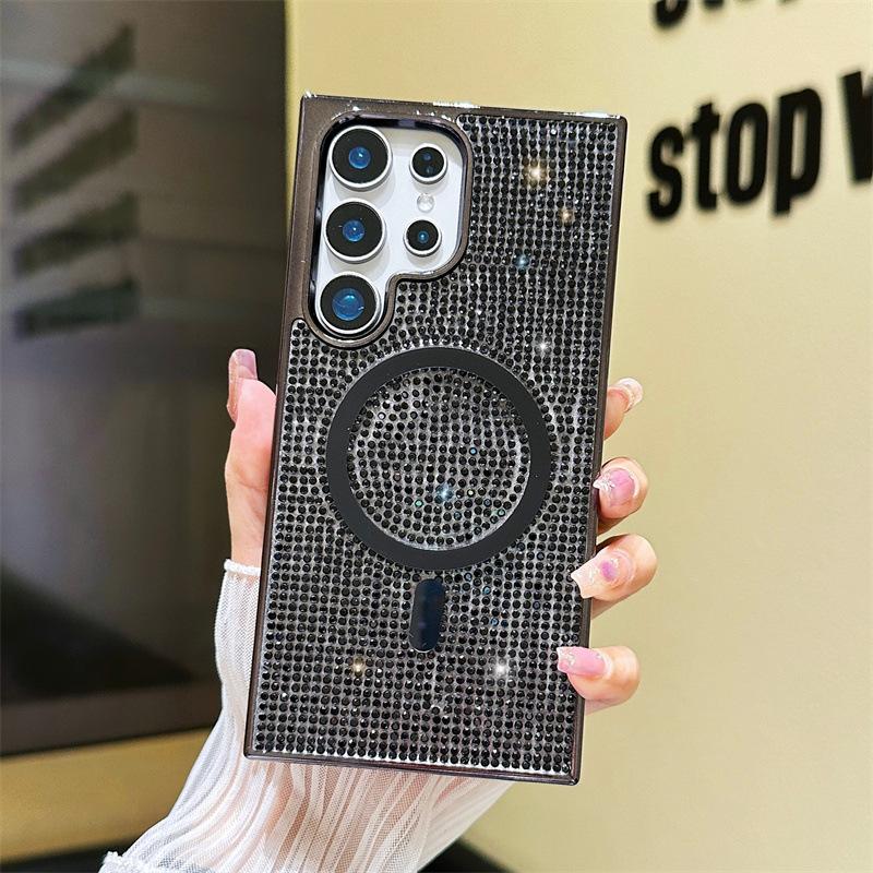 Adecuado para Samsung S25Ultra Carcasa Magnética para Teléfono Mil Diamantes Galvanizada S24Ultra Diamantes de Imitación Magnética Anti-Caída Cubierta Protectora