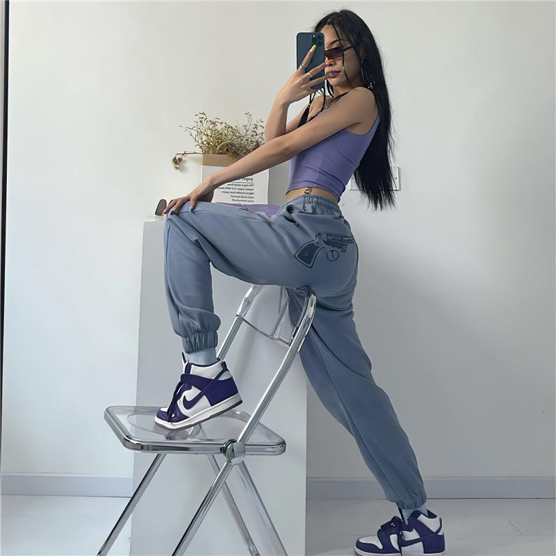 2023 Nuevos Pantalones Deportivos de Danza Callejera Jazz Estampados para Mujer Hip-Hop Pierna Suelta Cintura Alta Más Fácil de Combinar Pantalones de Chándal Casuales Modernos