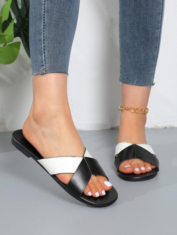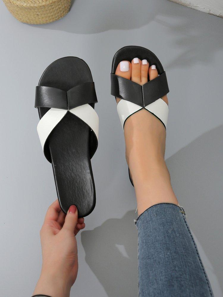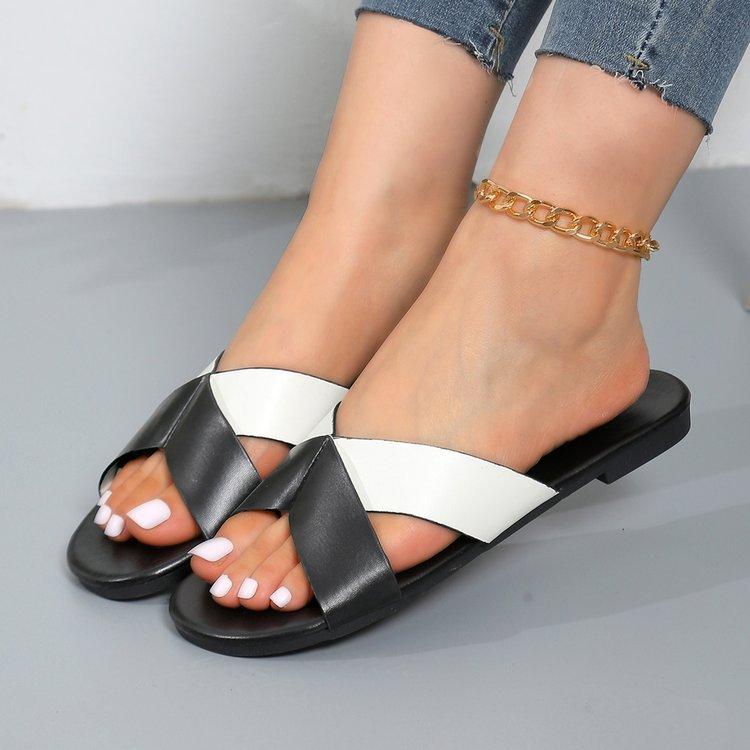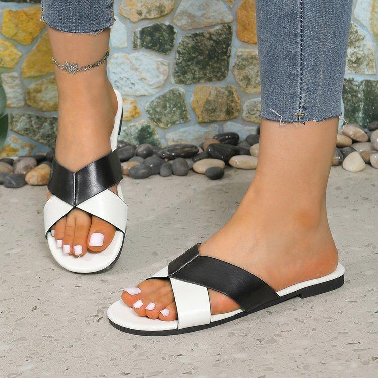 Compra Sandalias y pantuflas de estilo europeo y americano de nuevo estilo para mujer, de comercio exterior, talla grande, verano 2024, conjunto de ropa exterior informal, pantuflas planas con punta al por mayor en Joom.pro