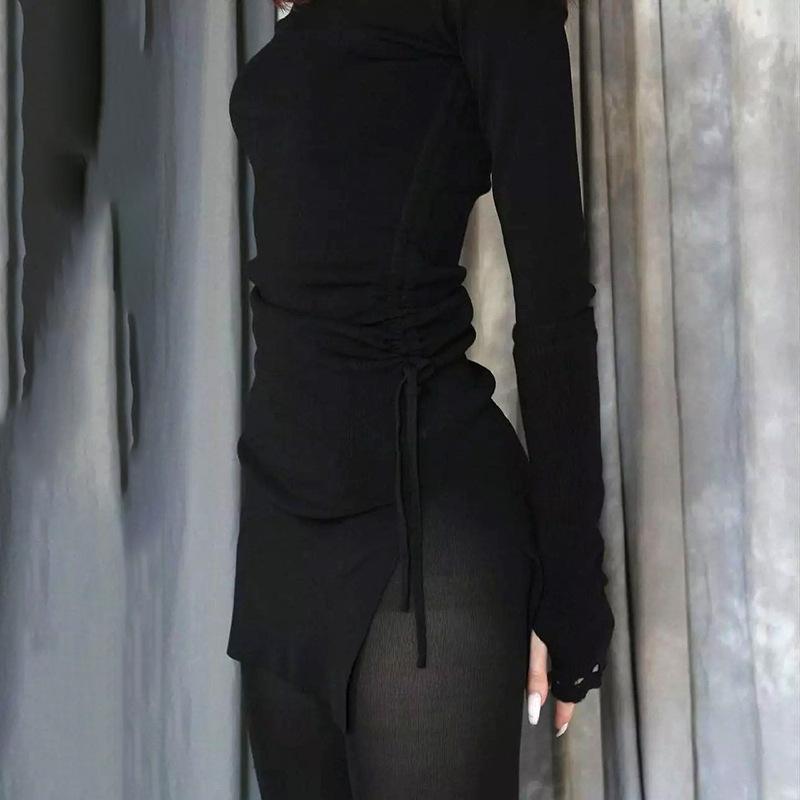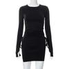 Comercio exterior transfronterizo 2024 principios de primavera nuevo jersey de cuello redondo de color puro de manga larga con cordones divididos ropa de mujer europea y americana vestido de moda