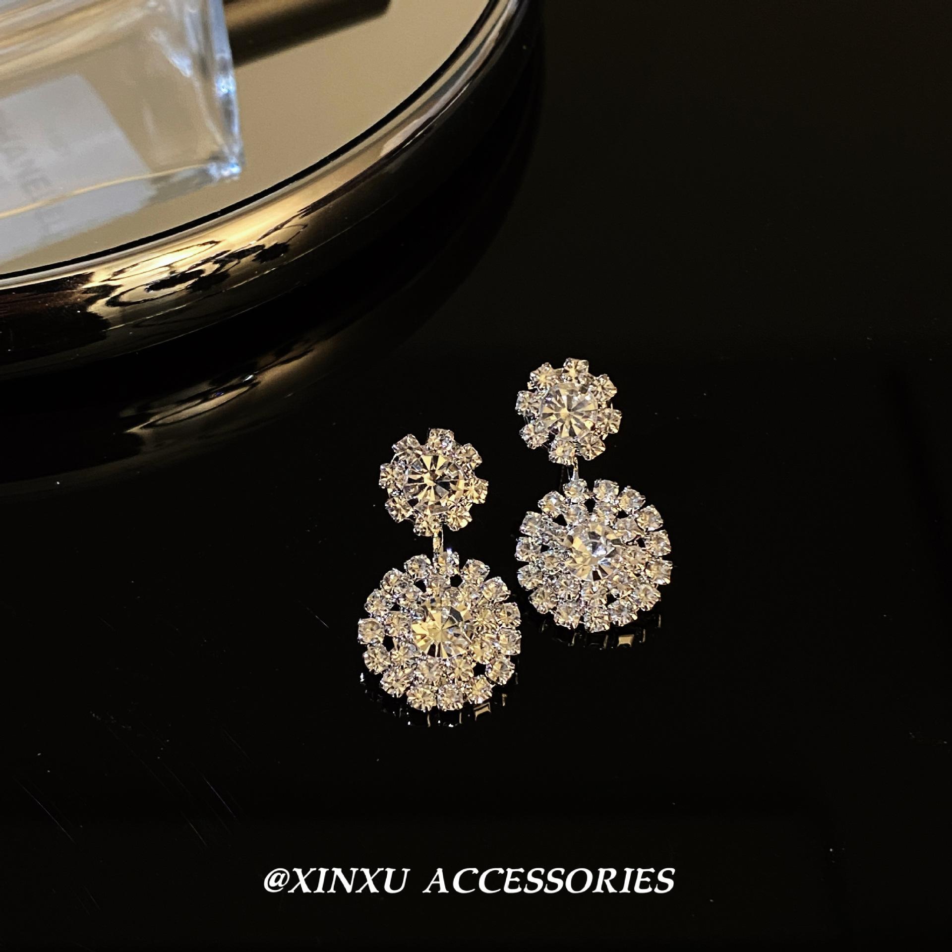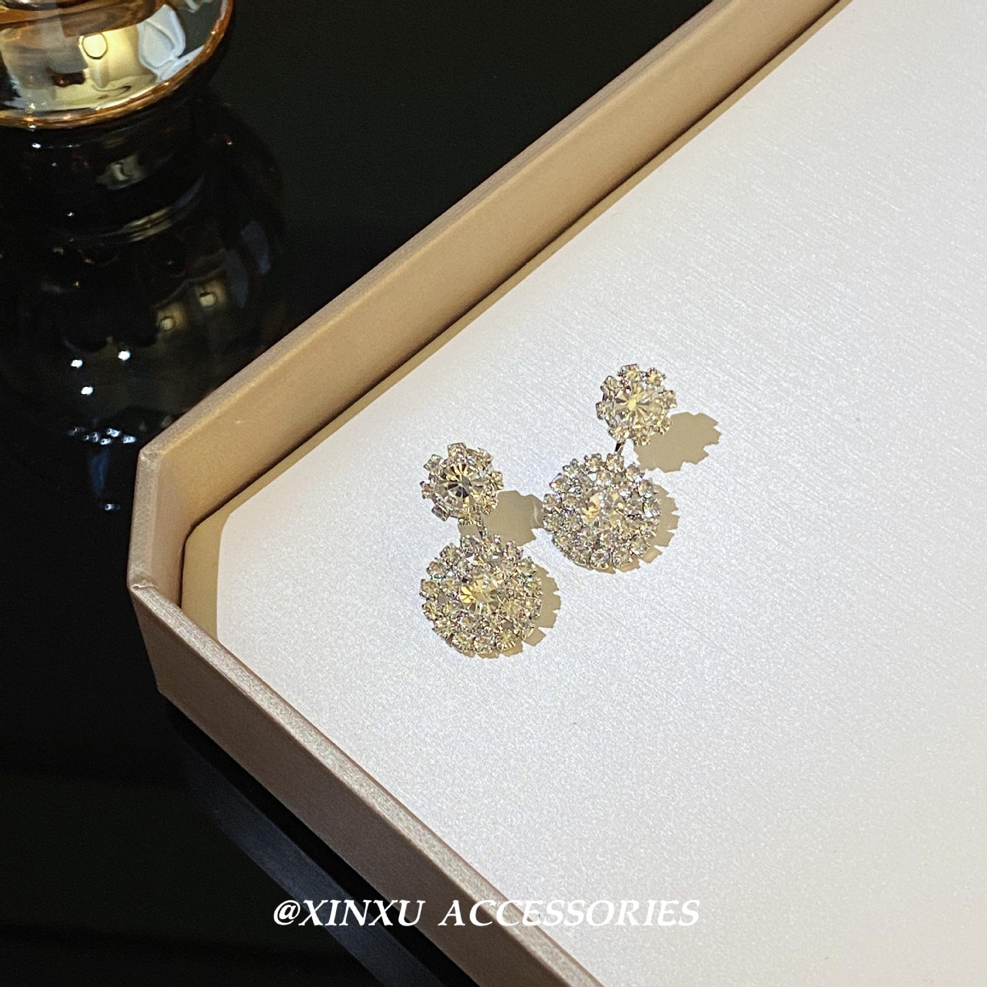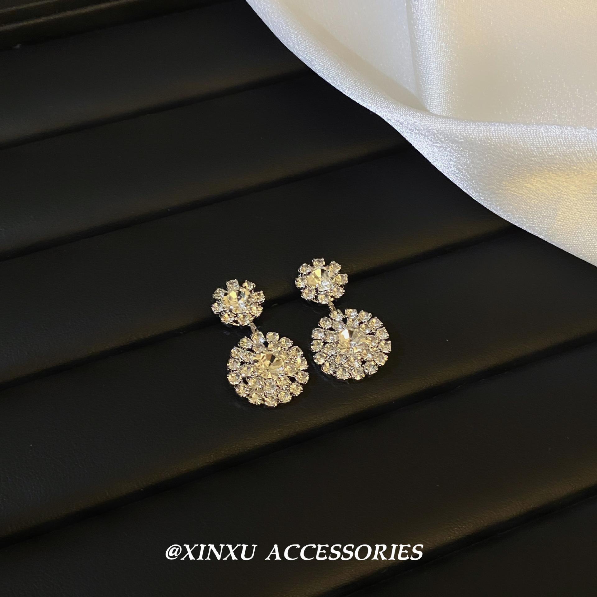 Pendientes redondos de diamantes nuevos 2024, elegantes, personalizados, de nicho, sencillos, de moda, de alta gama, ligeros y de lujo.