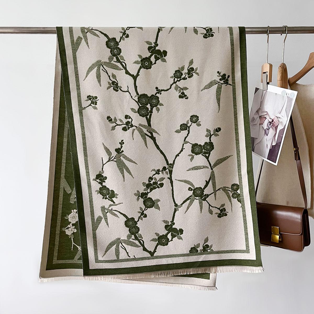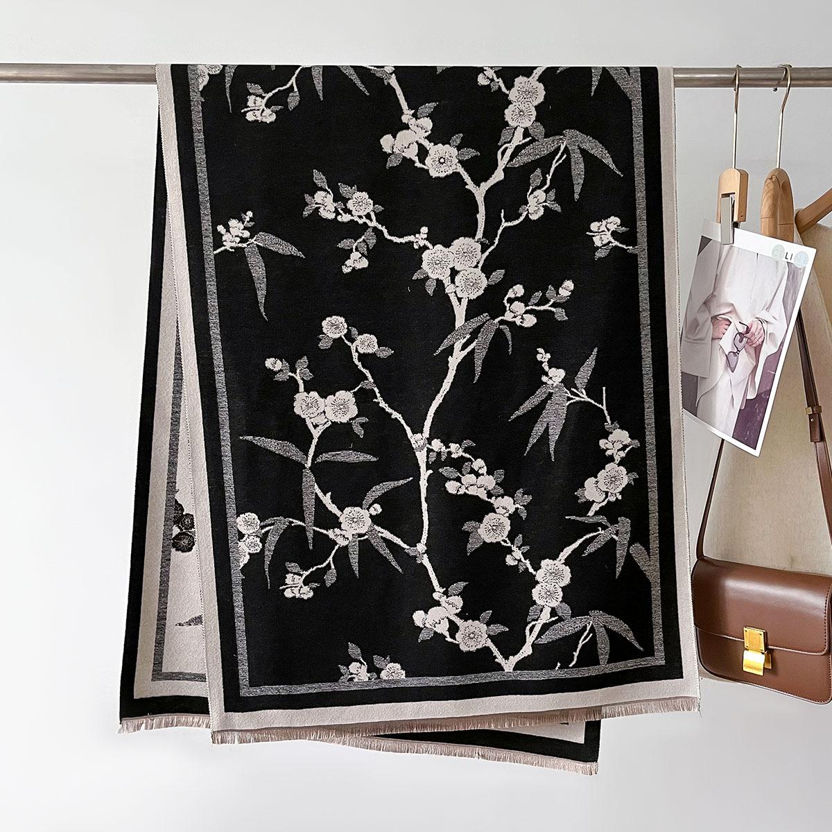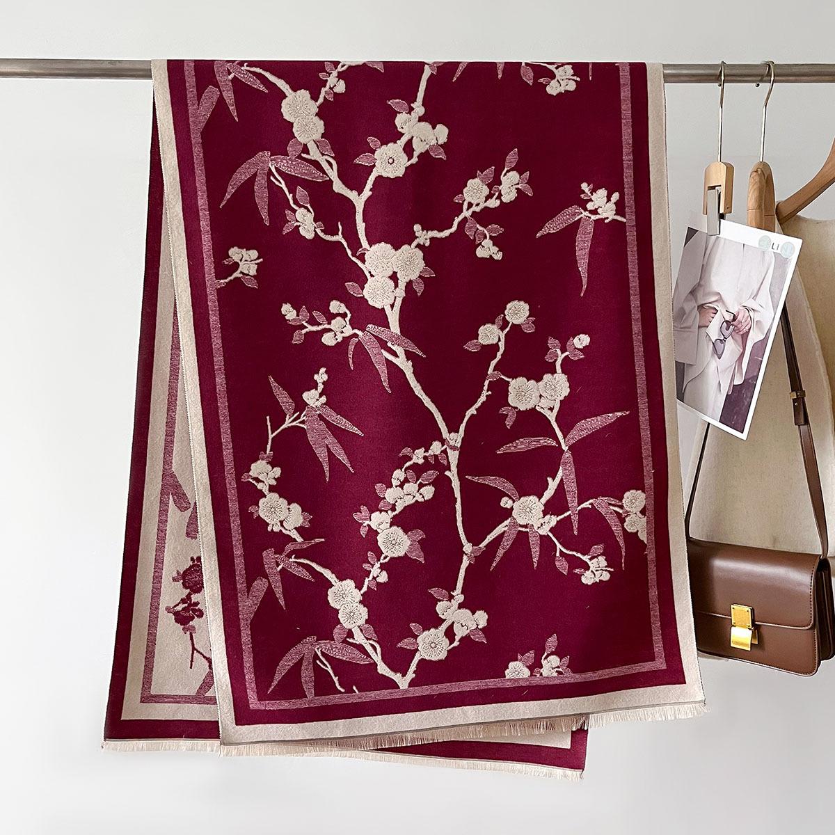 Elegante bufanda retro de otoño e invierno, nueva moda, elegante, flor, cachemira, acolchada de doble cara, bufanda larga, chal grande