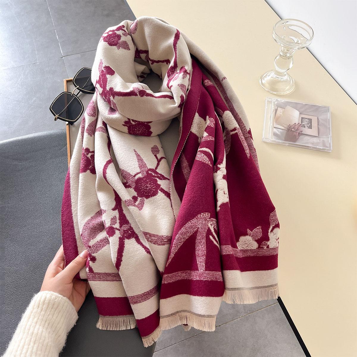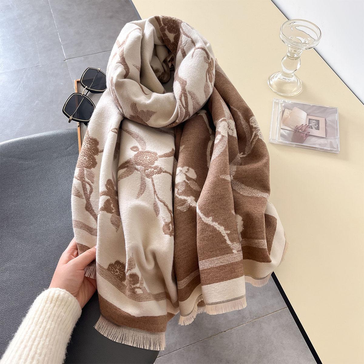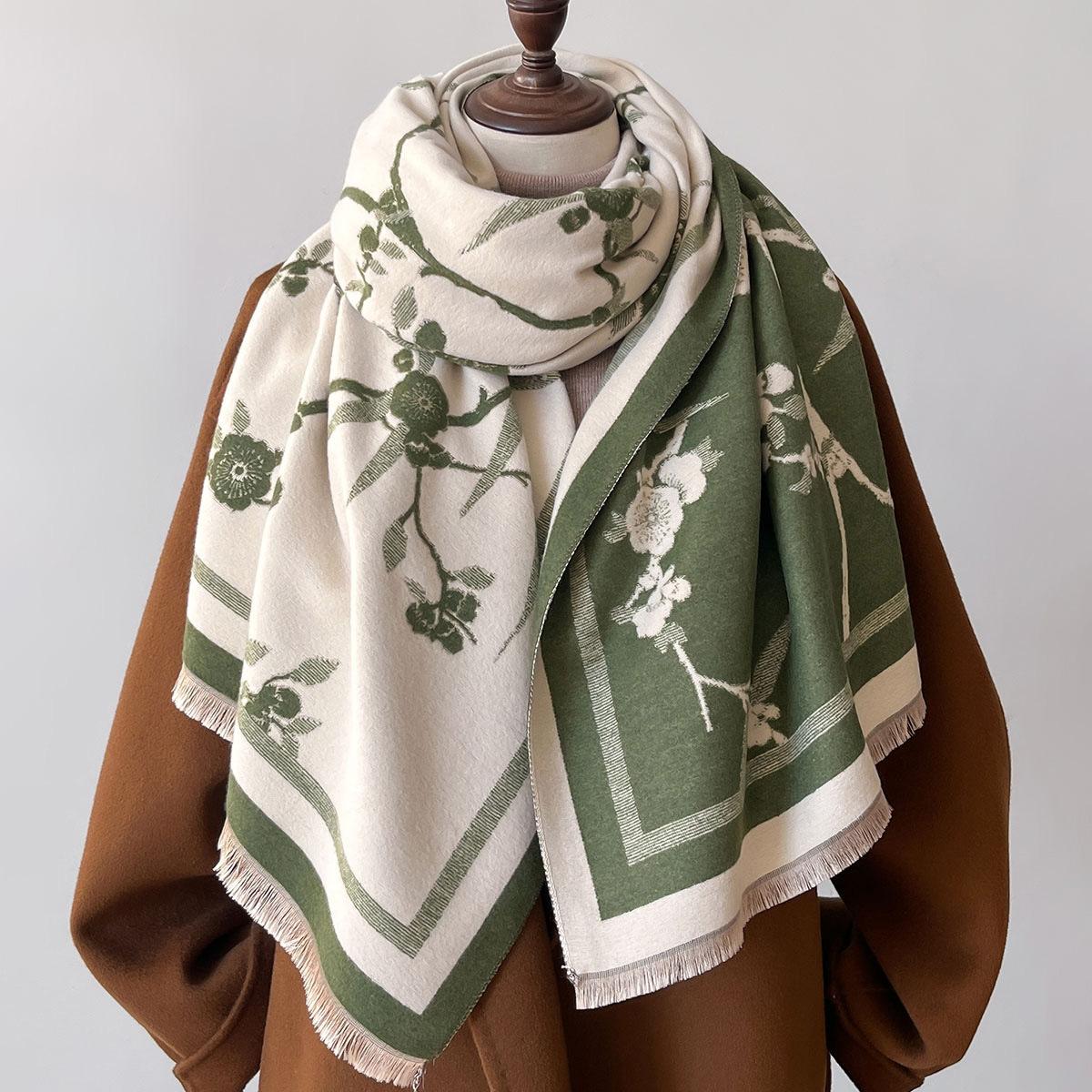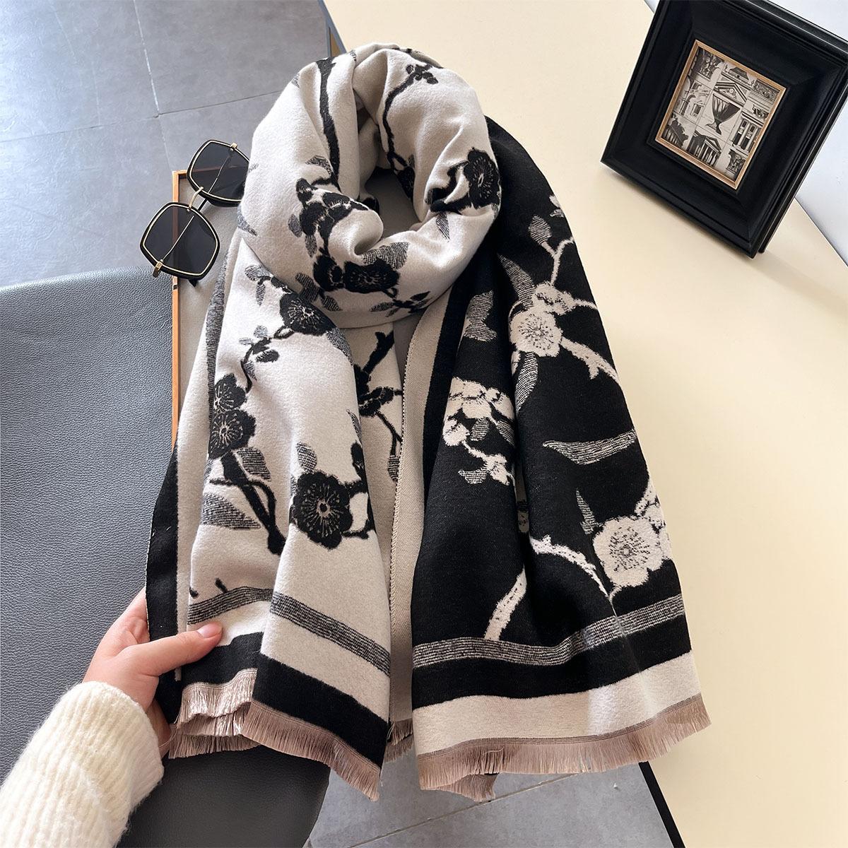 Elegante bufanda retro de otoño e invierno, nueva moda, elegante, flor, cachemira, acolchada de doble cara, bufanda larga, chal grande