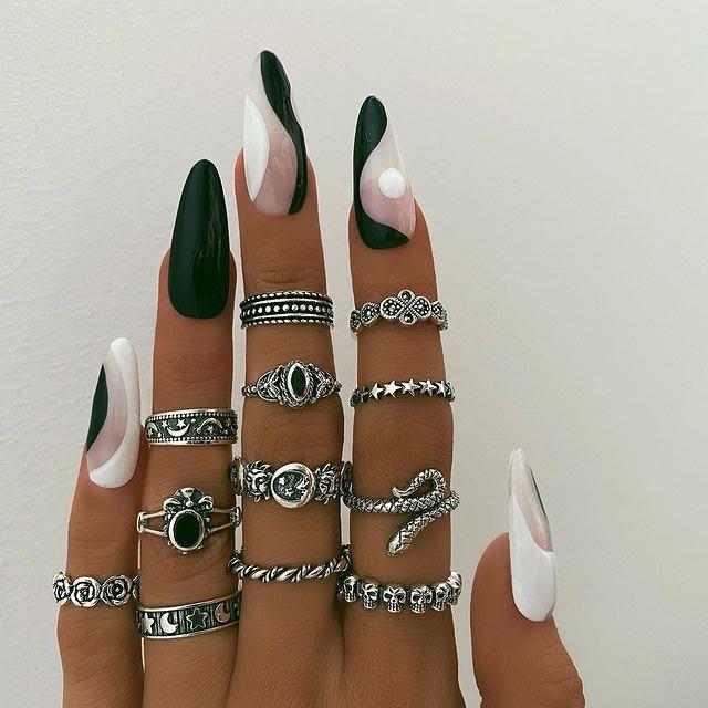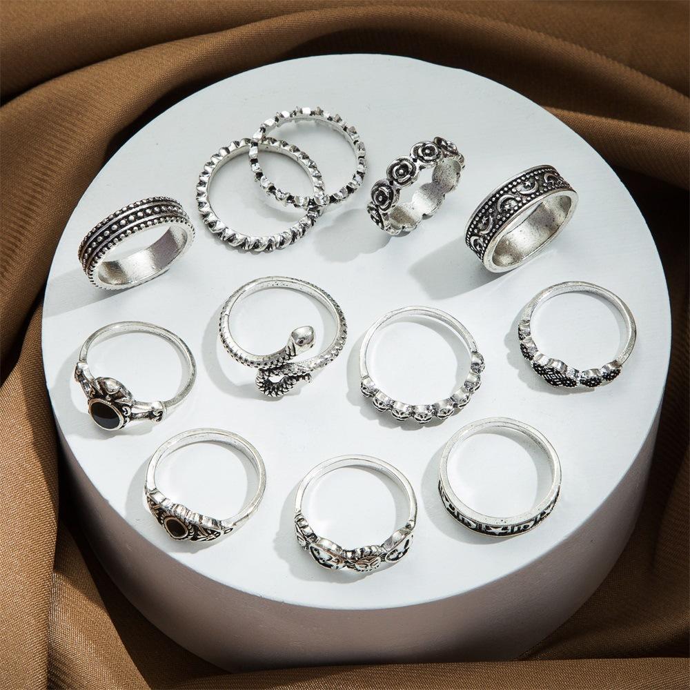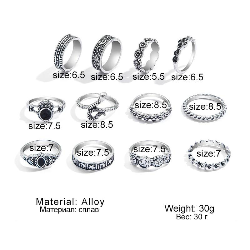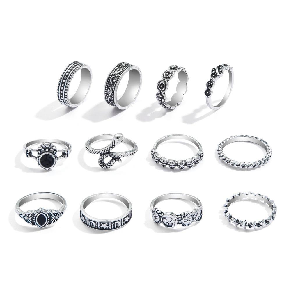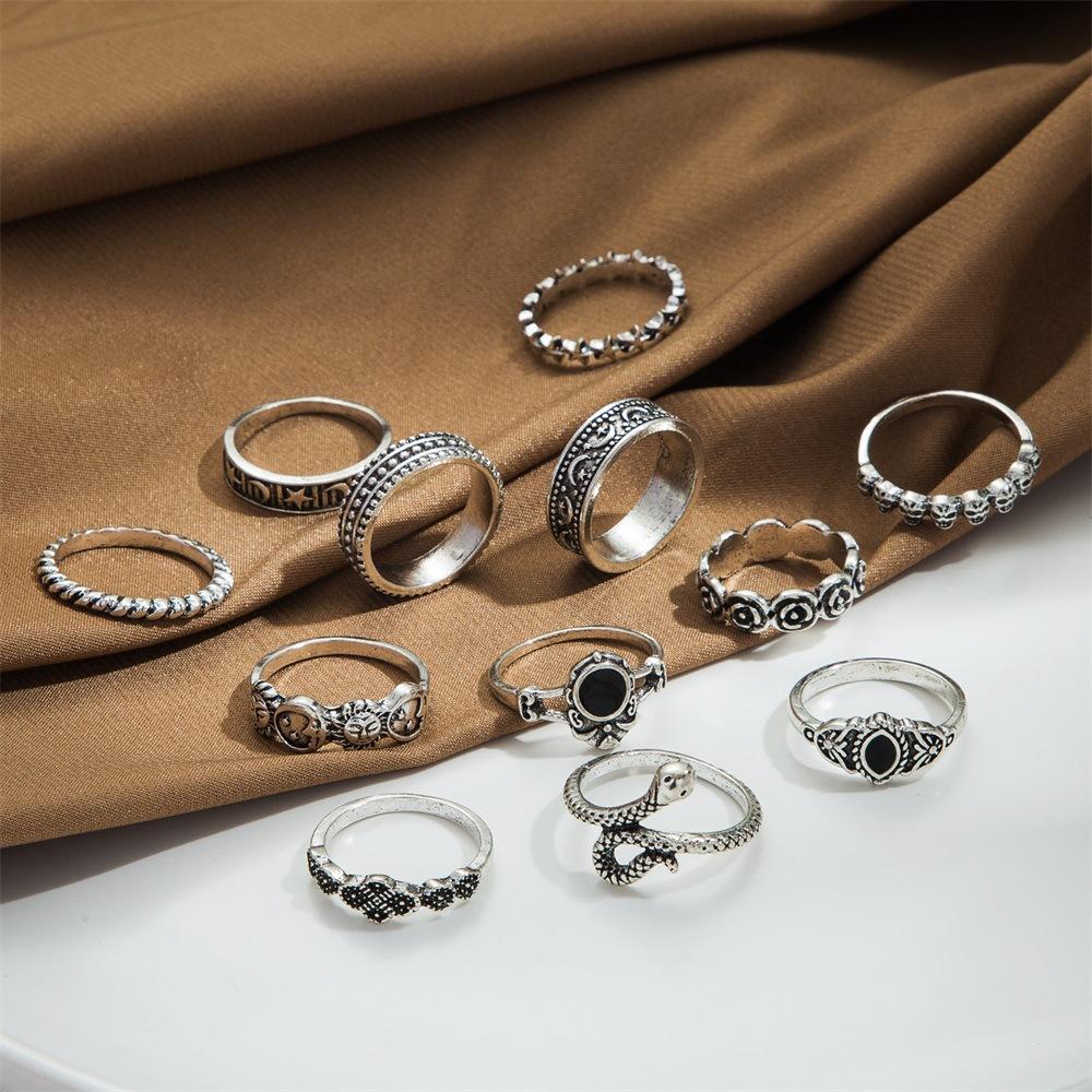 Conjunto Vintage de 12 Piezas de Serpiente Combinación de Anillos Tótem Ojo del Diablo Antiguo Calavera Anillo Estrella de Cinco Puntas Anillo Retorcido