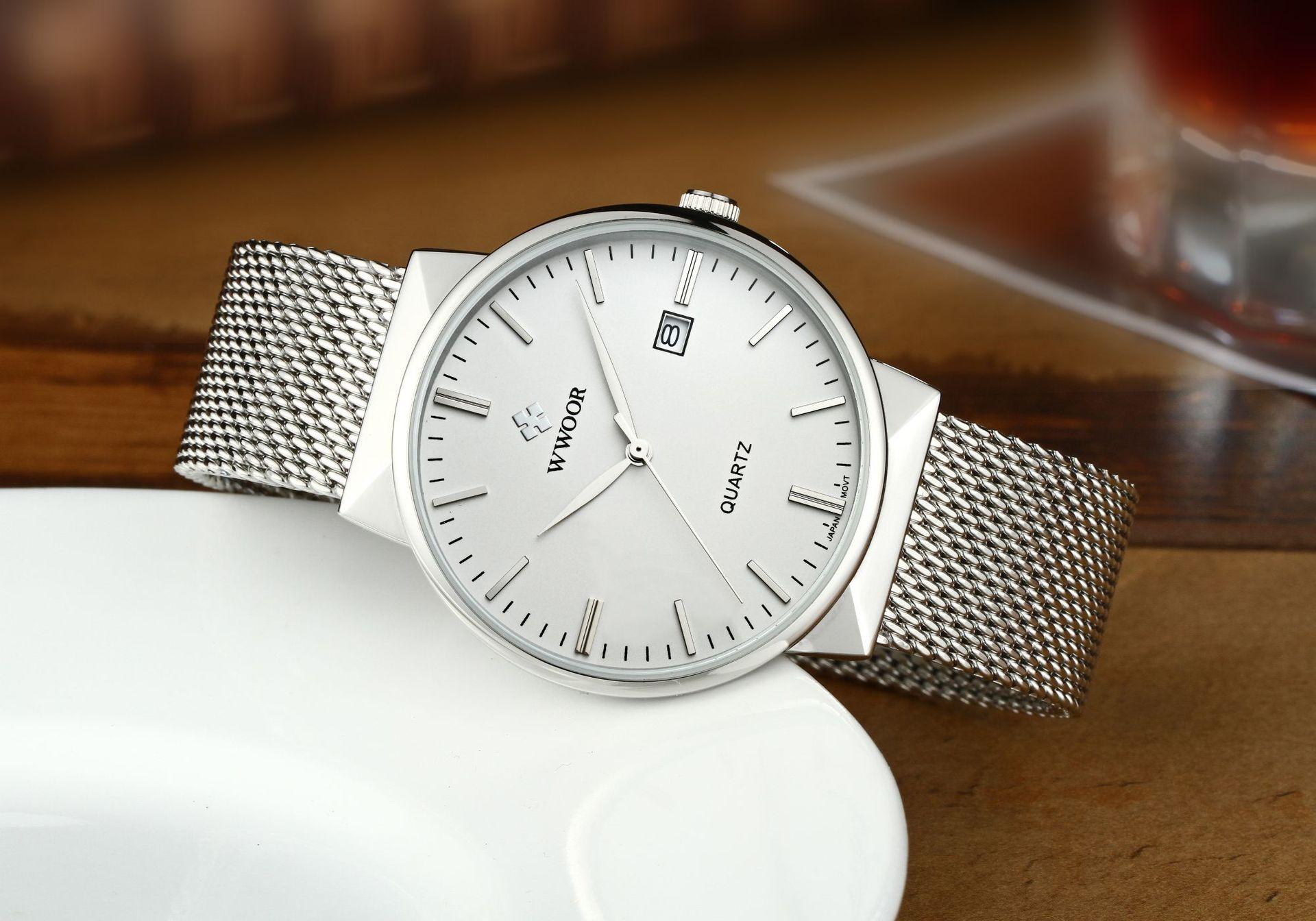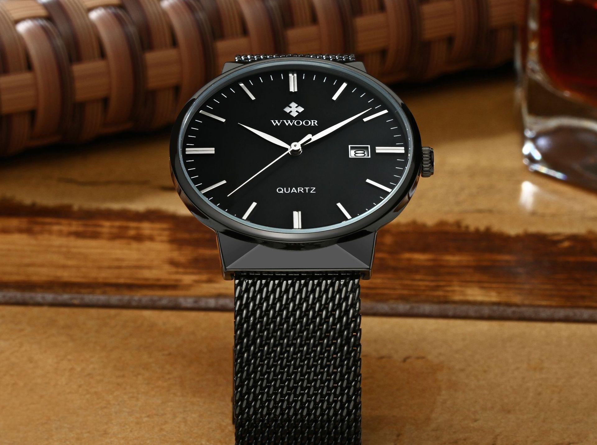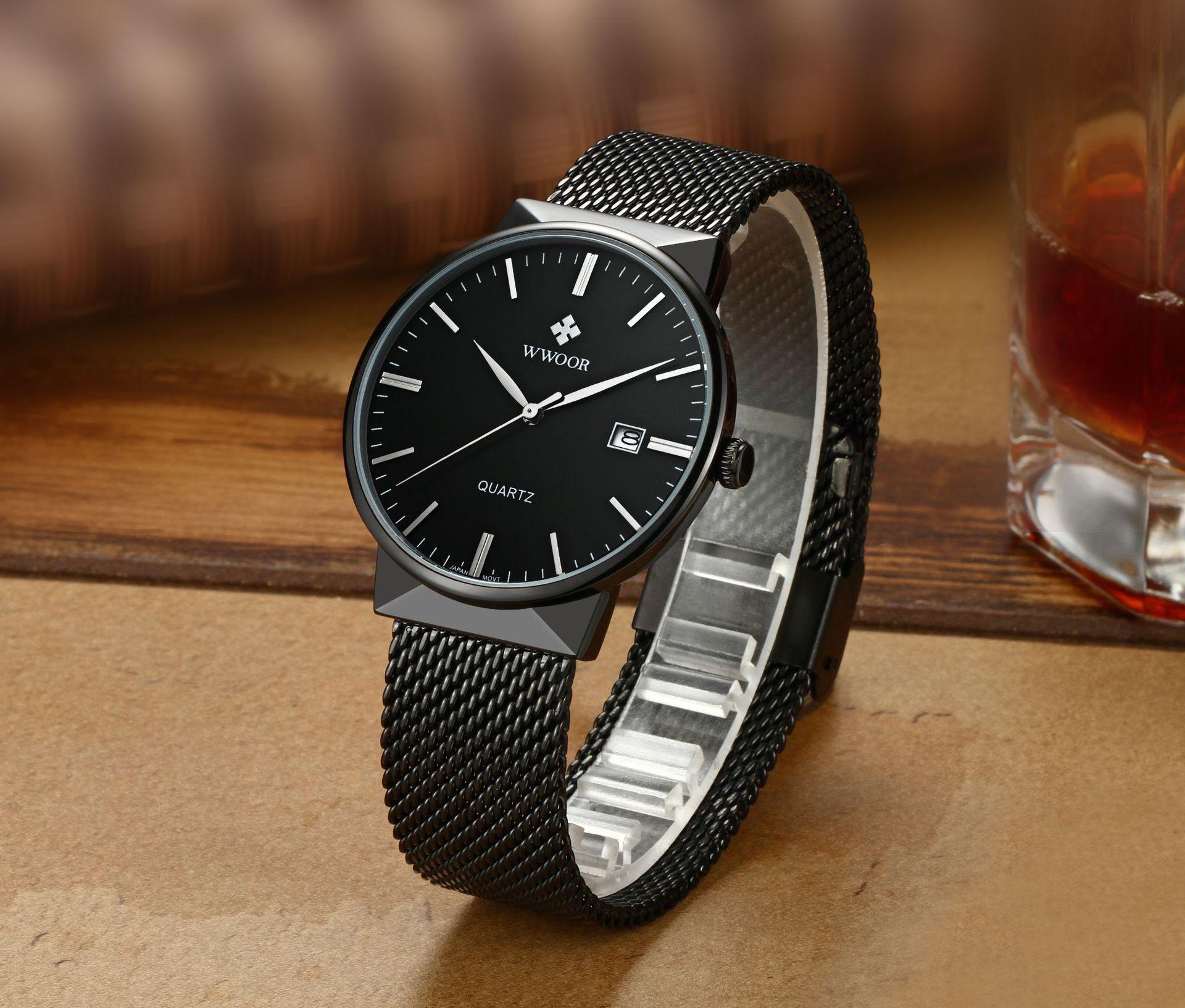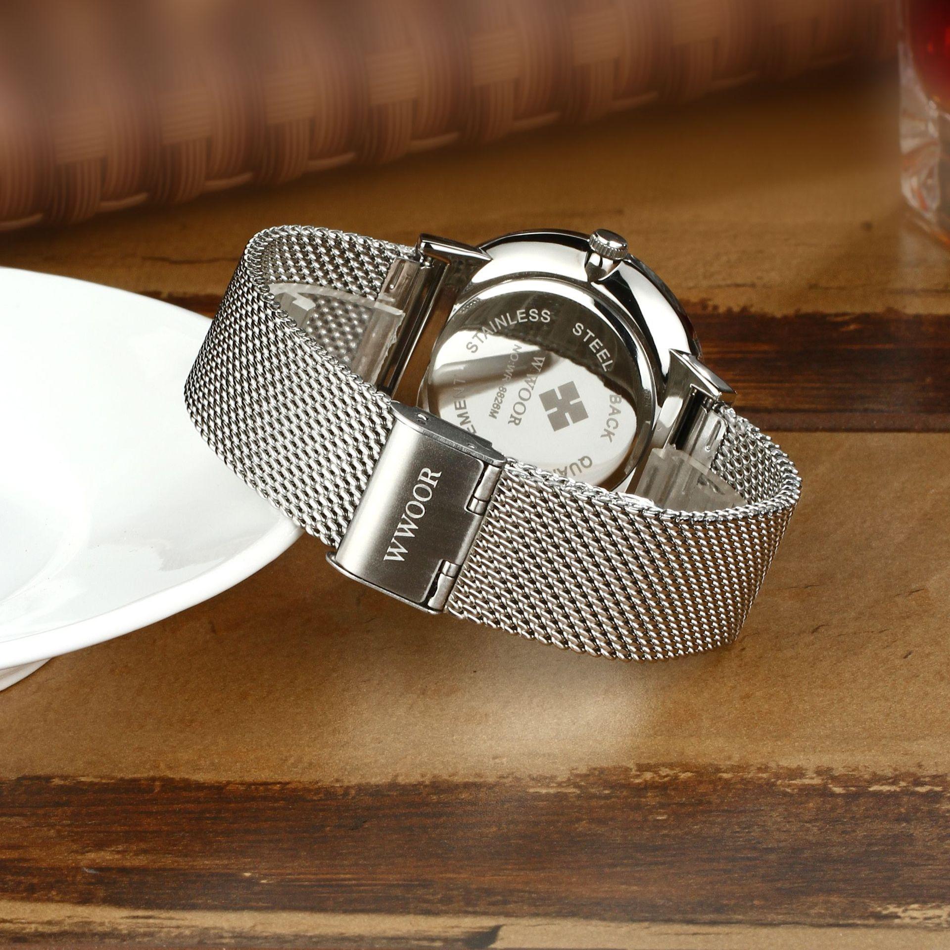 Wdoor/Grip Love 8826 Reloj de cuarzo ultrafino, resistente al agua, con calendario y correa de malla sencilla, reloj de moda