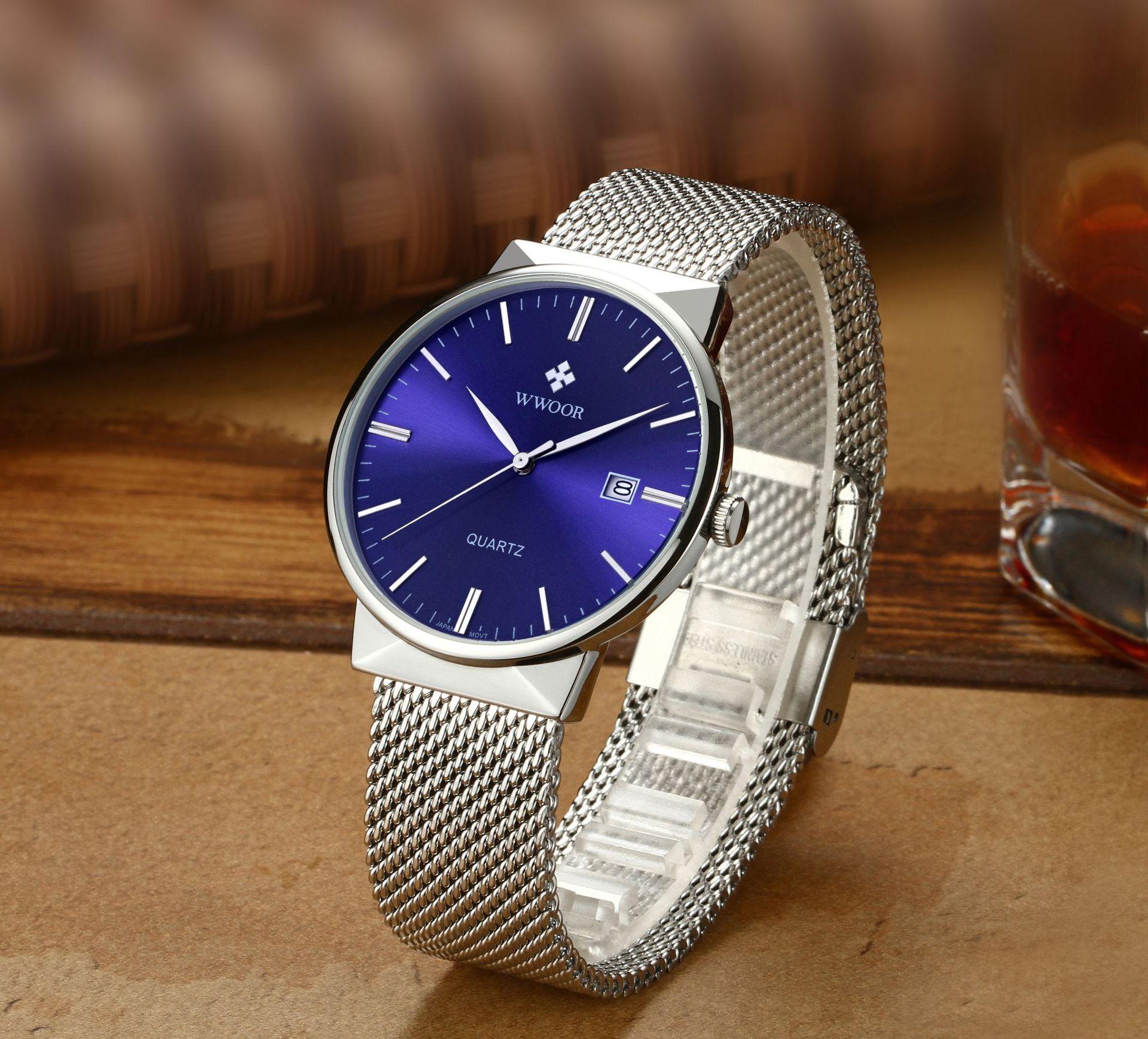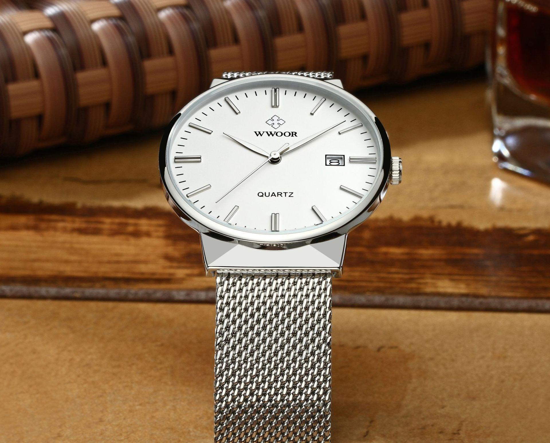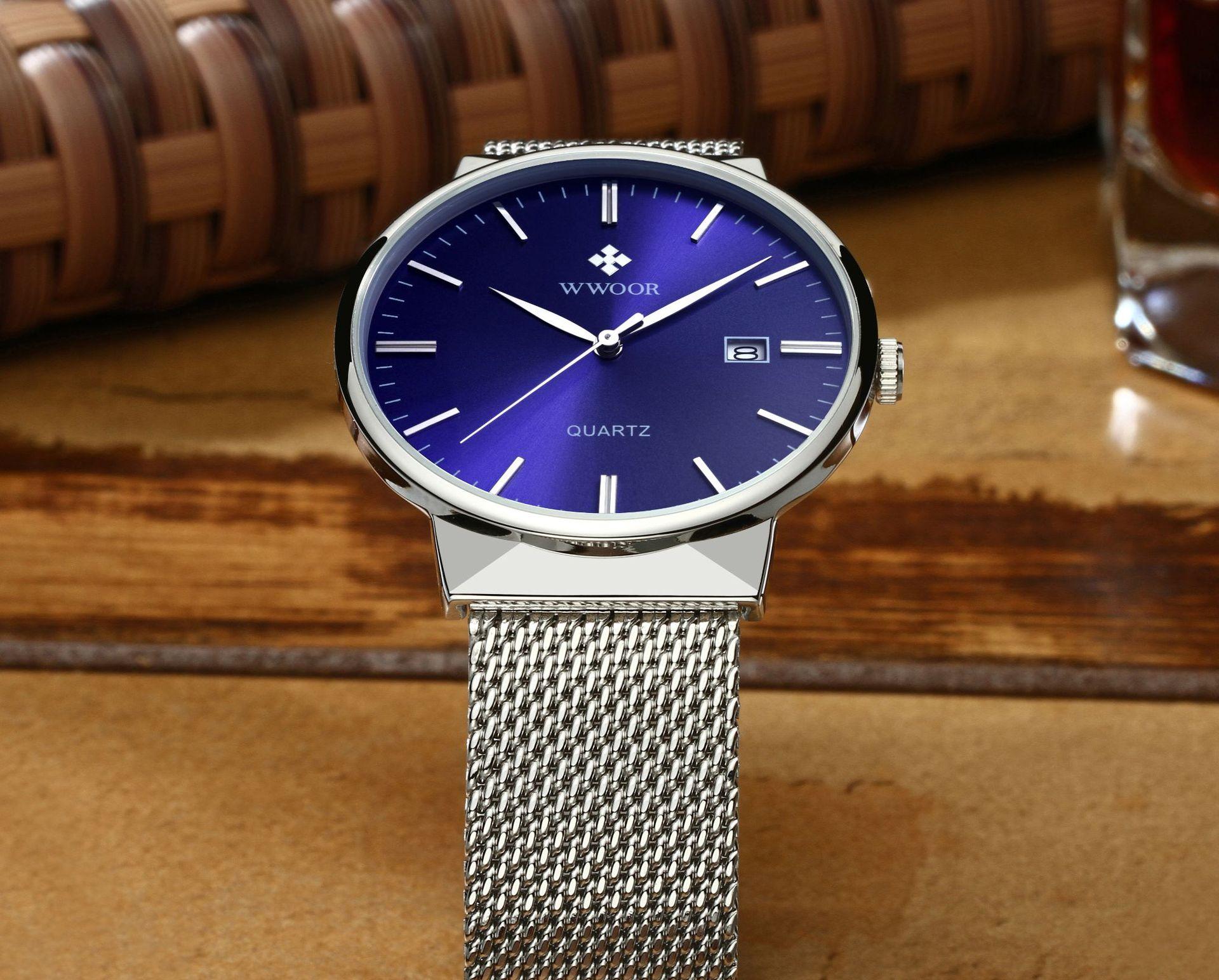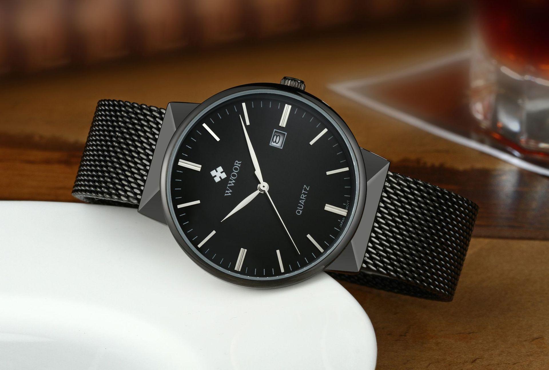 Wdoor/Grip Love 8826 Reloj de cuarzo ultrafino, resistente al agua, con calendario y correa de malla sencilla, reloj de moda