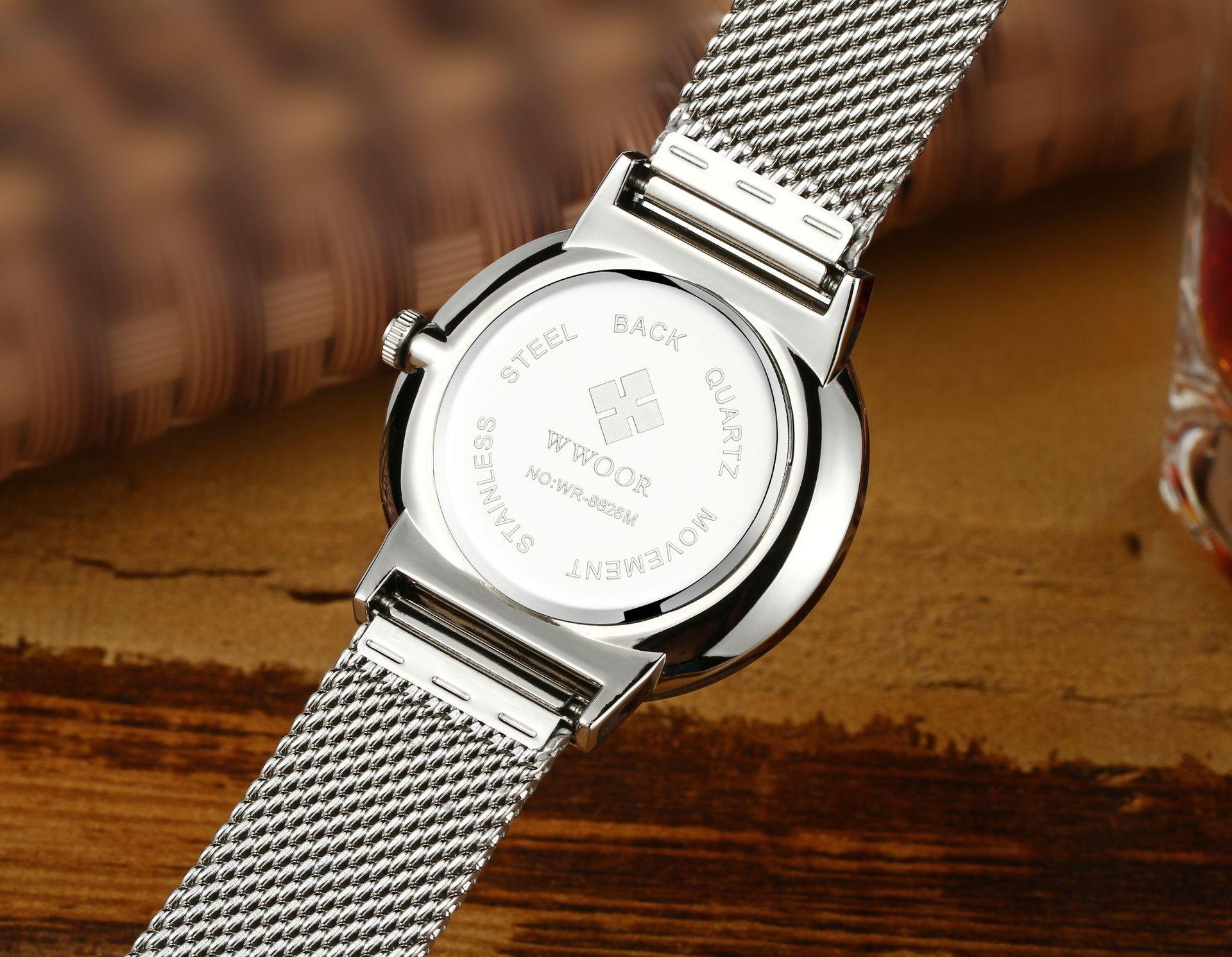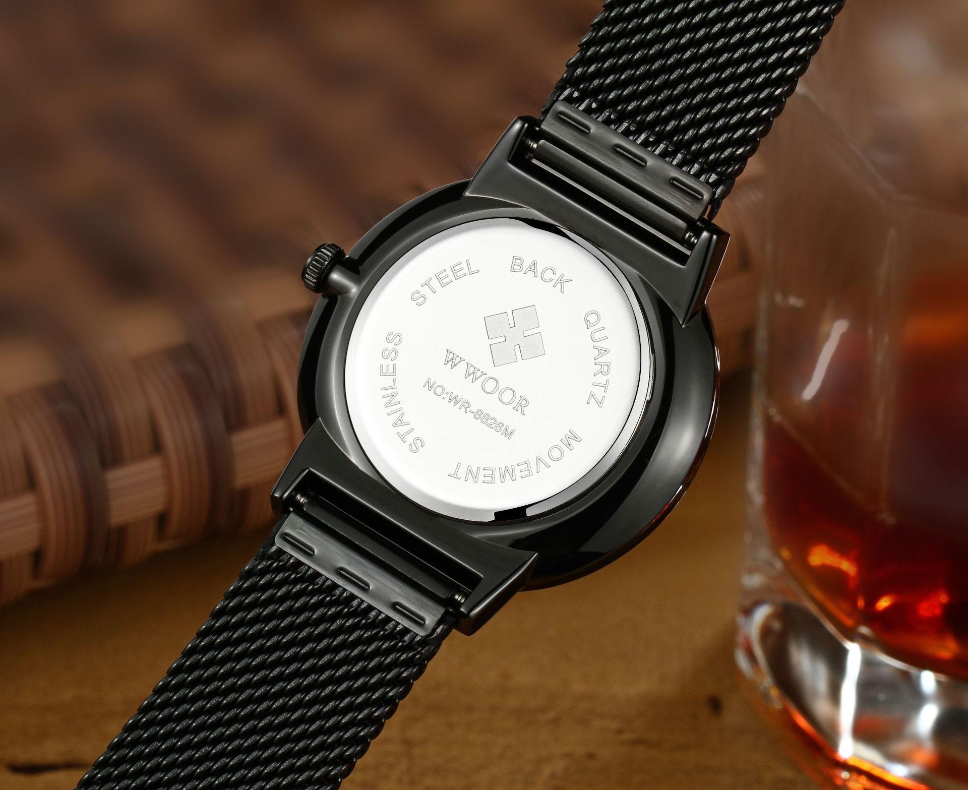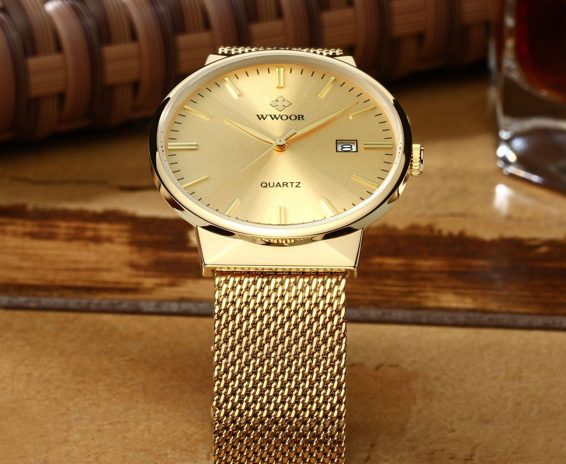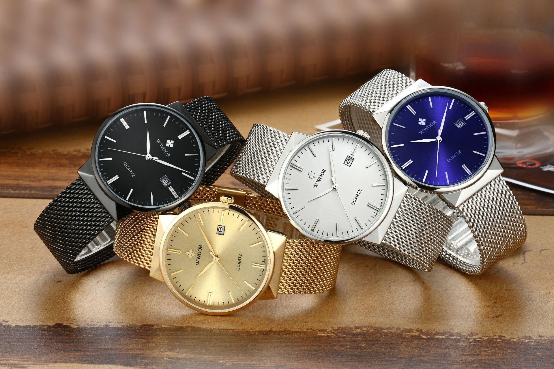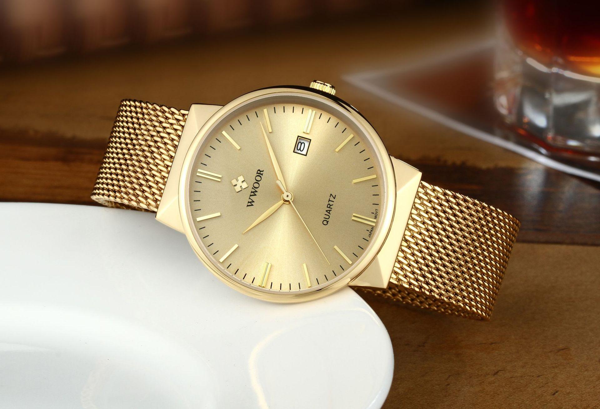Wdoor/Grip Love 8826 Reloj de cuarzo ultrafino, resistente al agua, con calendario y correa de malla sencilla, reloj de moda