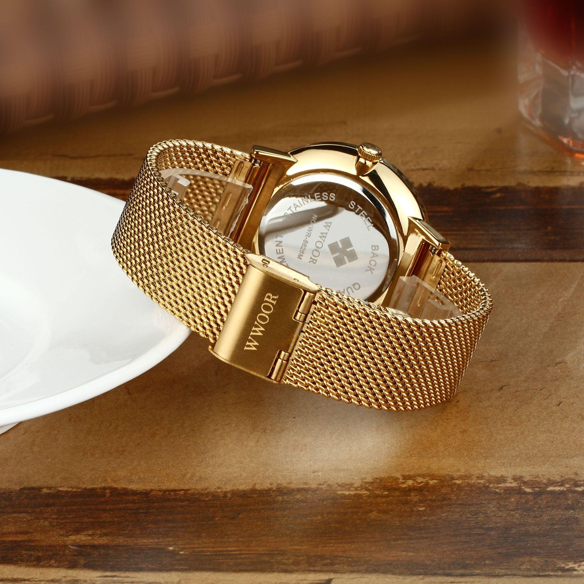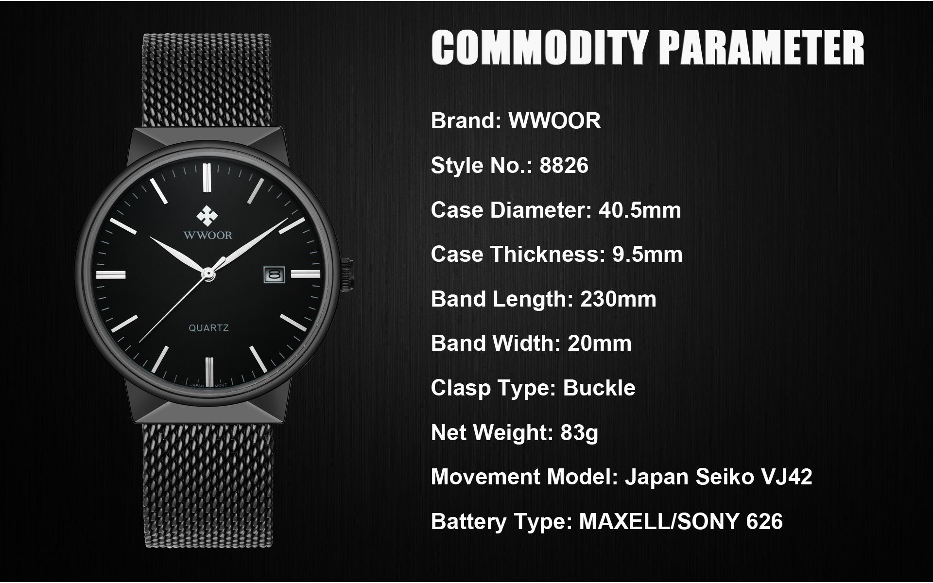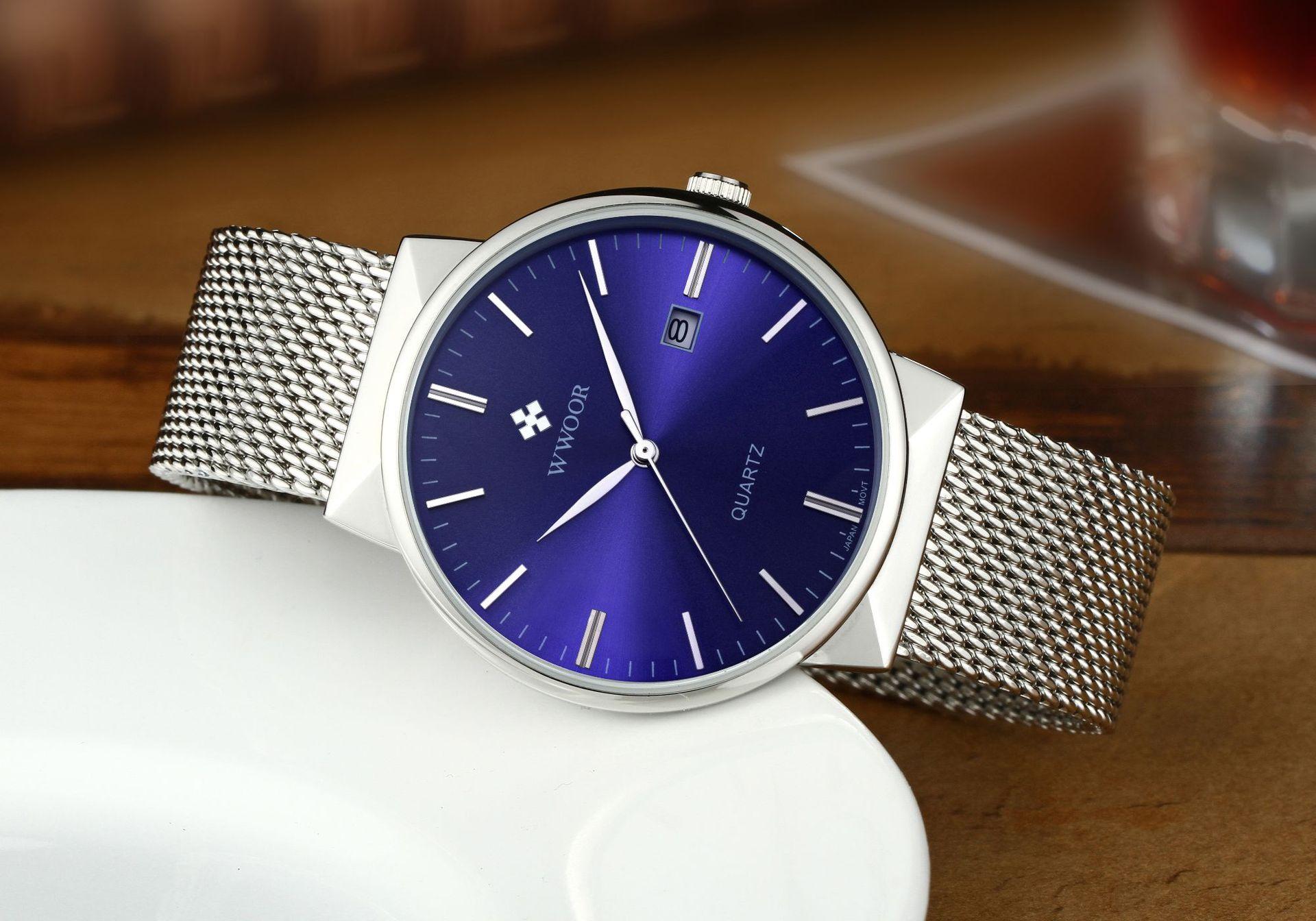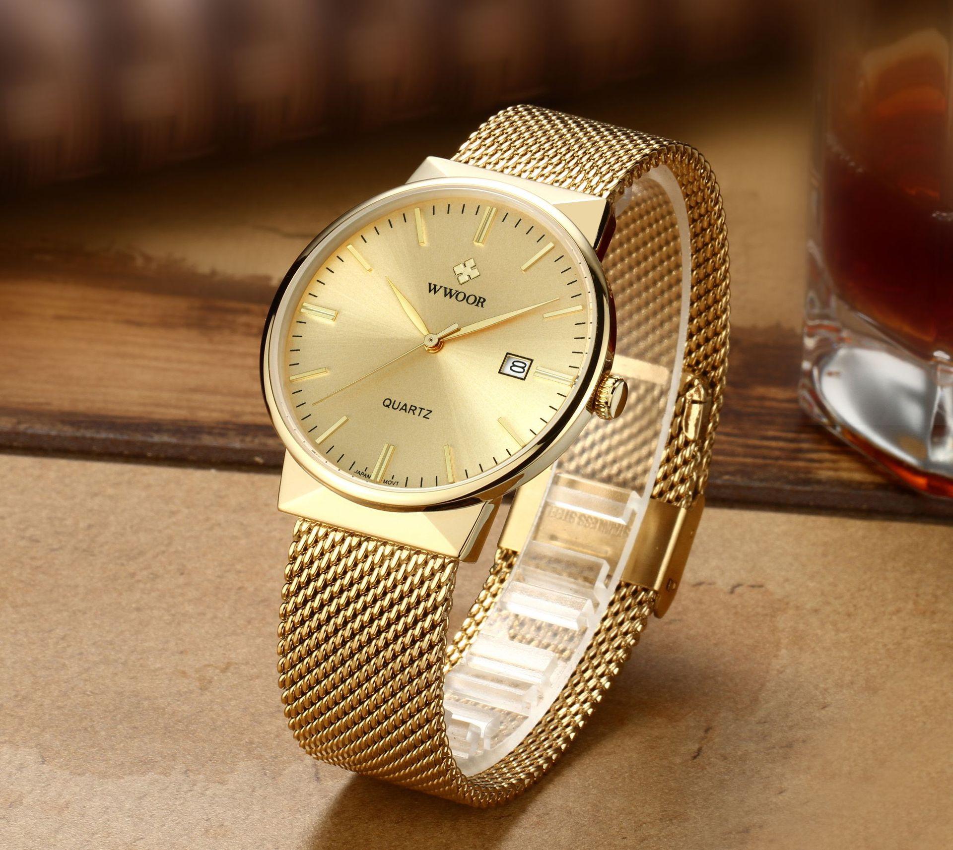 Wdoor/Grip Love 8826 Reloj de cuarzo ultrafino, resistente al agua, con calendario y correa de malla sencilla, reloj de moda