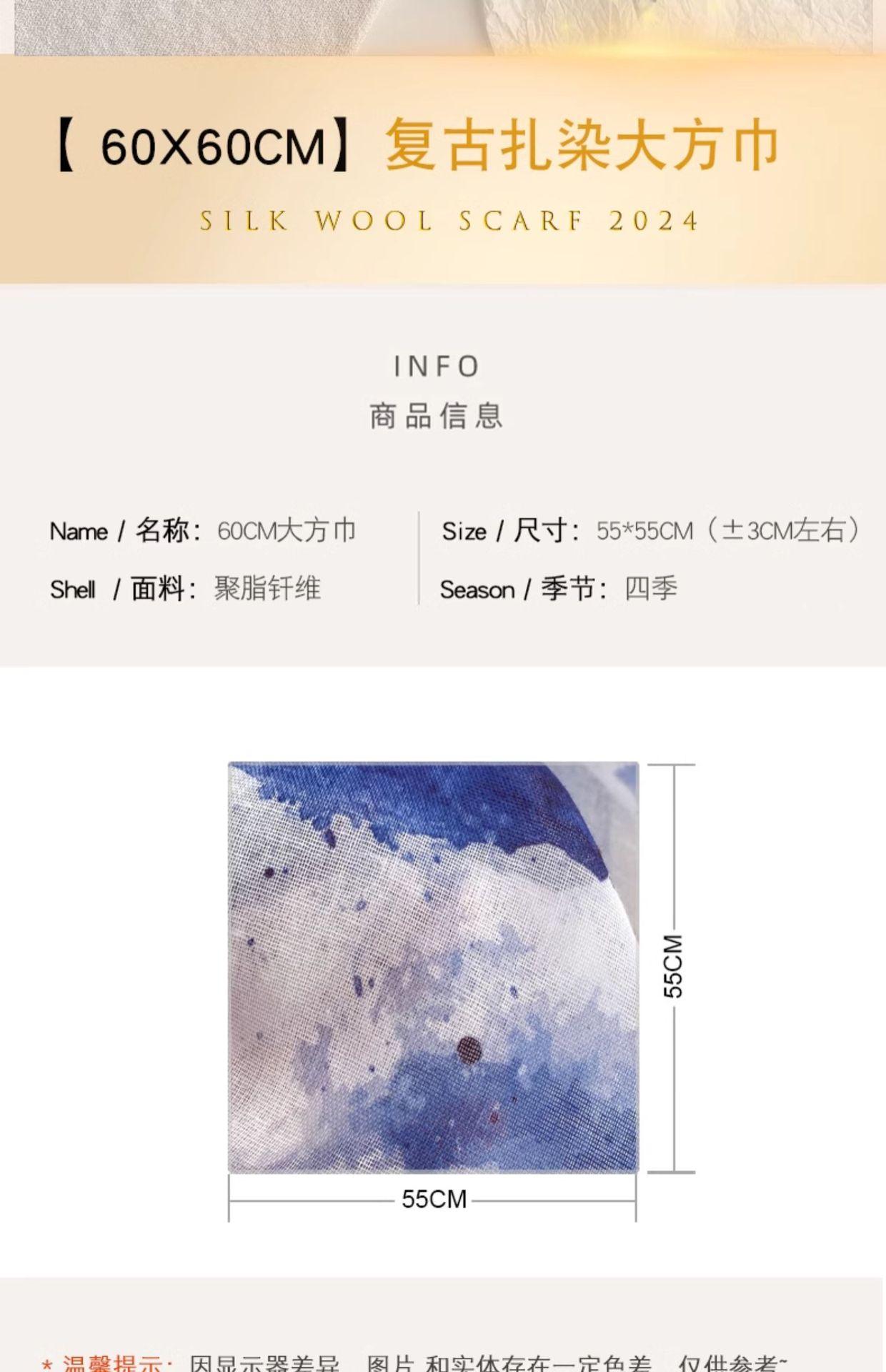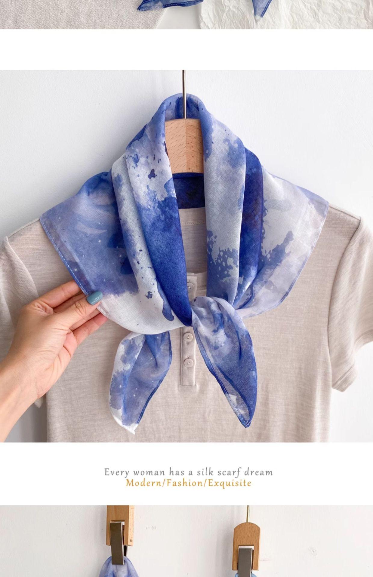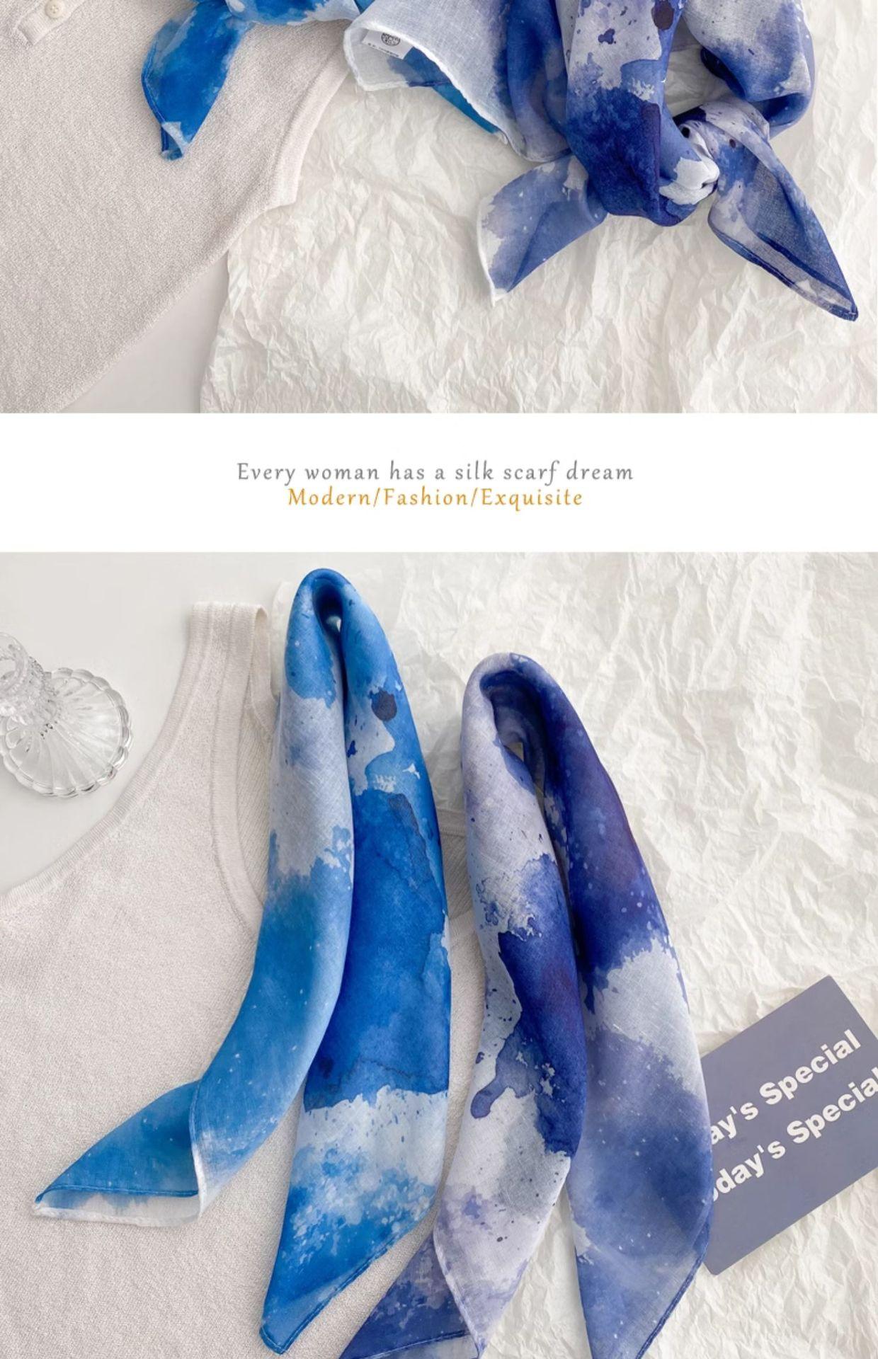 Pañuelo Cuadrado Pequeño Azul Pañuelo de Seda Pañuelo Triangular para Mujer Bufanda Protectora para el Cuello Pañuelo Tie-Dye de Yunnan Pañuelo Decorativo Pañuelo Delgado