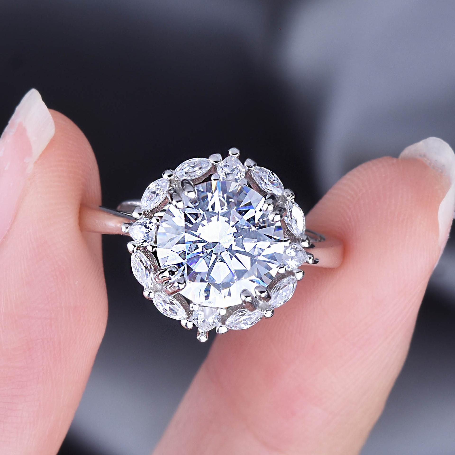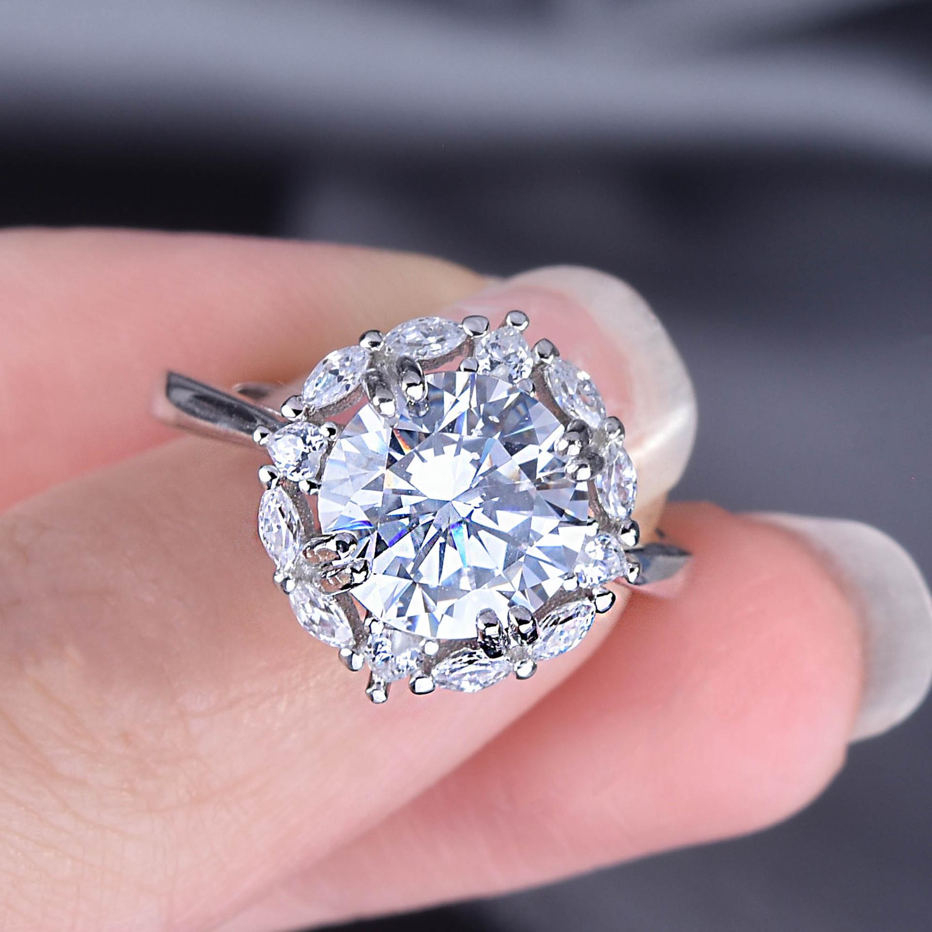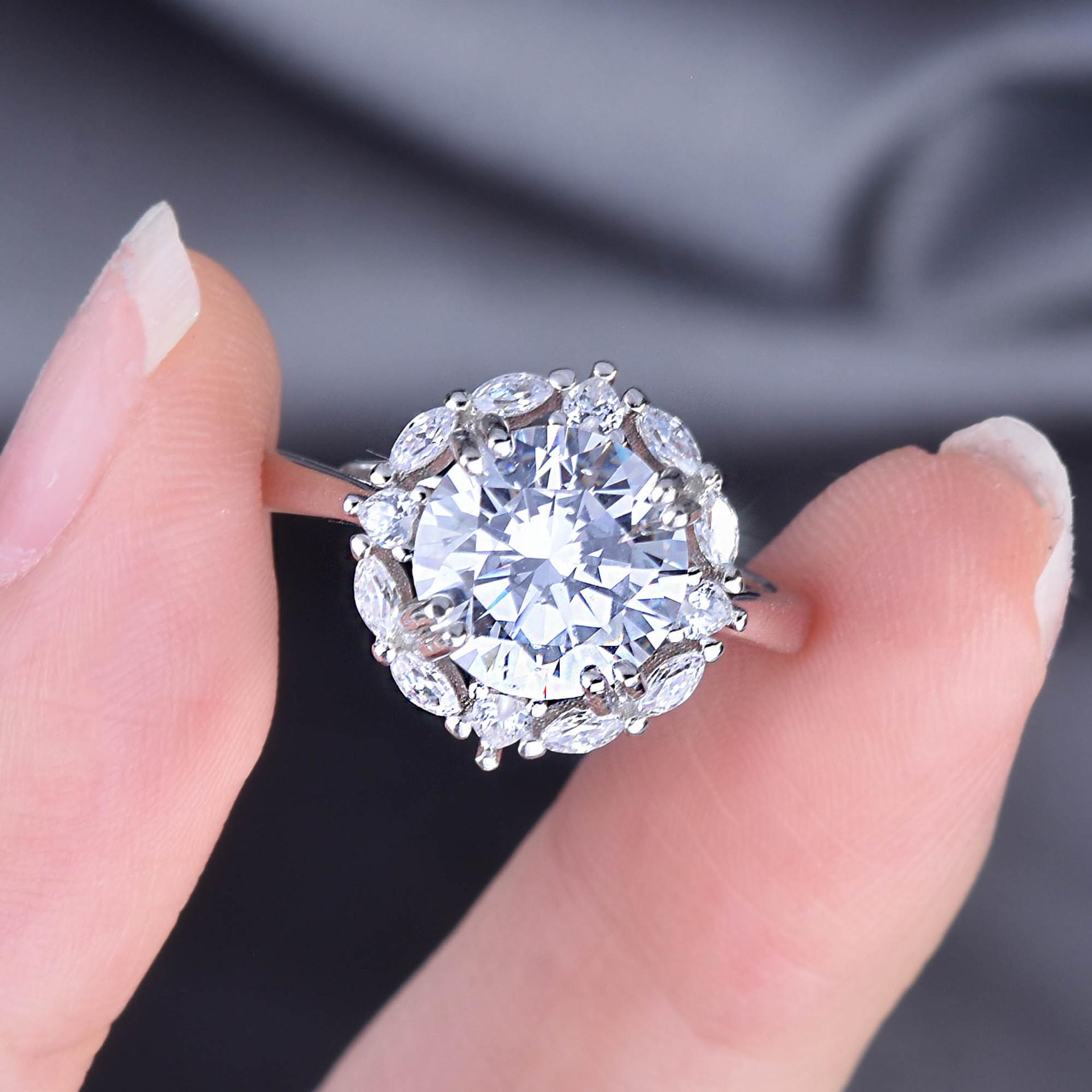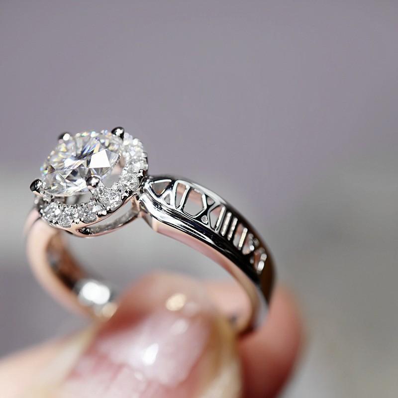 Anillo de boda sencillo de seis garras y 1 quilate con imitación de moissanita de Little Red Riding Book, con ocho corazones y ocho flechas, para mujer, con tono Shake Live Supply