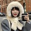 Otoño e Invierno Felpa Protección para las Orejas Sombrero Lei Feng Bufanda Integrada para Mujer Invierno Lana de Cordero Ciclismo Cortavientos Grueso Cálido Cuello