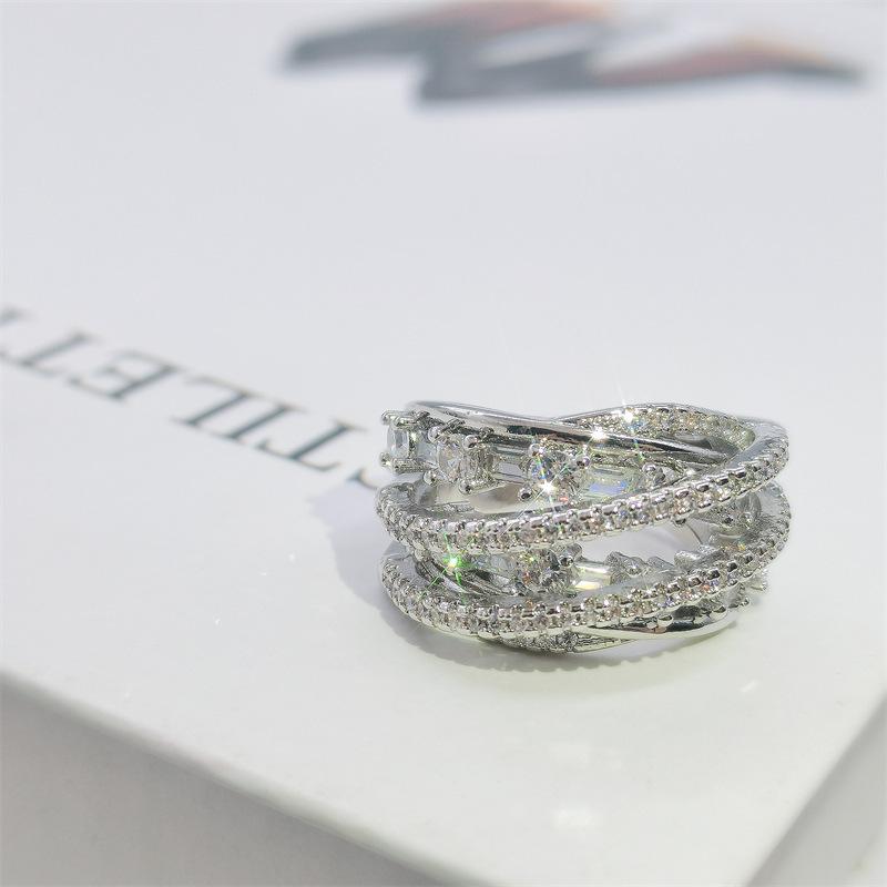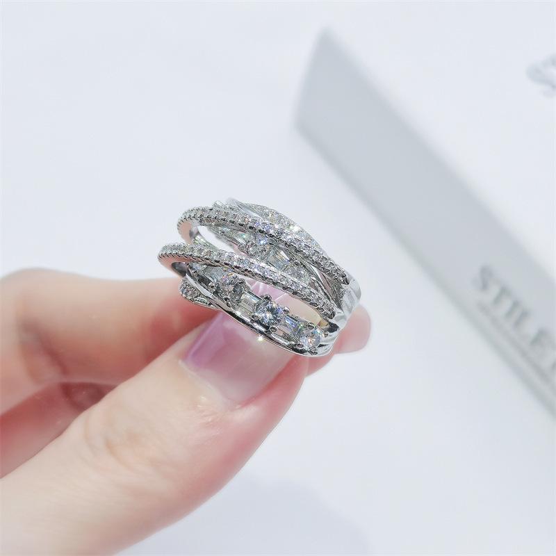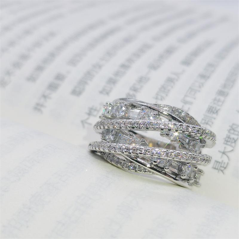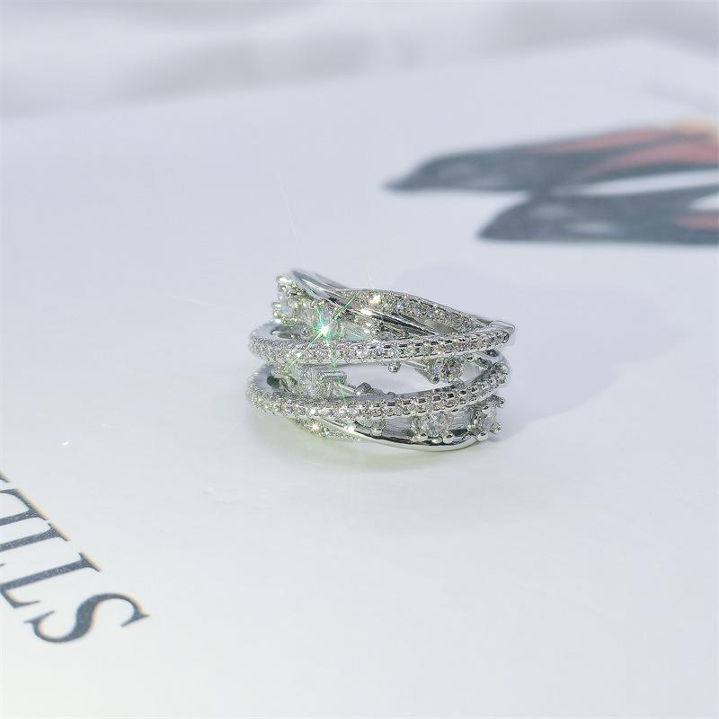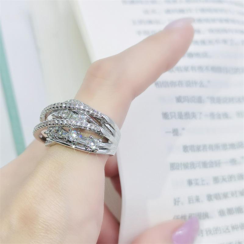 Anillo de circonita multicapa de lujo, ligero y de alta calidad, elegante, a la moda, con apertura para todo tipo de combinaciones, ajustable para el dedo índice.