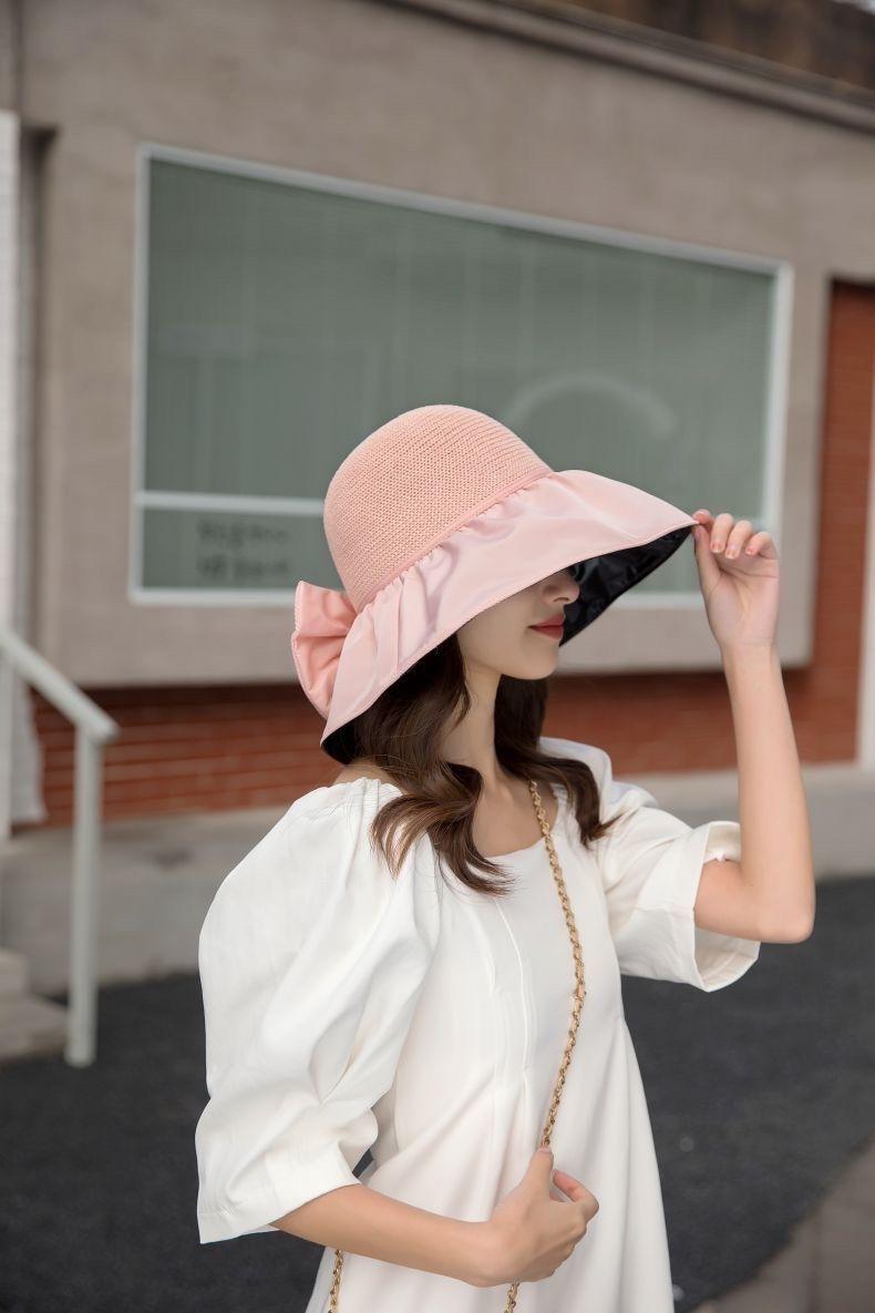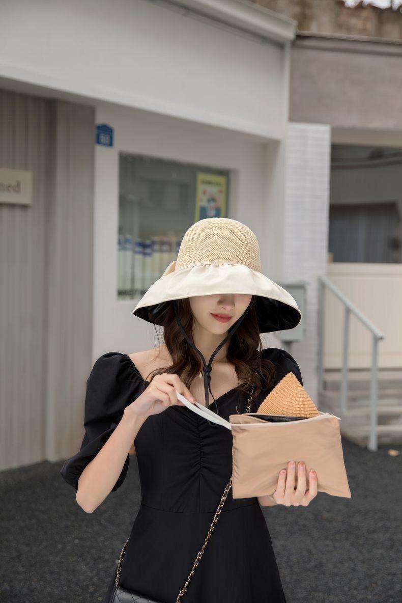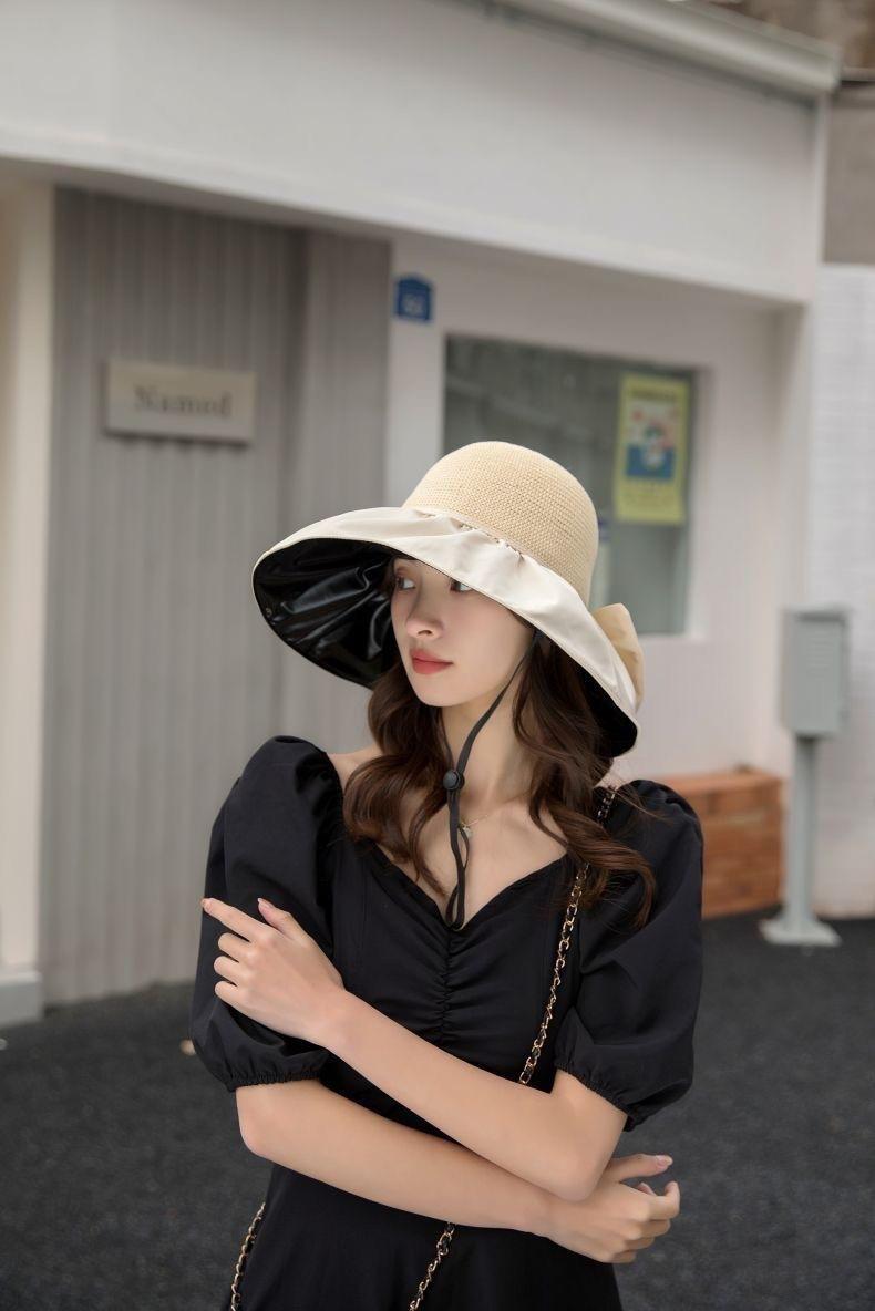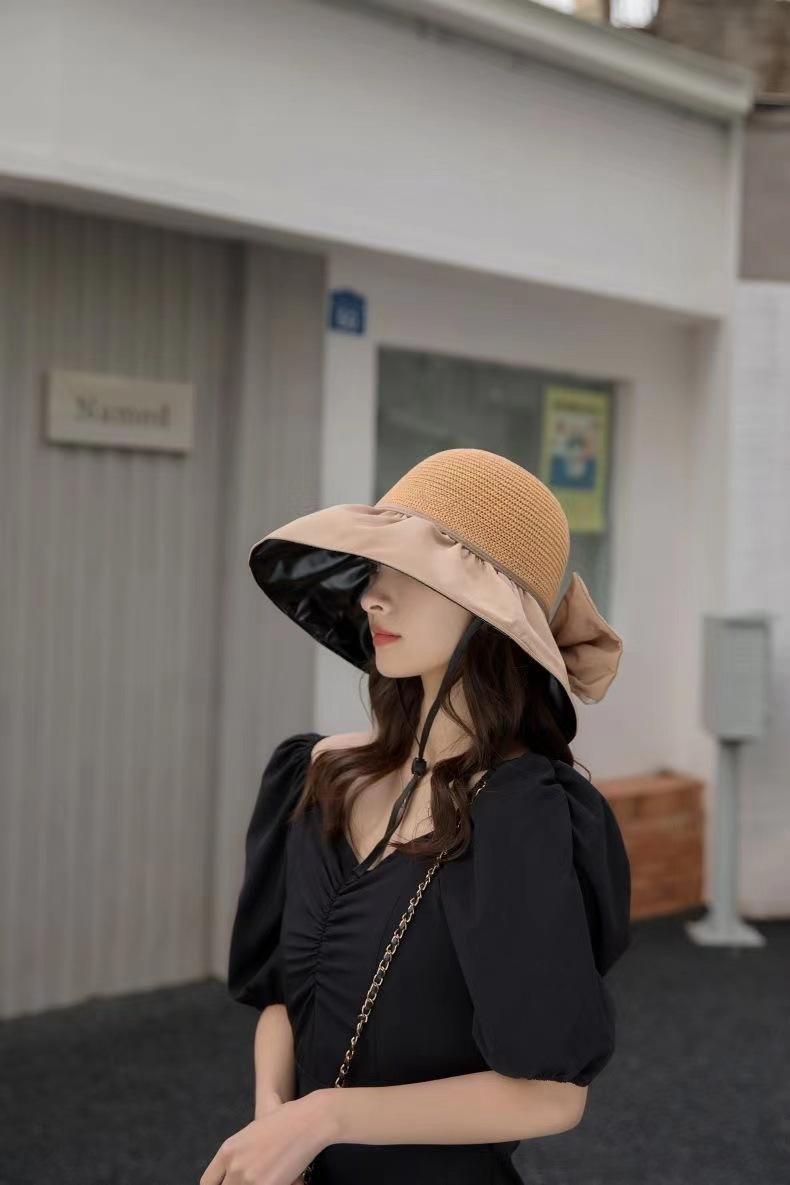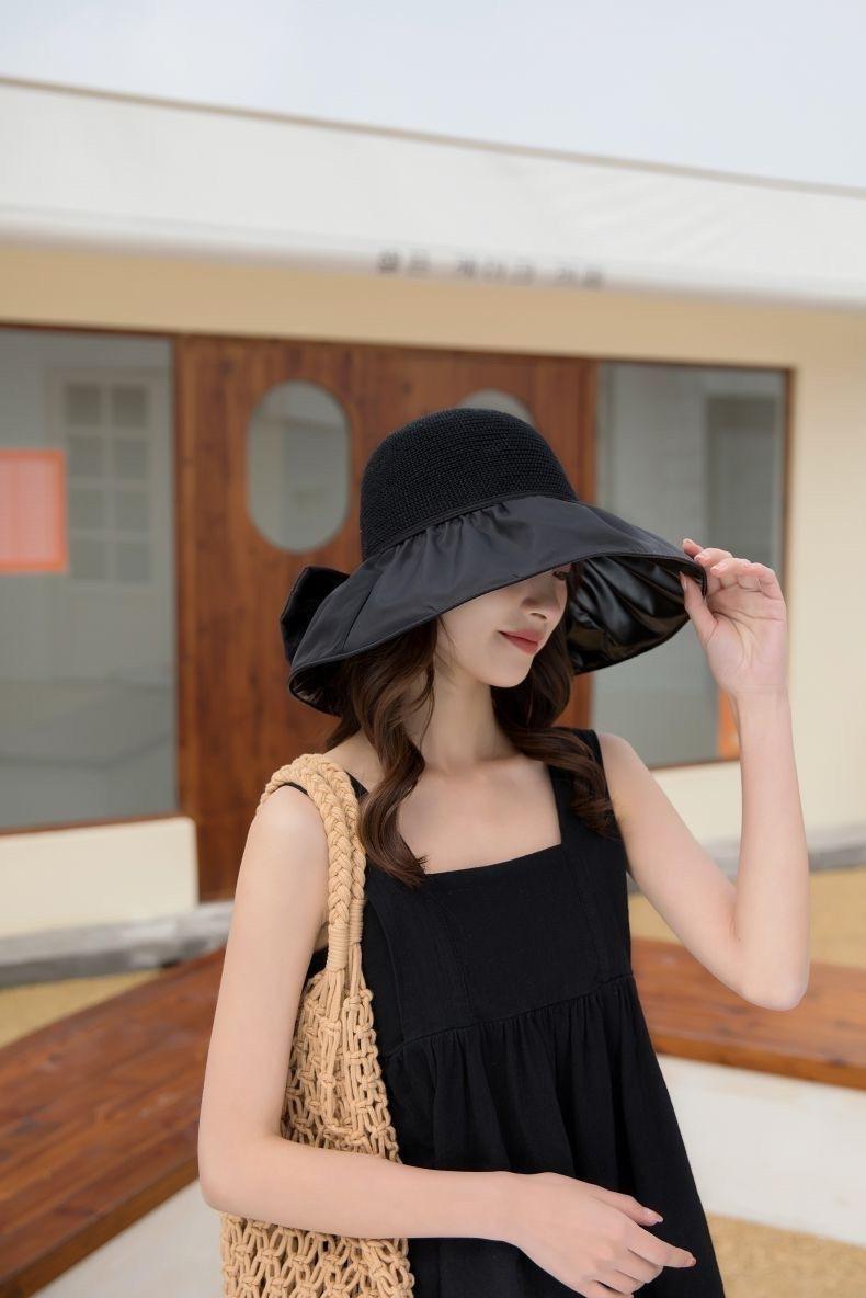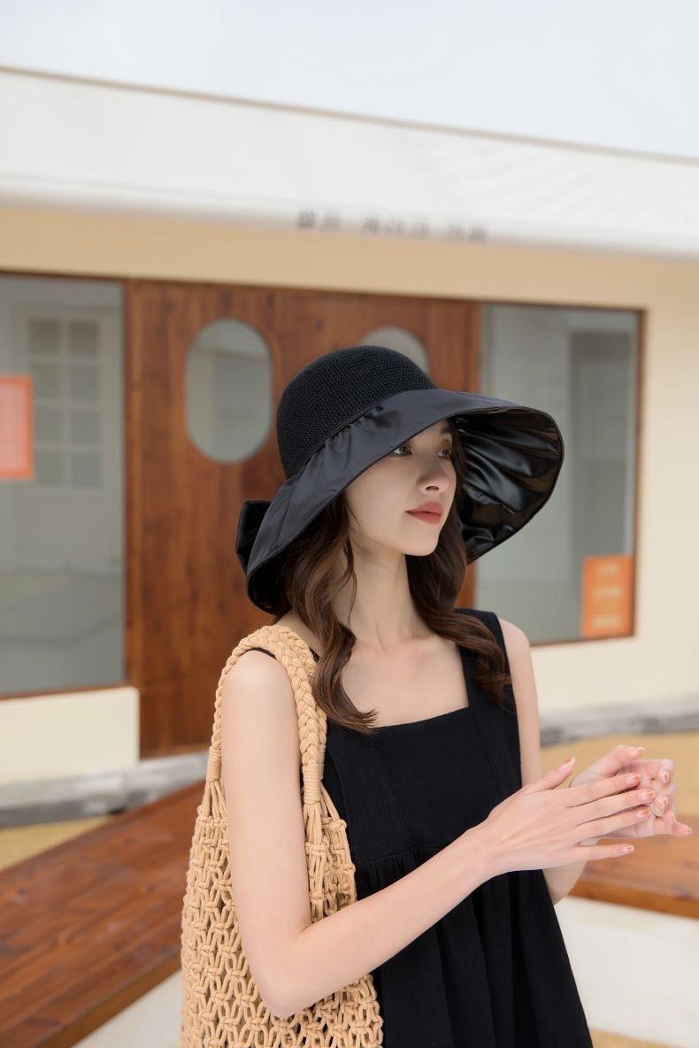 Sombrero de verano para mujer, sombrero rojo de red para el sol, parasol coreano, sombrero de pescador de ala grande de goma negra, suministro puntual.