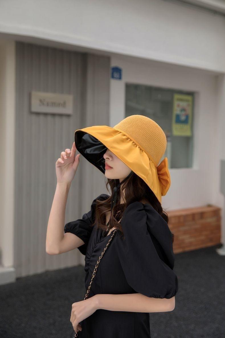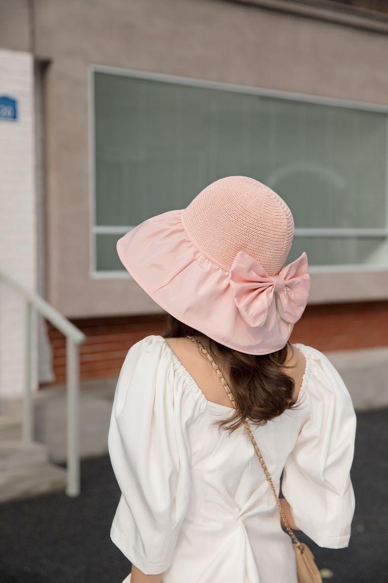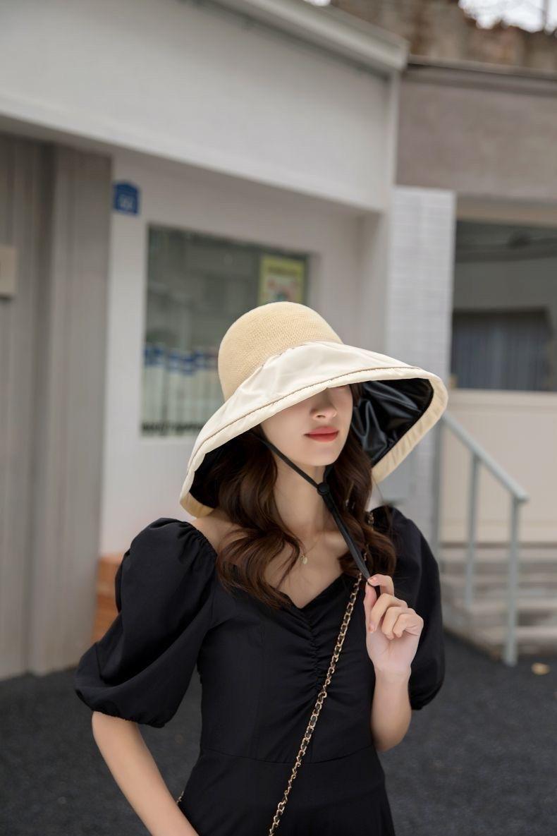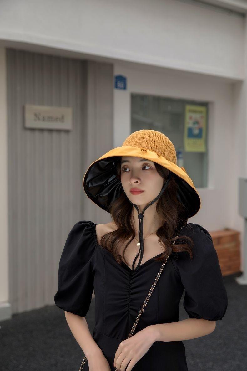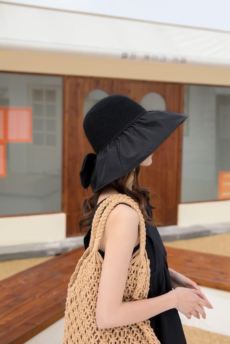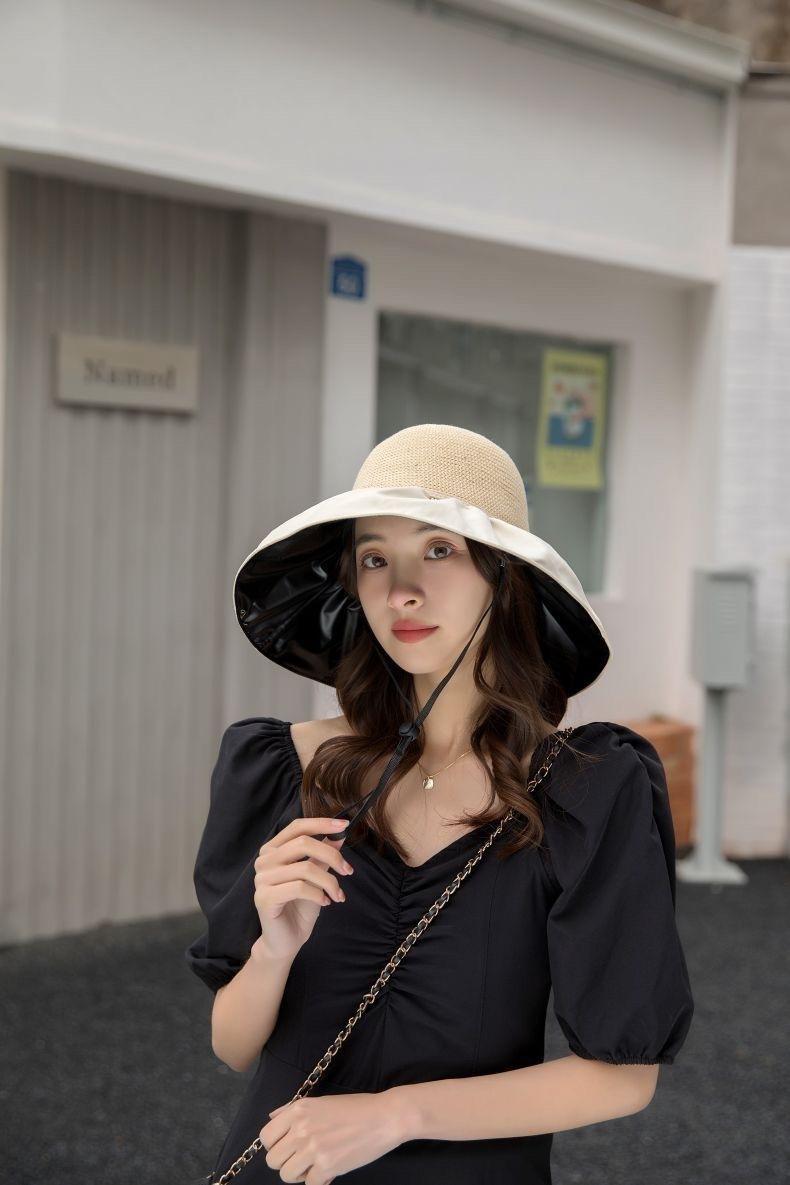 Sombrero de verano para mujer, sombrero rojo de red para el sol, parasol coreano, sombrero de pescador de ala grande de goma negra, suministro puntual.