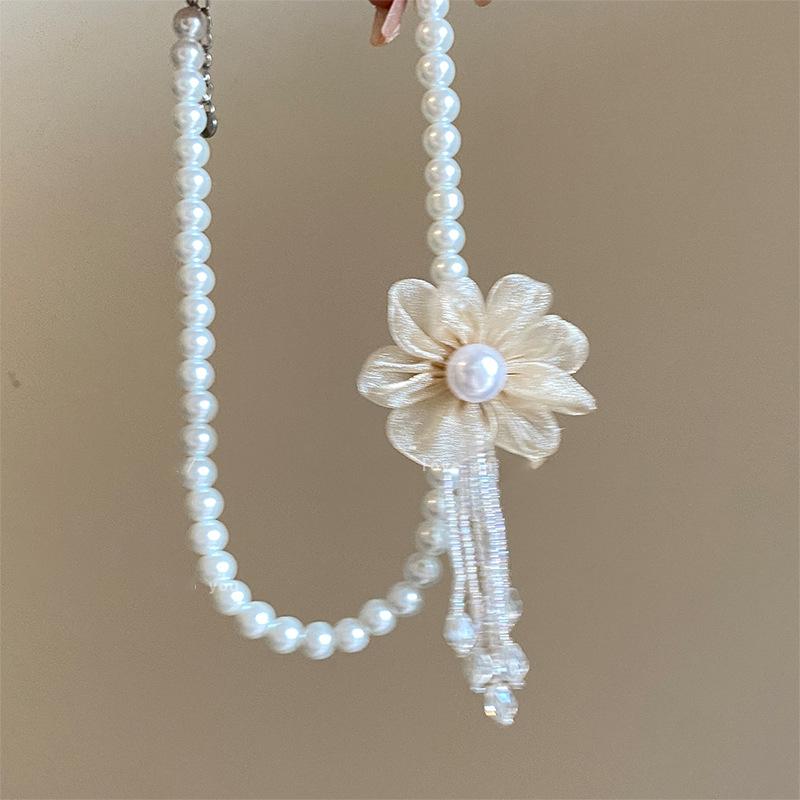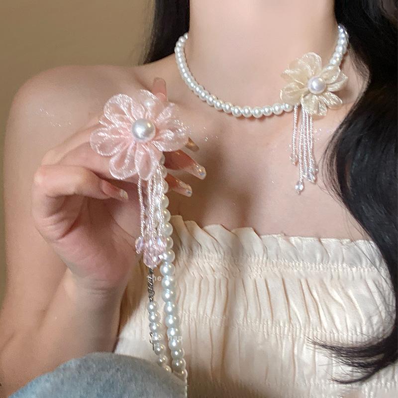 Collar romántico con delicadas flores de perla, gargantilla ligera de lujo, collar de nicho, cadena de clavícula para mujer, nuevo estilo de alta gama 2024