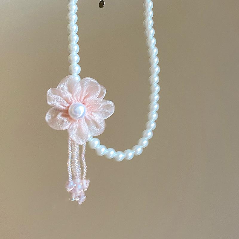 Pink Flower Pearl Neck Chain, apricot Flower Pearl Neck Chain