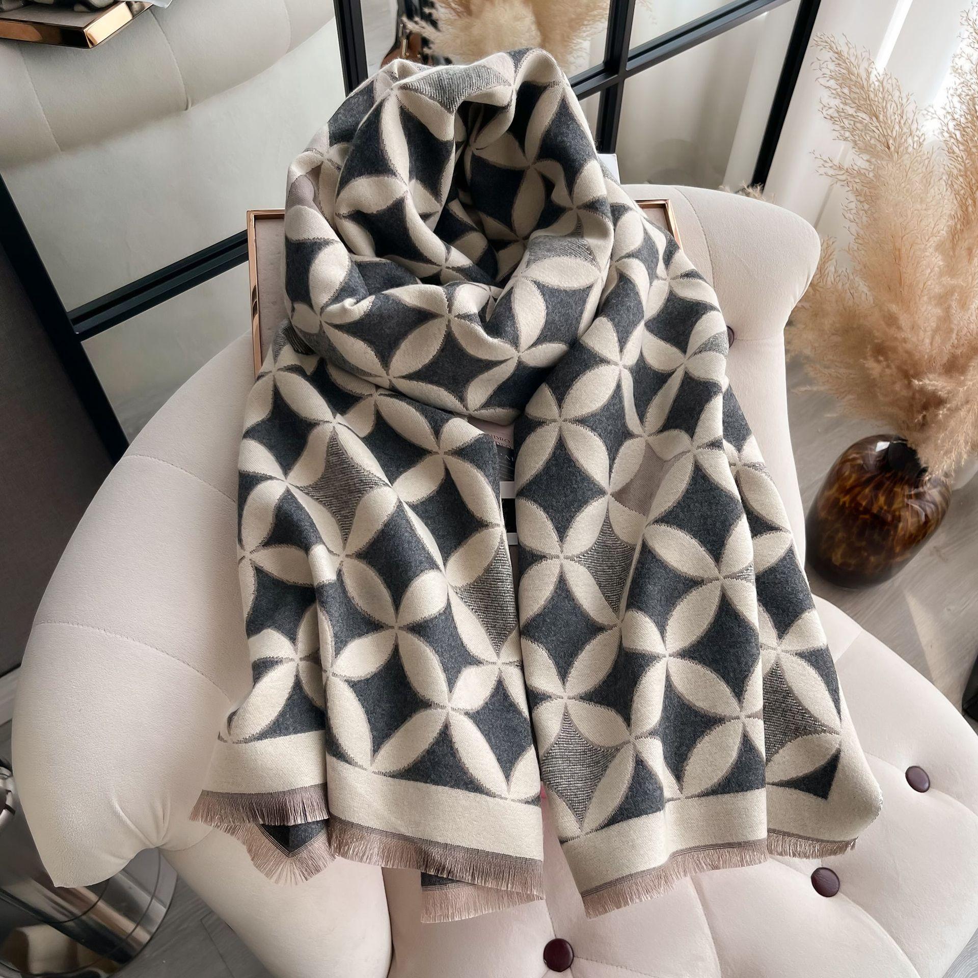 Bufanda de cachemira para mujer, estilo europeo y americano, con cuadros de diamantes, para otoño e invierno, estilo coreano, gruesa, cálida y apta para habitaciones con aire acondicionado.