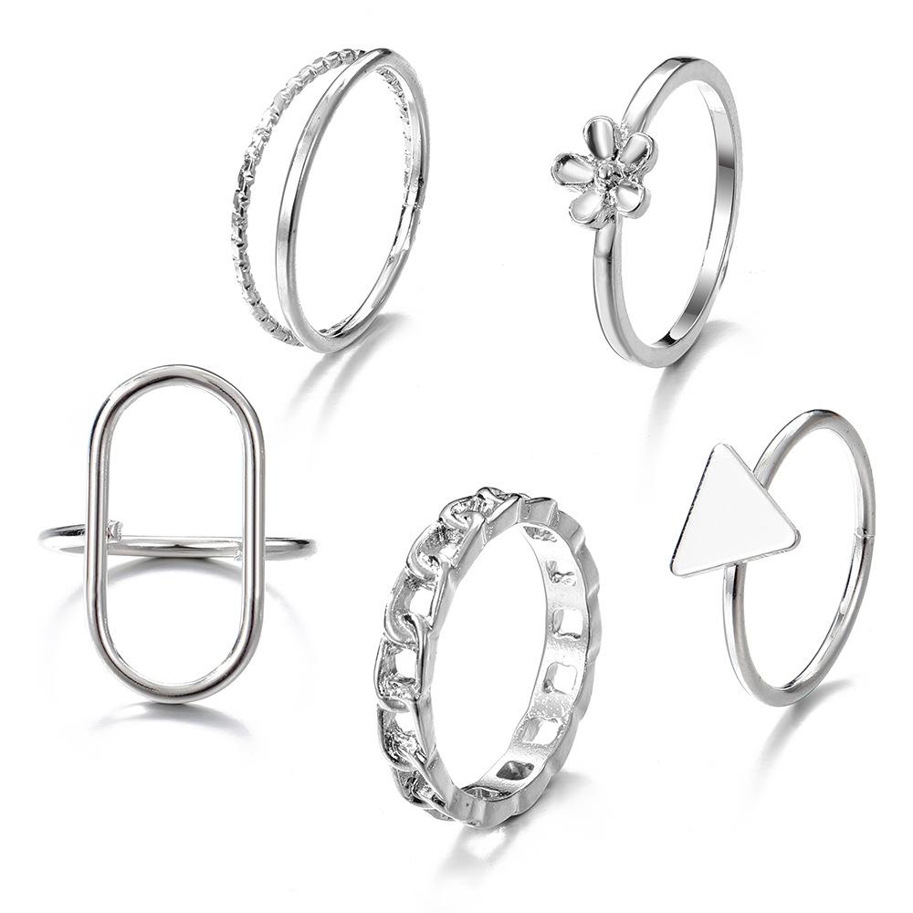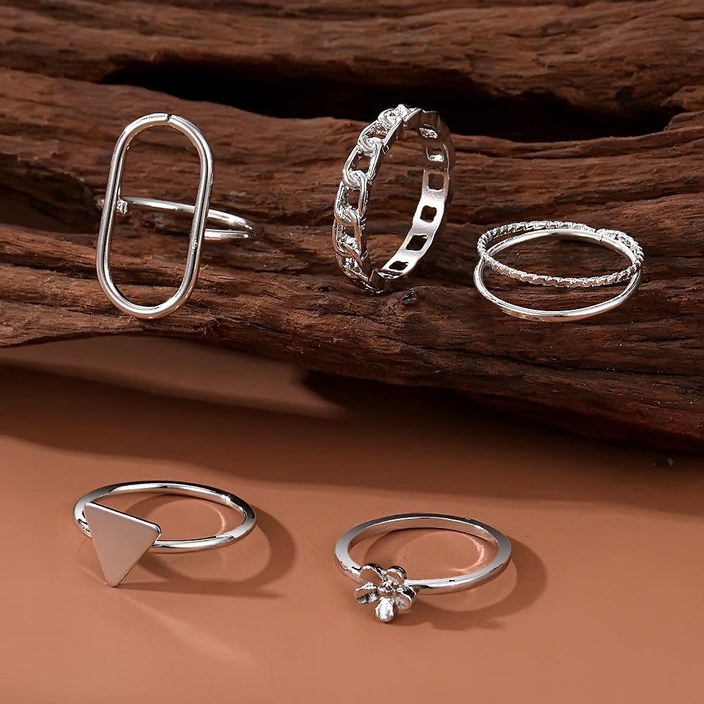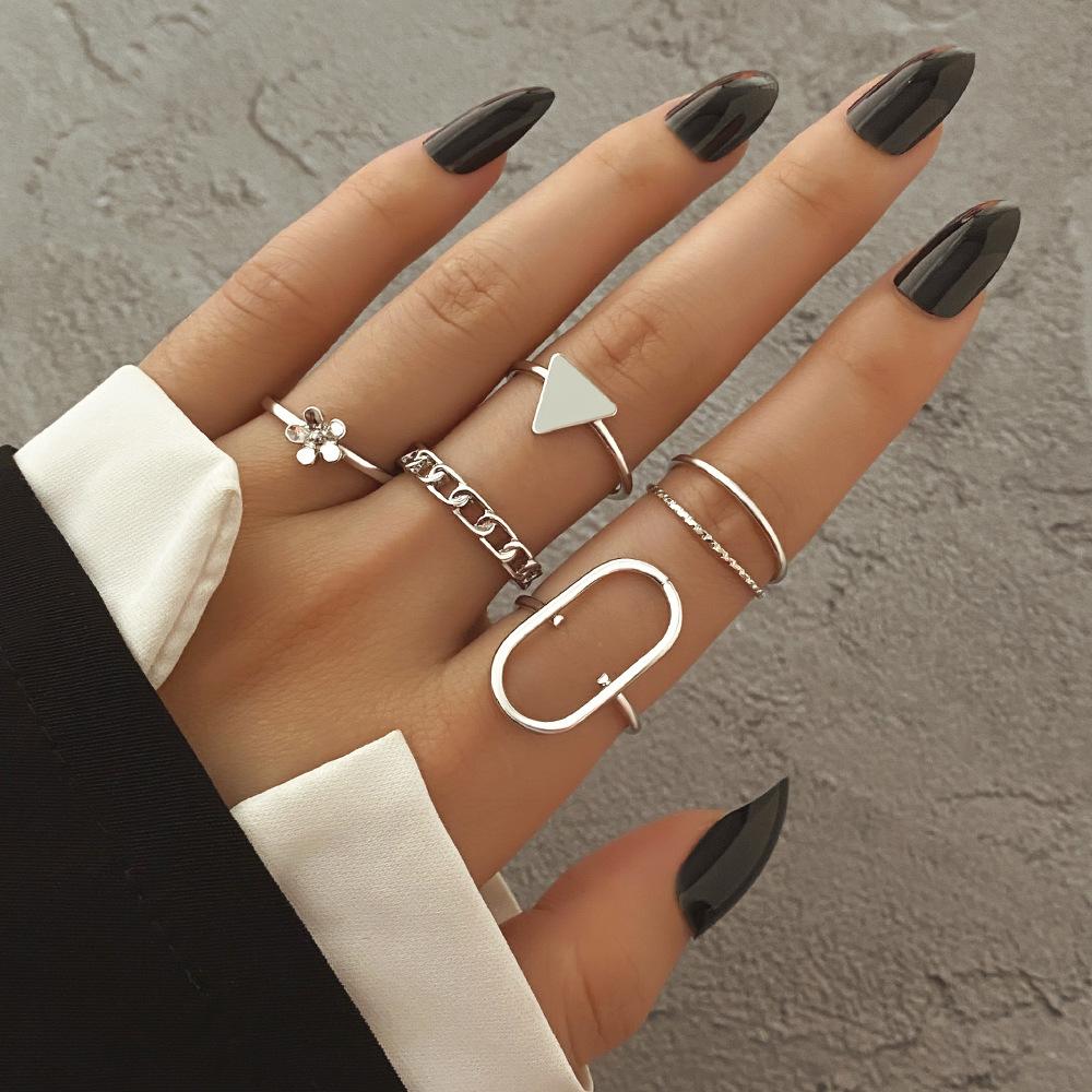 Set de 5 Anillos Triangulares con Clip de Papel Retro Combinación Cadena K Blanca Diseño Ovalado de Unión con Conservación de Color Amigable con el Medio Ambiente