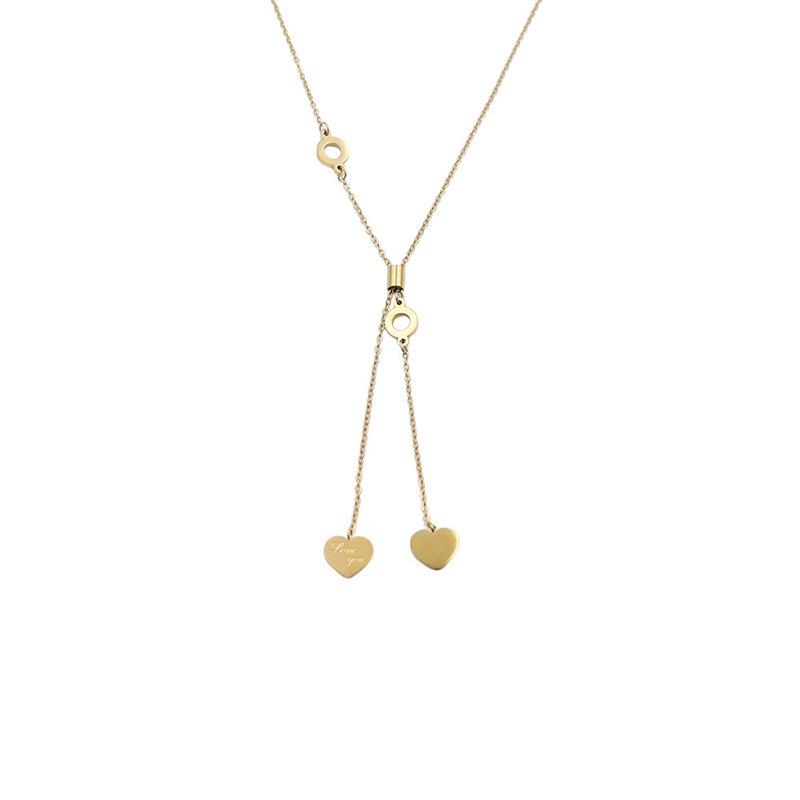 Collar de borlas dobles de amor simple y moderno para mujer, cadena de clavícula ajustable de acero de titanio que combina con todo, de alta calidad y sin color.