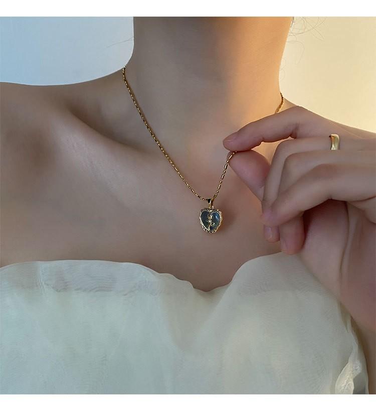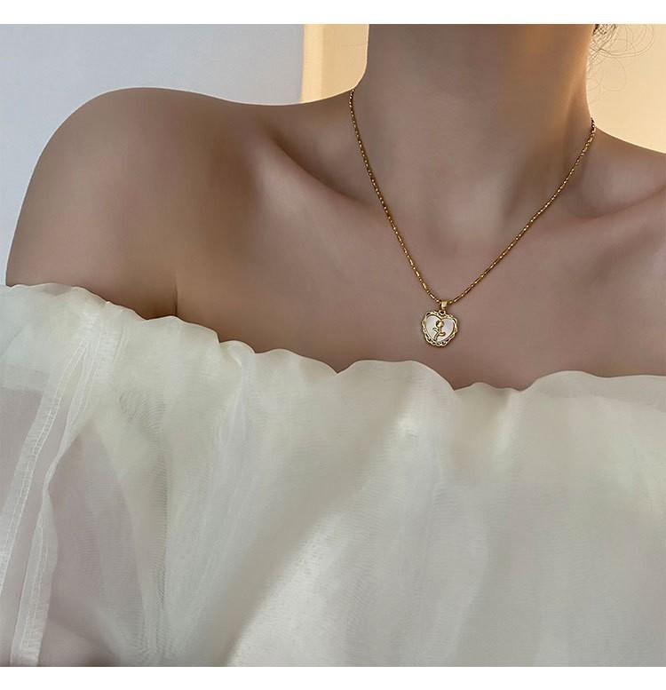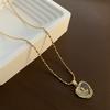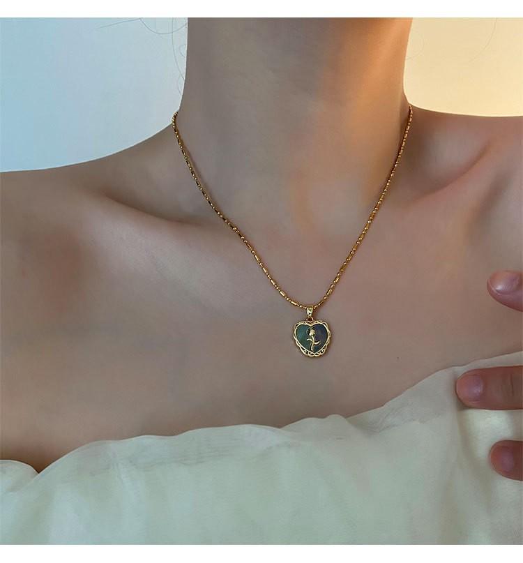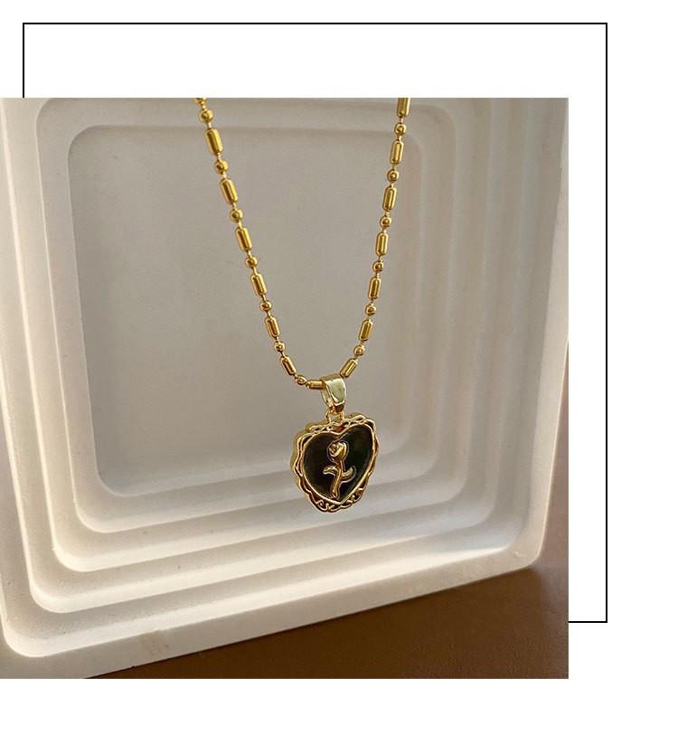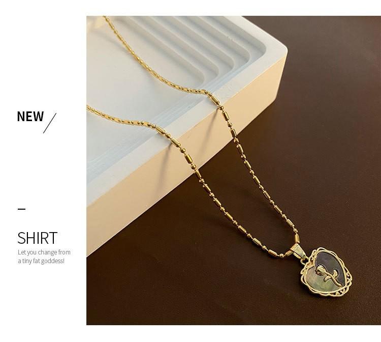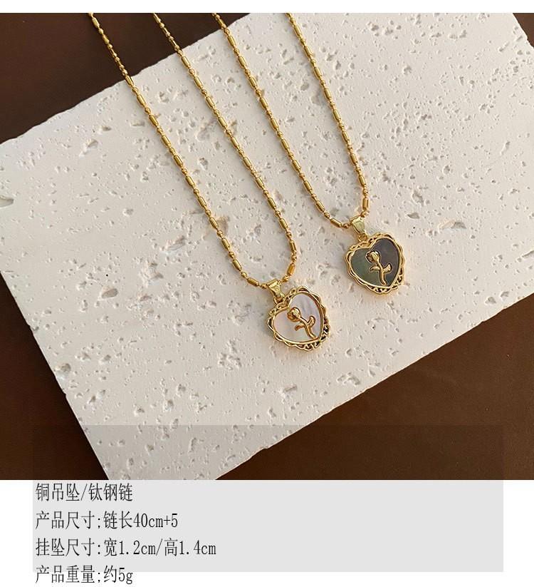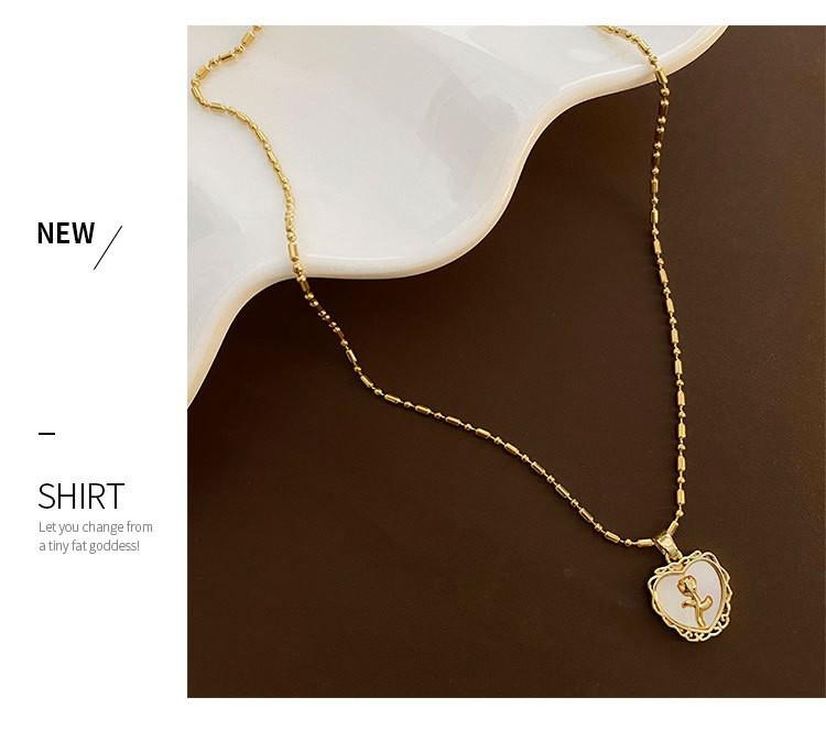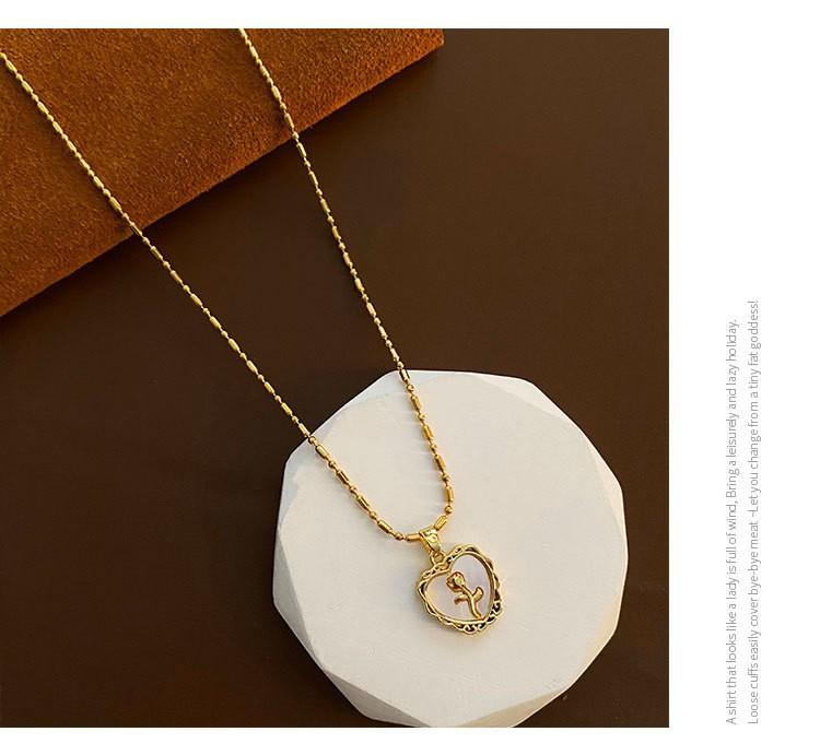 Collar de Concha de Abalón con Colgante de Cobre en Forma de Corazón con Flor Rosa del Amor, Cadena para Clavícula para Mujer, Joyería de Nicho Versátil