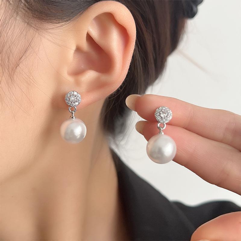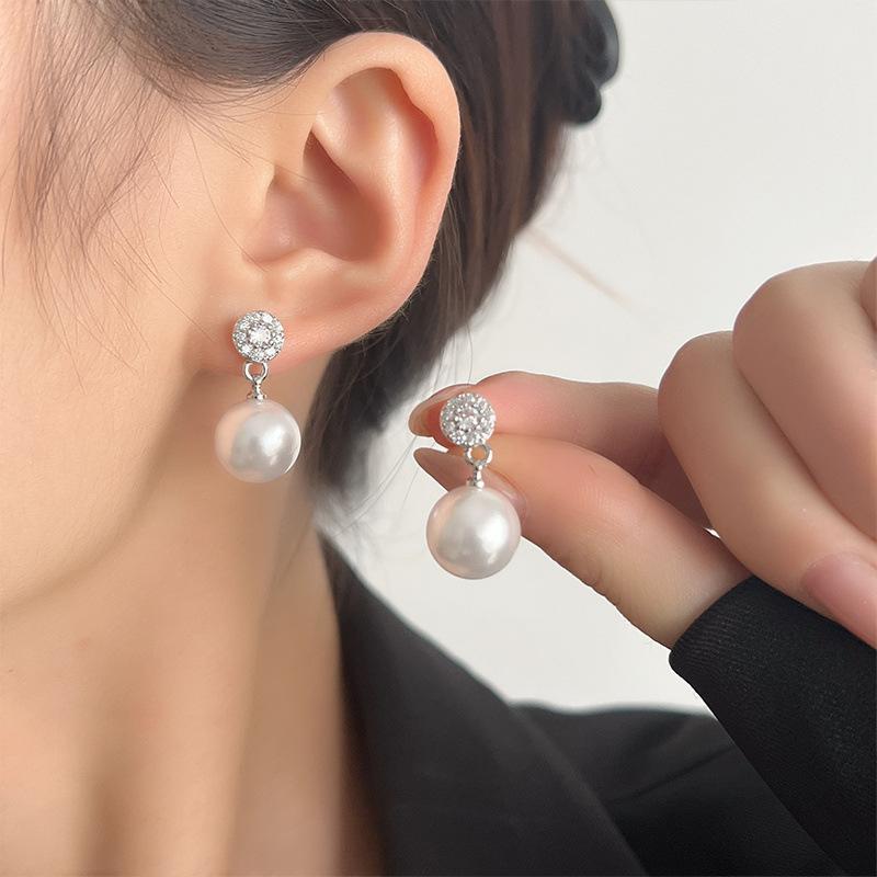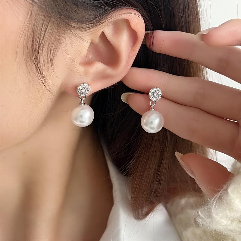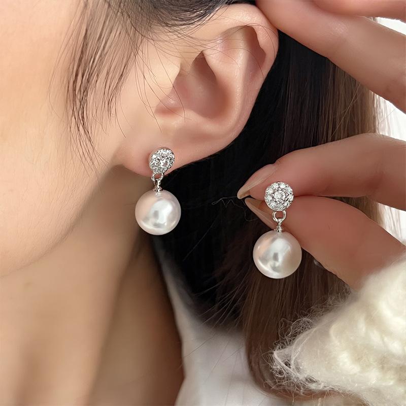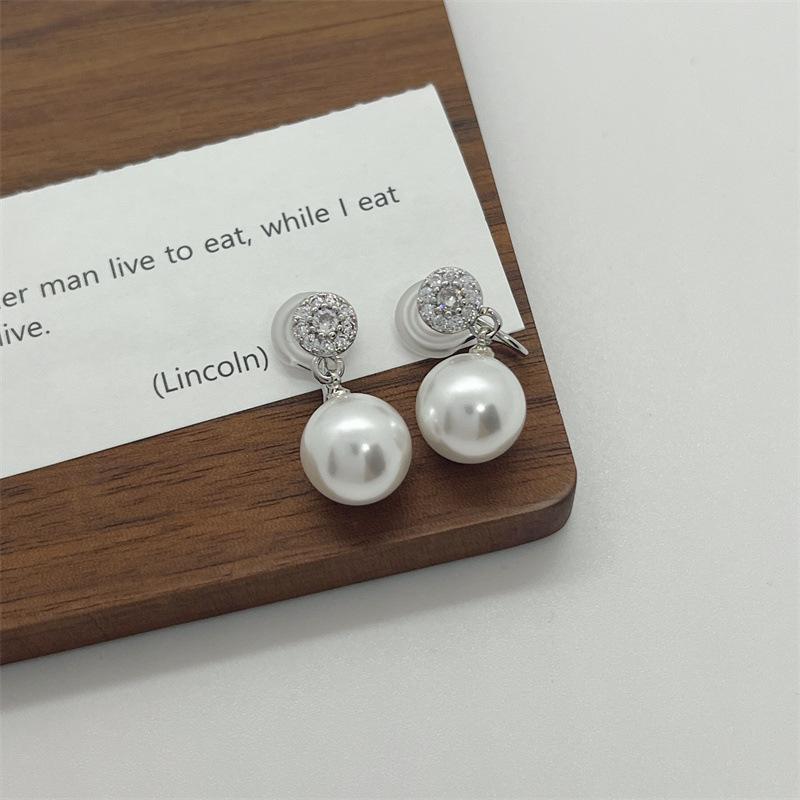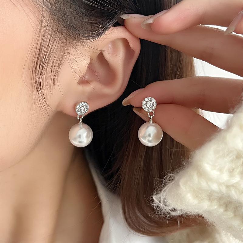 Pendientes de perlas de diamantes de lujo, ligeros y de alta gama, exquisitos y pequeños, a la moda, con diseño de espiral antimosquitos, sin orejas.
