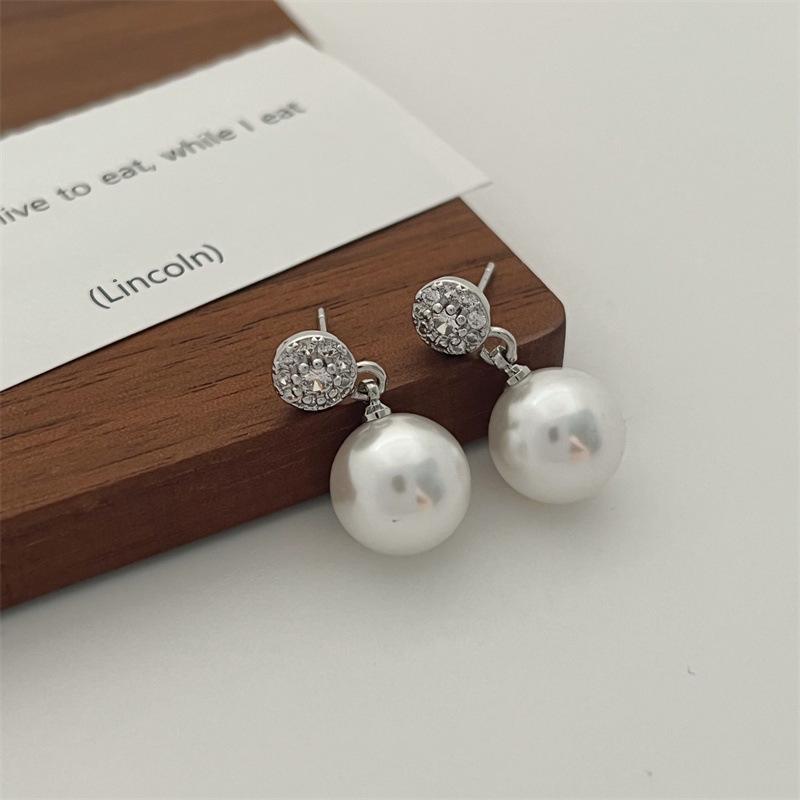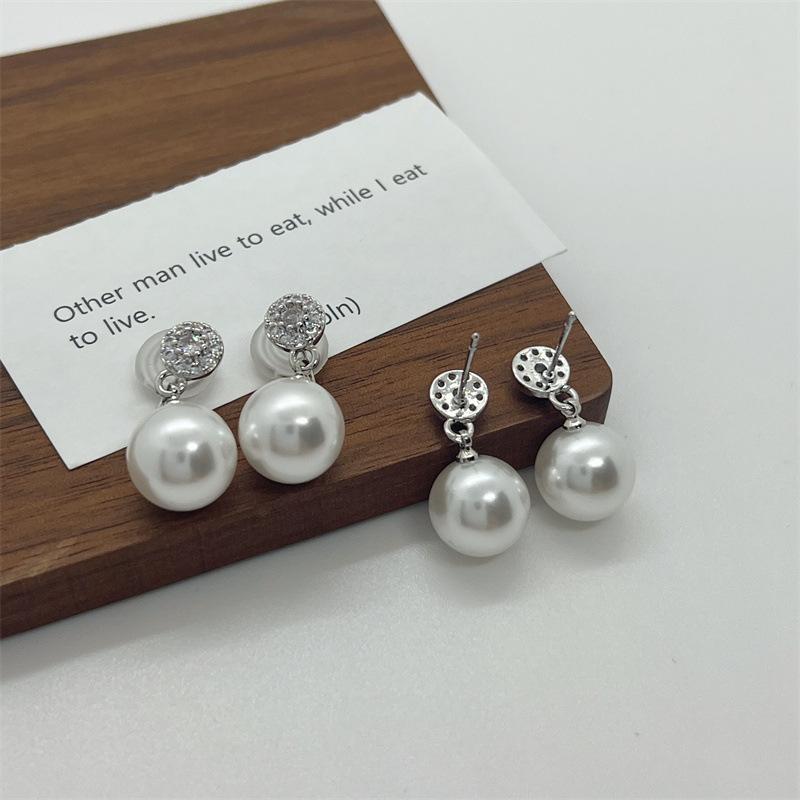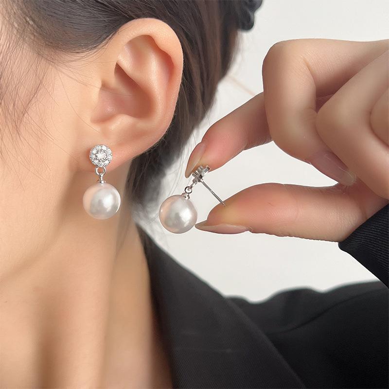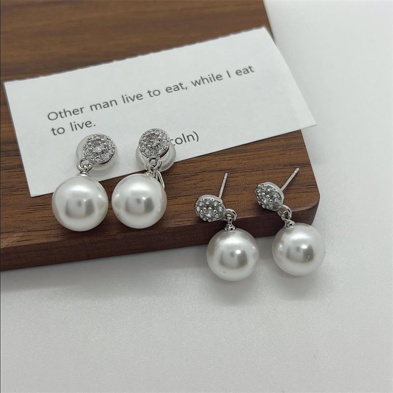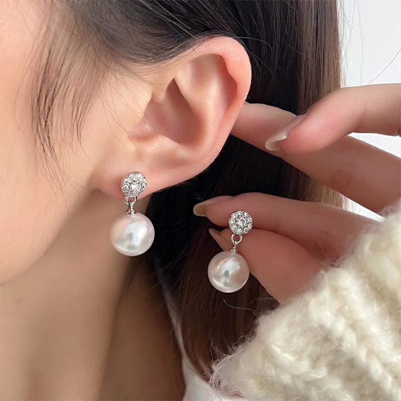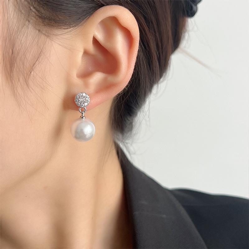 Pendientes de perlas de diamantes de lujo, ligeros y de alta gama, exquisitos y pequeños, a la moda, con diseño de espiral antimosquitos, sin orejas.