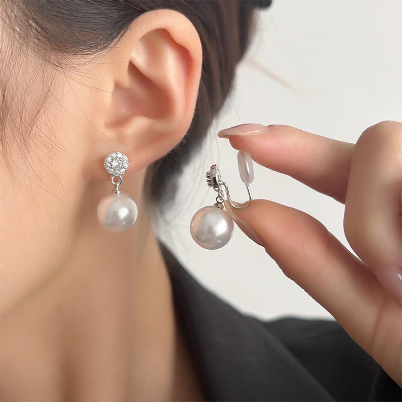 Ear Pin-pearl earrings, Ear clip-pearl earrings