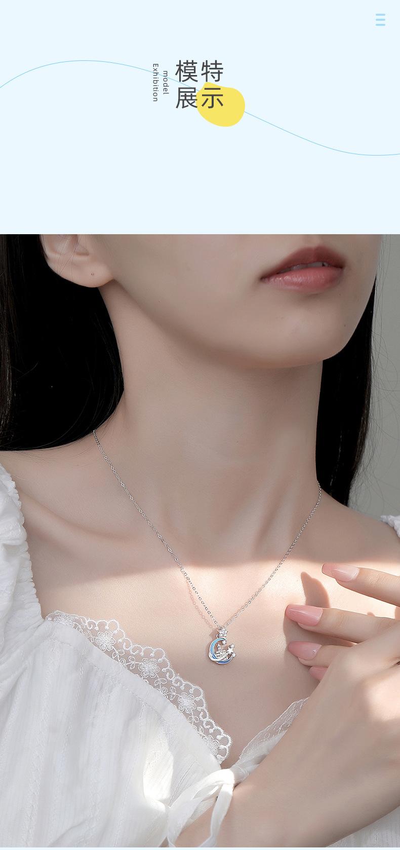 Collar original nuevo de Xingyue Castle, de lujo, con diseño de nicho alto, de luna y estrella, de plata esterlina, al por mayor