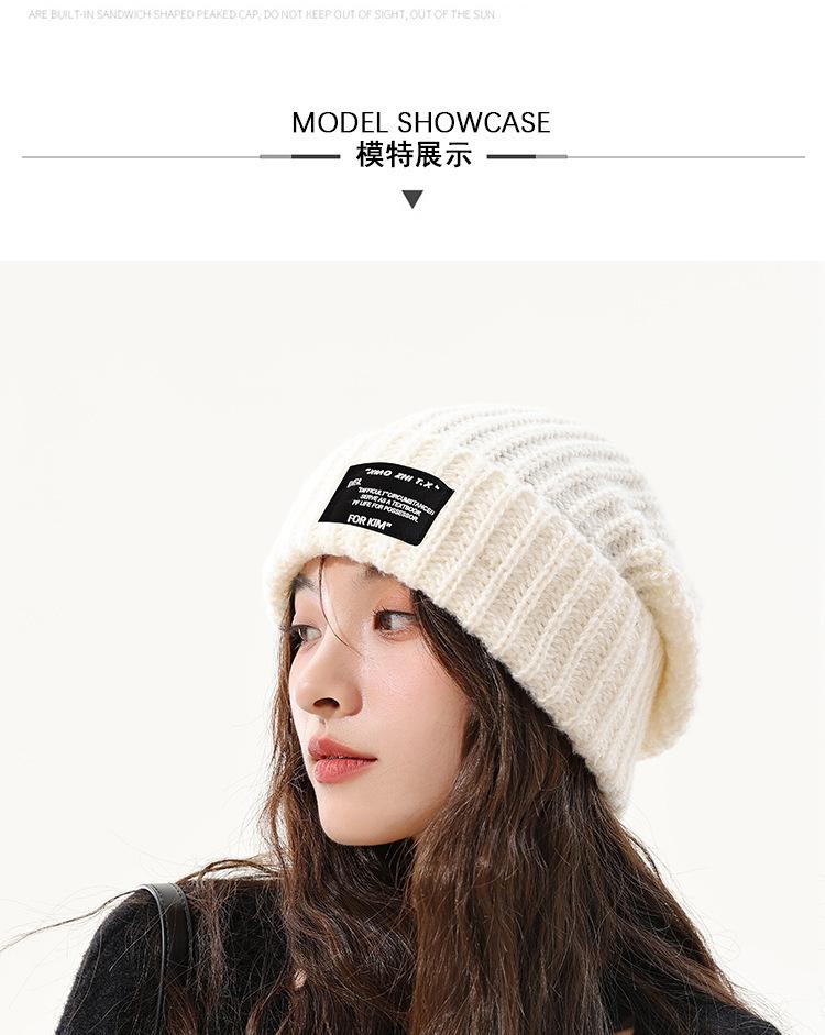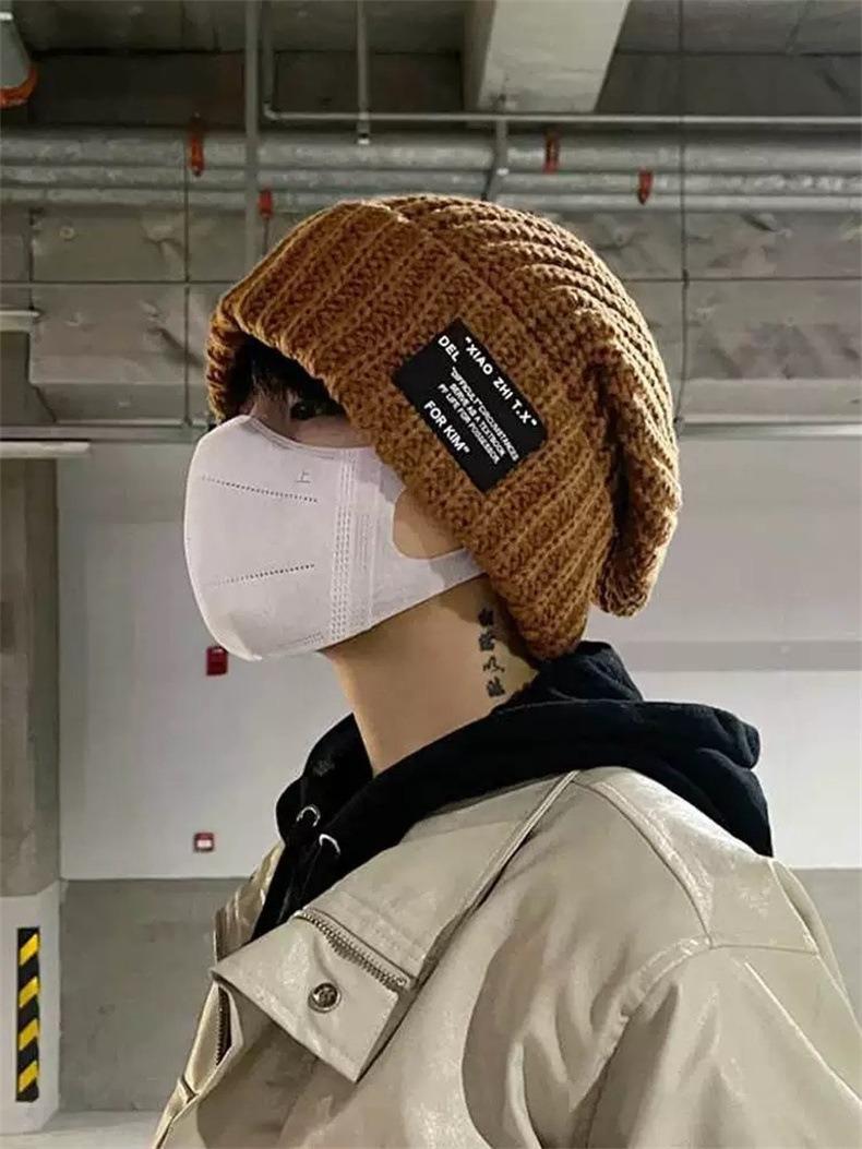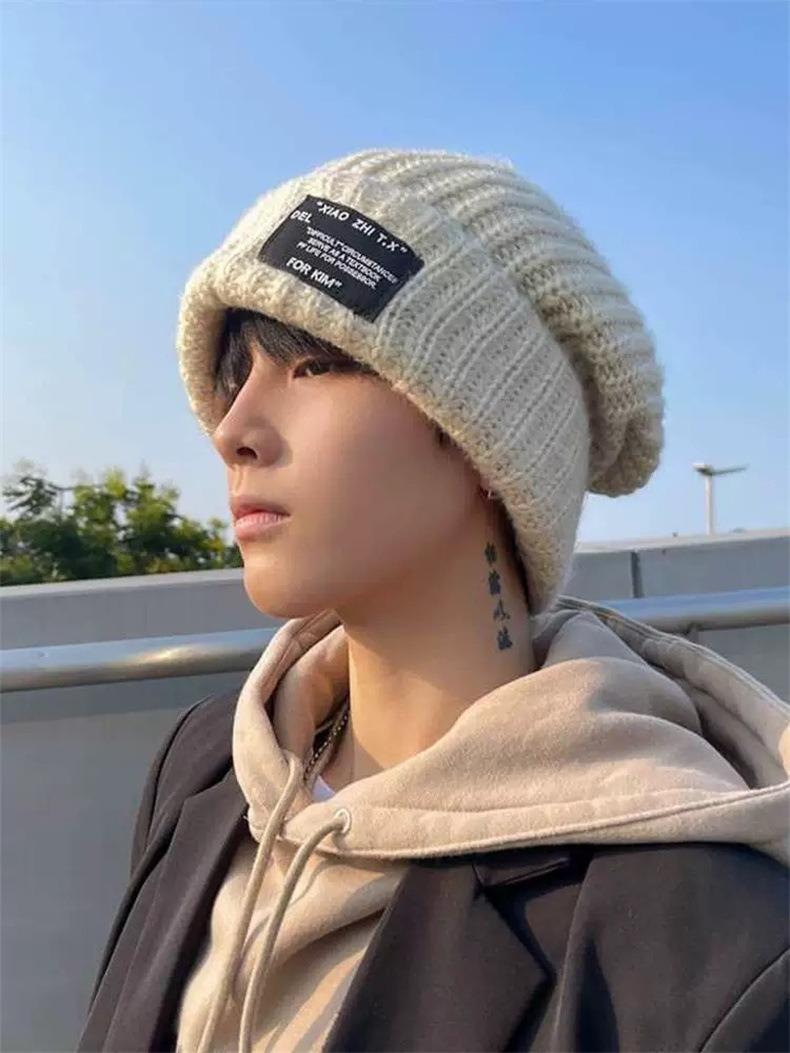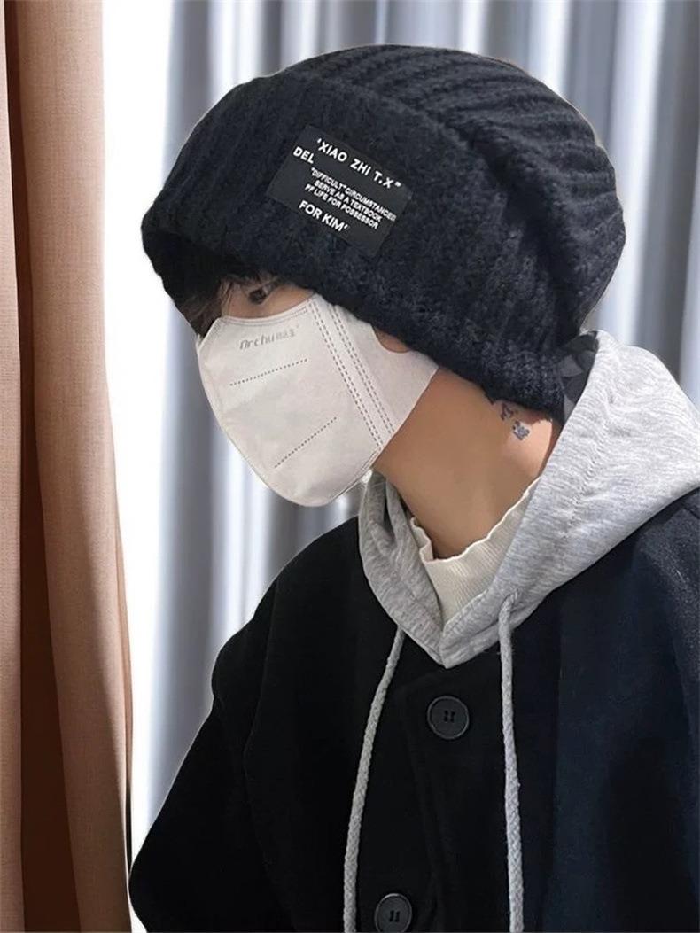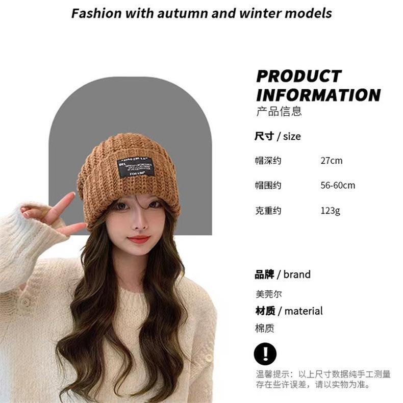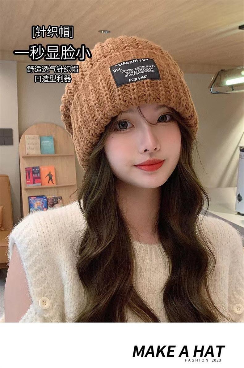 Gorro de lana estilo japonés estilo perezoso para mujer, de invierno, estilo coreano, suelto, de cara redonda, con cara grande, pequeño, de punto