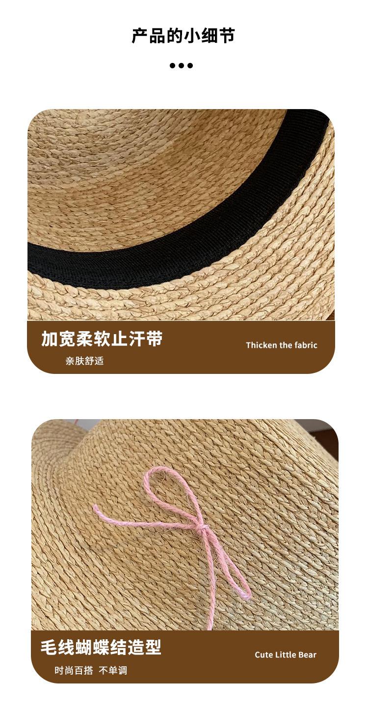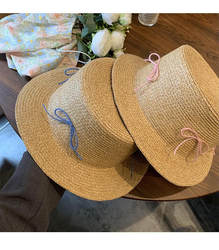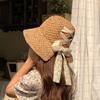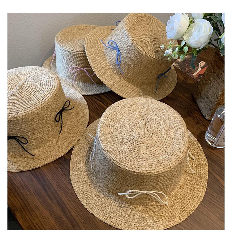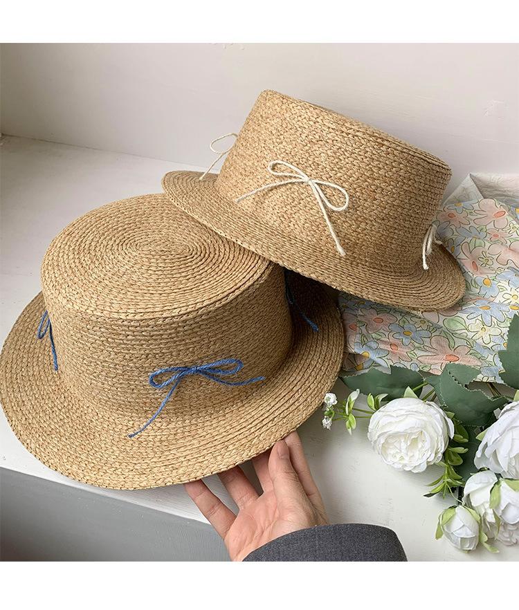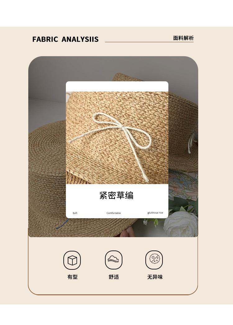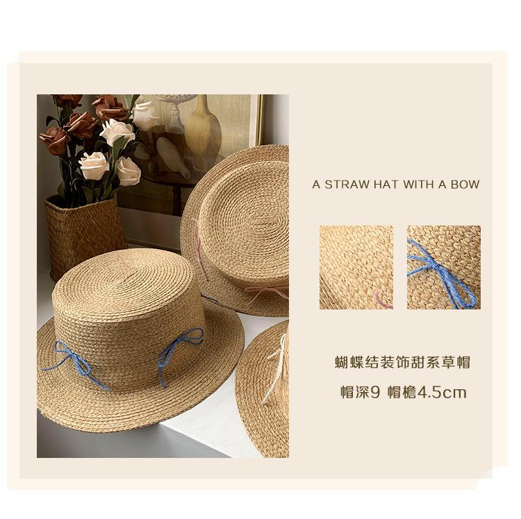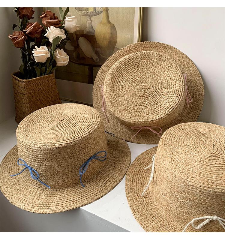 Sombrero de Paja con Lazo Francés Sombrero de Paja Rafi de Verano para Mujer Playa Marítima de Ala Plana Sombrero para Vacaciones Sombrero Parasol
