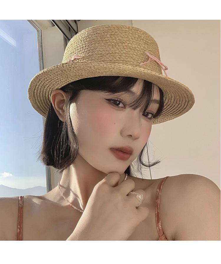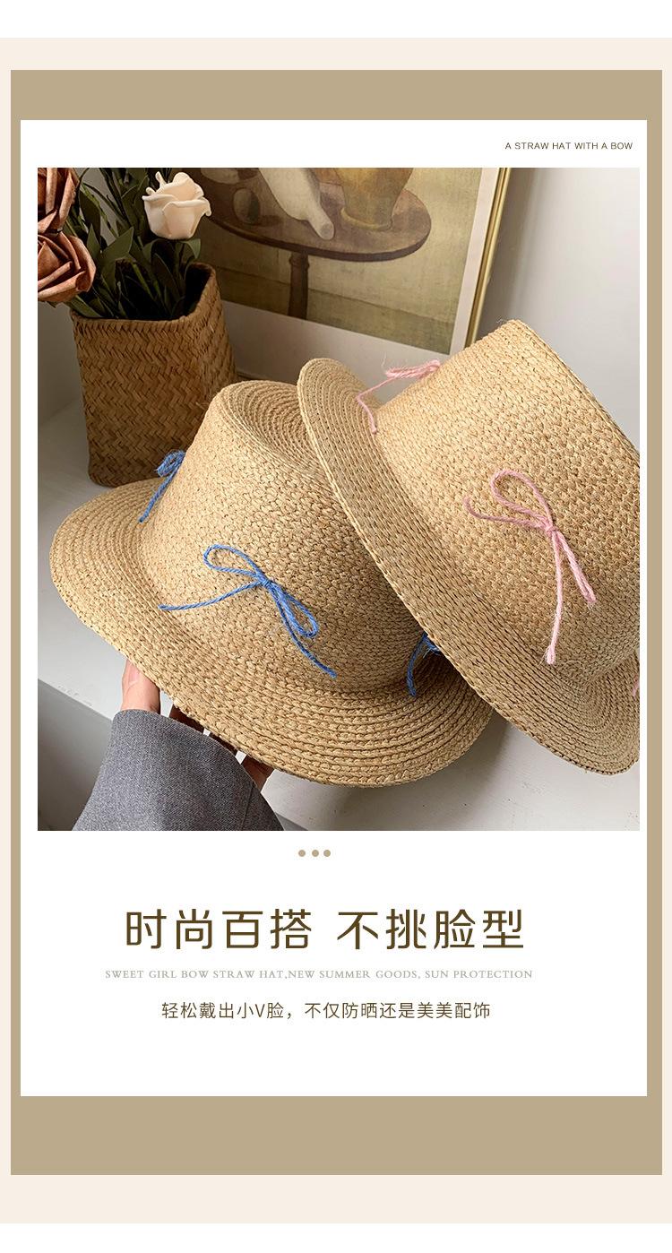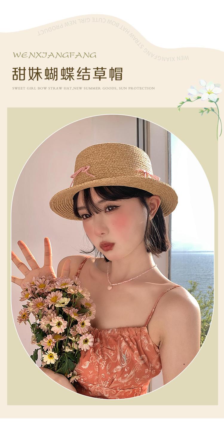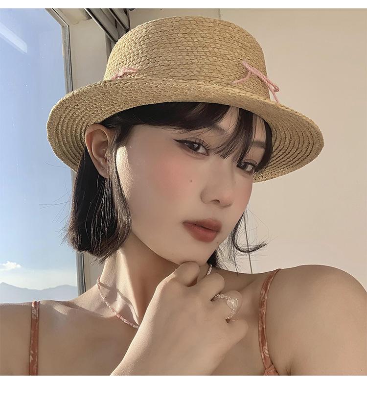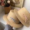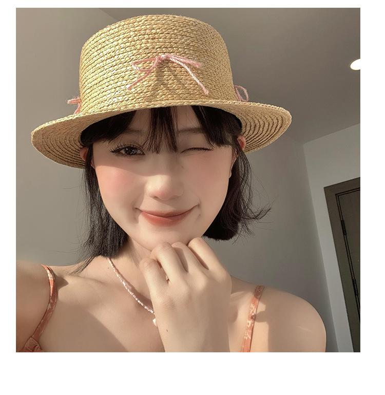 Sombrero de Paja con Lazo Francés Sombrero de Paja Rafi de Verano para Mujer Playa Marítima de Ala Plana Sombrero para Vacaciones Sombrero Parasol