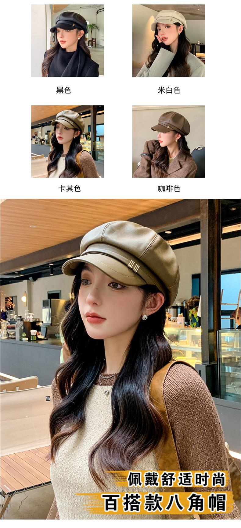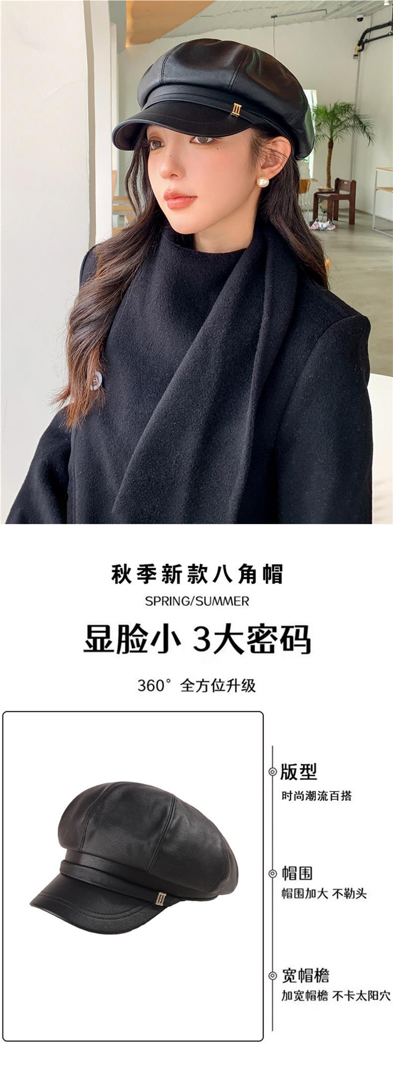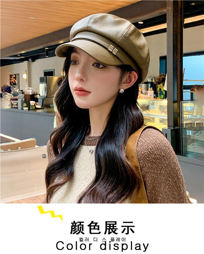Gorra Octagonal Nueva de Primavera y Otoño Boina de Puleather para Mujer Estilo Coreano Combinable Casual Rostro Mostrado Pequeño Sombrero de Pintor Newsboy para Mujer