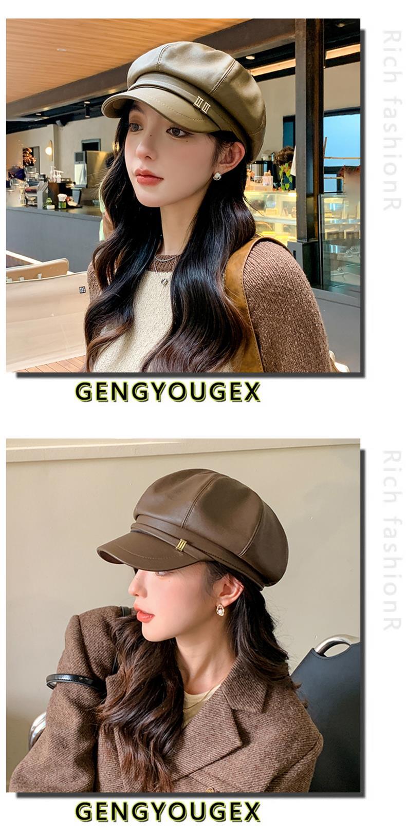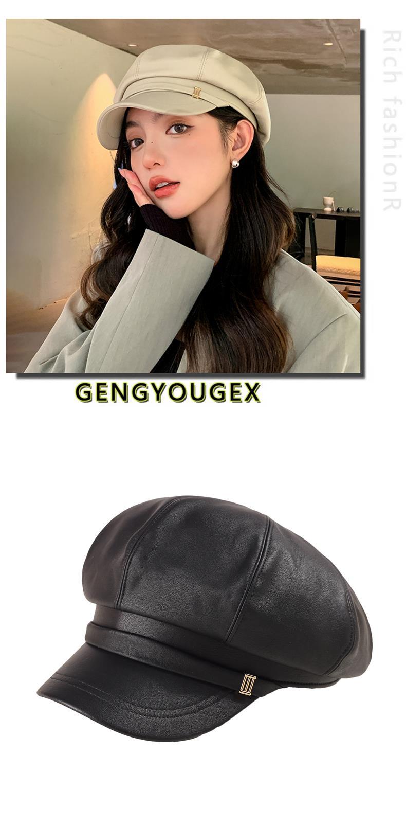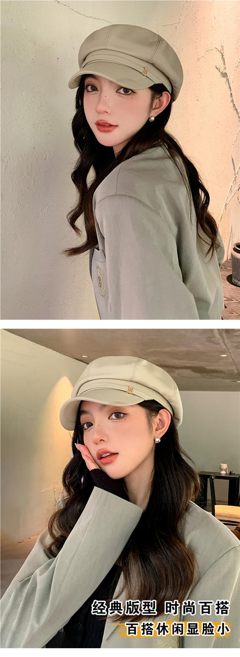 Gorra Octagonal Nueva de Primavera y Otoño Boina de Puleather para Mujer Estilo Coreano Combinable Casual Rostro Mostrado Pequeño Sombrero de Pintor Newsboy para Mujer