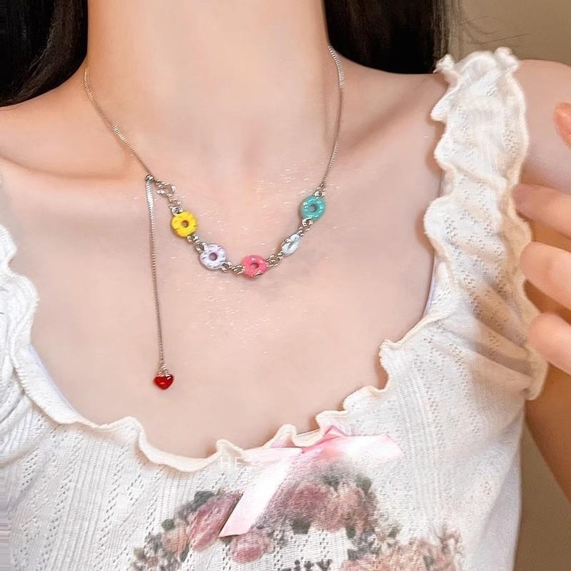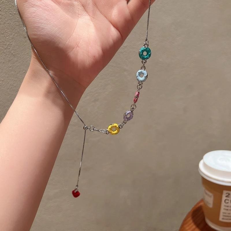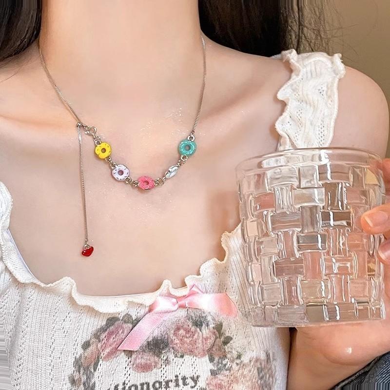 Collar circular colorido para mujer, cadena de clavícula con borlas rojas que combinan con todo, diseño de nicho de lujo y ligero de verano.