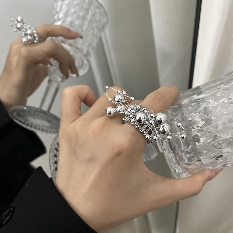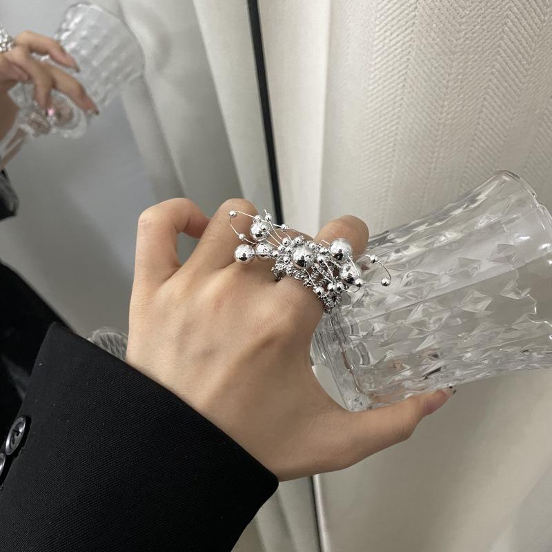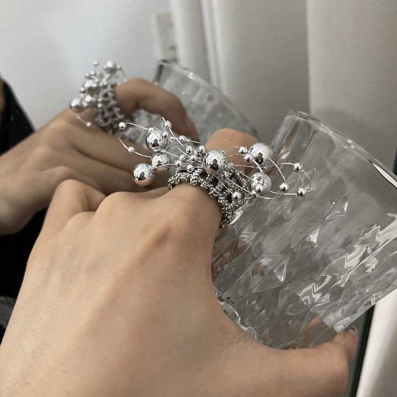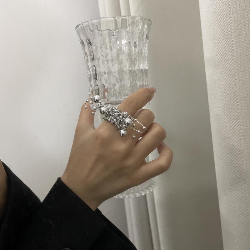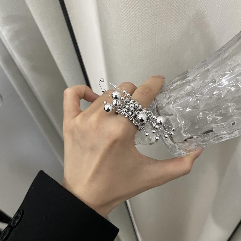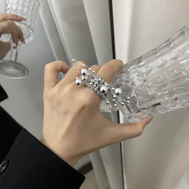 Anillo de Dedo Ajustable para Dieta con Abertura con Cuentas de Metal y Sentido del Diseño Exagerado de Temperamento de Lujo Ligero, Anillo de Dedo Nicho de Temperamento a la Moda